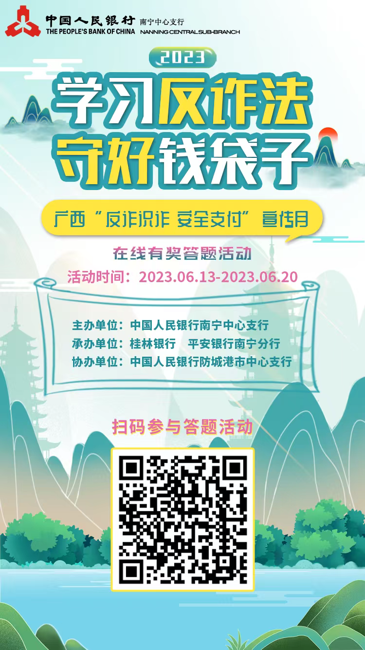 广西“反诈识诈 安全支付”宣传月在线有奖答题活动开始啦!