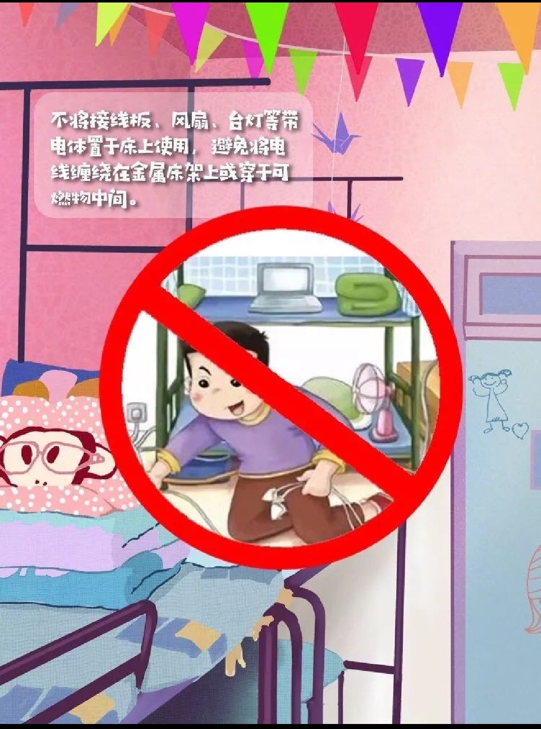 1.宿舍无人情况下必须切断所有电源,做到"人走断电",以免灯具和线路发热引起火灾。