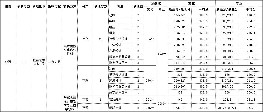 2018年 陕西艺术类录取情况