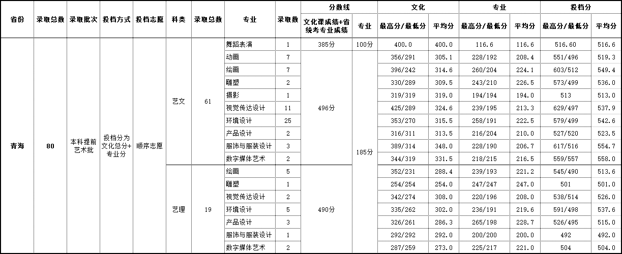 2018年 青海艺术类录取情况