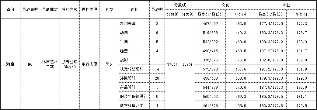 2018年 海南艺术类录取情况