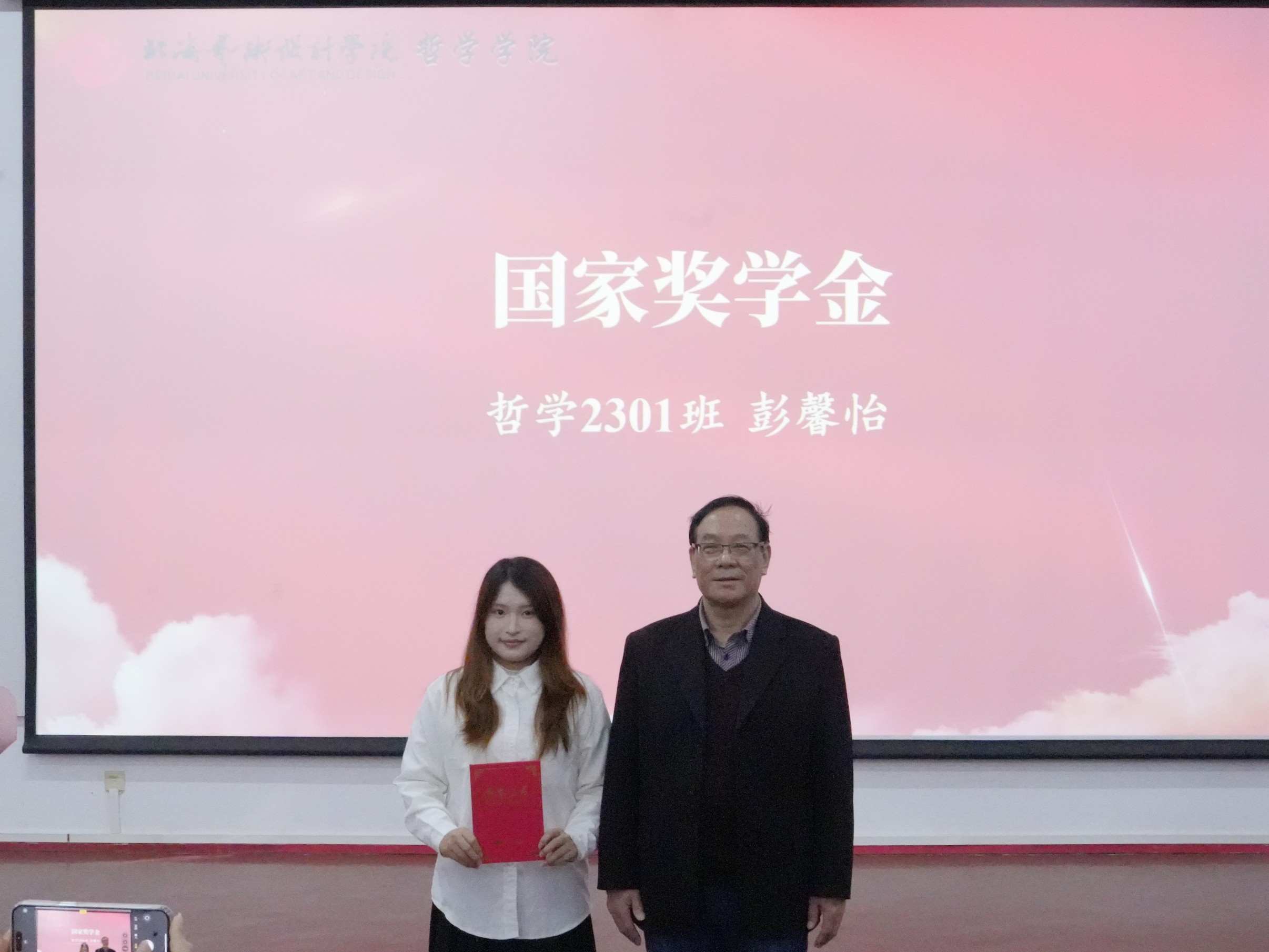 哲学学院蒙绍荣院长国家奖学金获得者彭馨怡同学颁奖