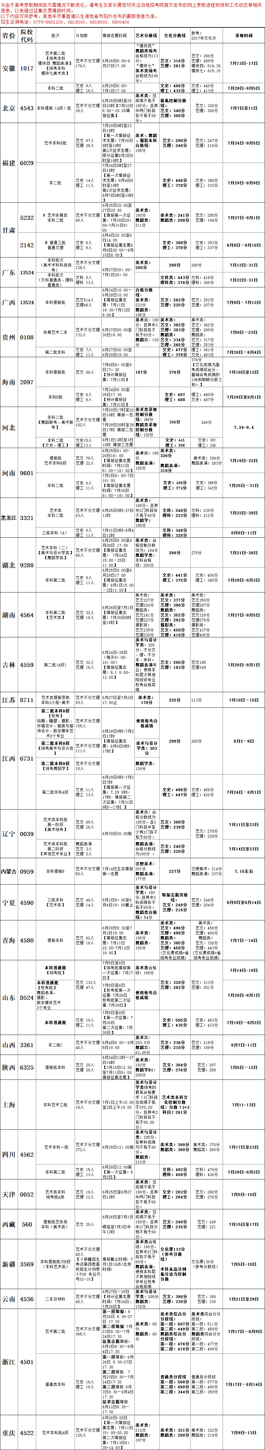 2018年 分省录取信息一览表(含批次、录取时间等)