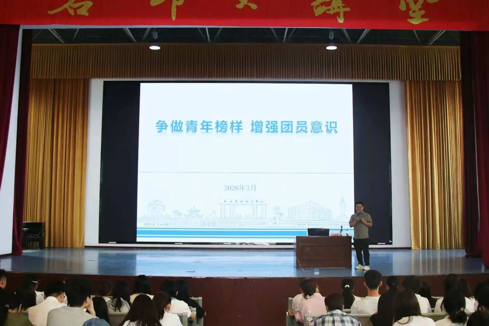 为加强青年思想政治引领,夯实共青团组织建设。我校于3月27日在西校区大礼堂开展2026年上半年入团积极分子培训班。出席本次开班仪式的有校党委副书记彭仁,党委委员、团委书记唐良春,以及校团委、分团委各位领导老师。