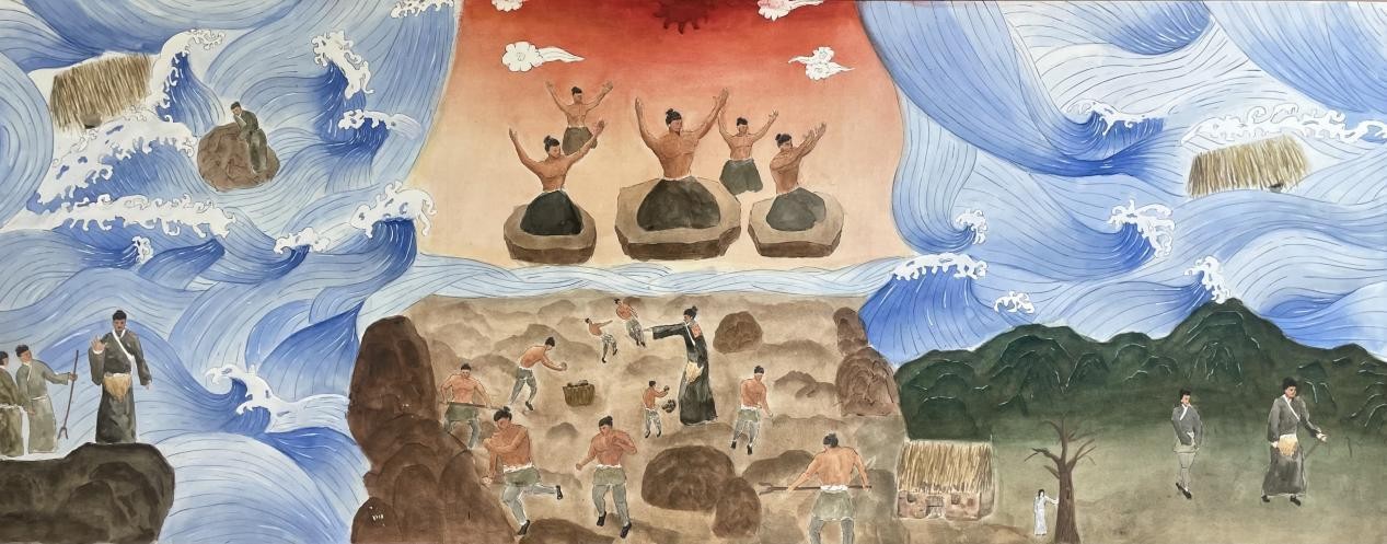 《布洛陀顶天》 黄丽金 板绘a42023年 《莫一大王飞天》 黄丽金 板绘a42023年