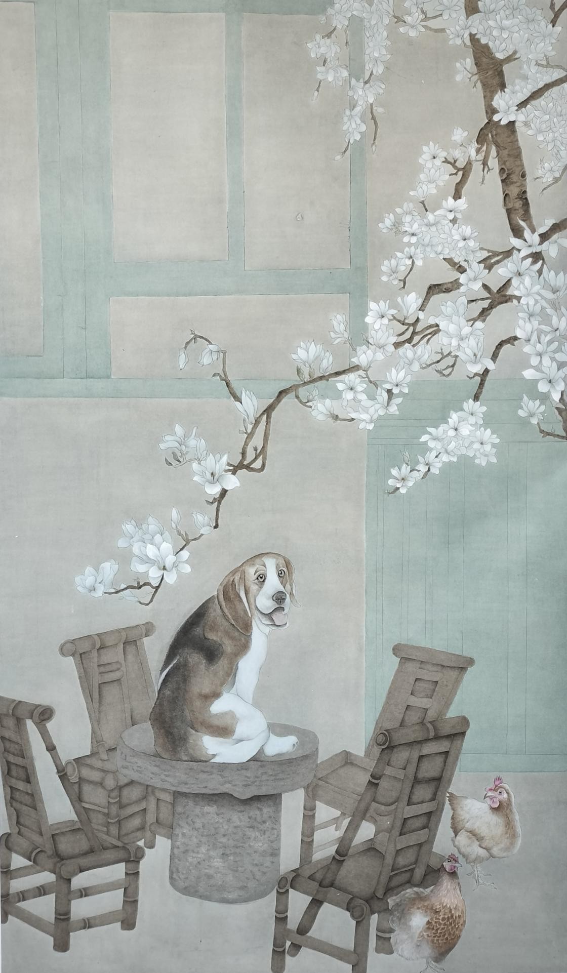 《毛羽霜雪妍》 潘春宇 工笔花鸟 180cm×97cm 2023年
