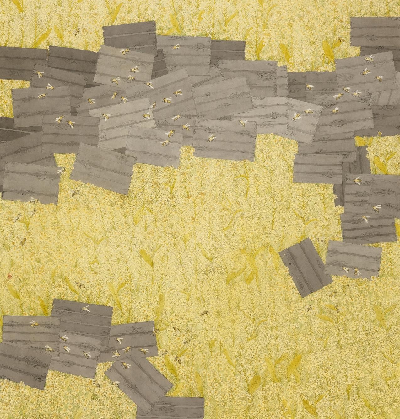 《蜂舞花田间》 胡佳然 纸本设色 178cmx165cm 2023年