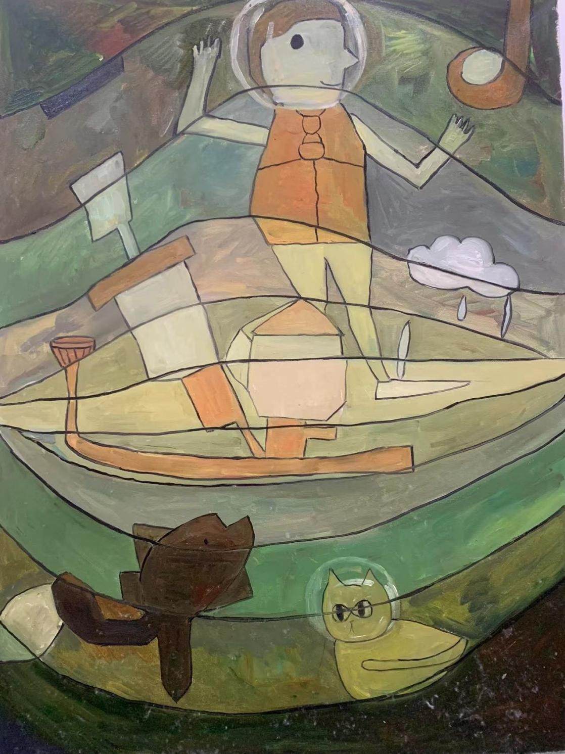 6.本色、自由、个性、充满想象。有不少同学在他们的作品中呈现出一种颇具个人风格特质的样貌,他们有的是把自己成长过程中最深切的体验幻化成某种画面,用以表达自己对于生活、对于生命的理解;有的则更为直觉、感性、更为本能,任由自己内心感应力的驱动,蔓延、生成一种难以归类的图景,然而你却不自觉地被这些图景所感染、所打动,因为在这些图景中我们感受到了一种鲜活的、情感的交响,鲜活的生命的律动,或许,这也正是这些年轻的艺术学子们最为宝贵的专业“素质”,最为动人、本真的虔敬。