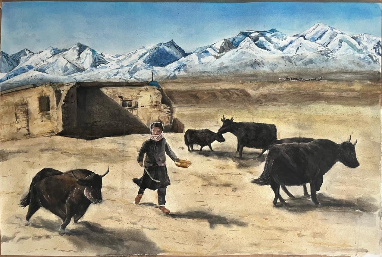 《家乡的牦牛》 张玉龙 水彩 2023年