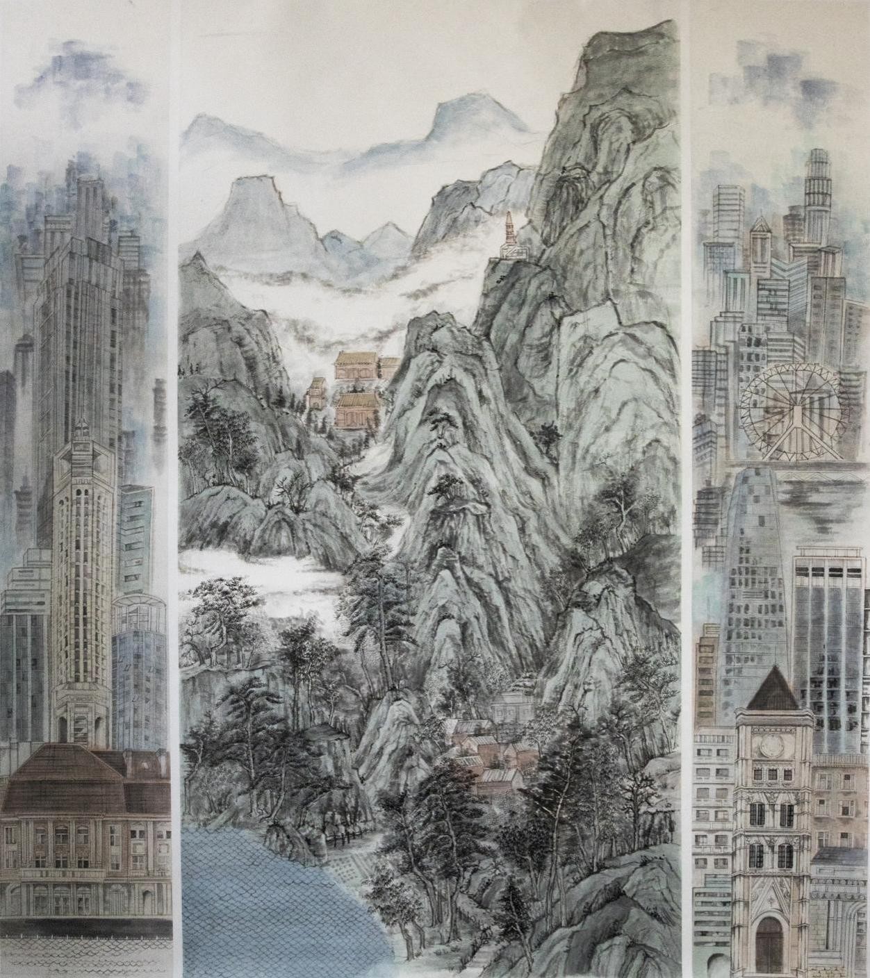 《津门·今昔》 于靖宜 山水画 170cm×195cm 2023年