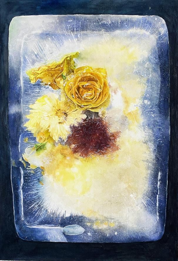 《禁锢绽放》 王文聪 水彩 76cm×53cm×22023年