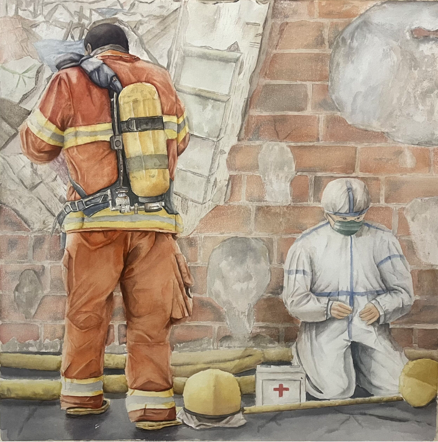 《人民守护者》 黎廷可 水彩 75cm×75cm 2023年
