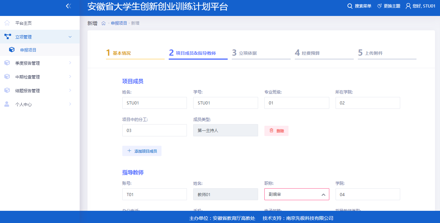 第二步完善项目成员&指导教师信息;