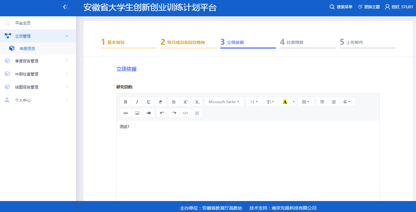 第三步填写立项依据;