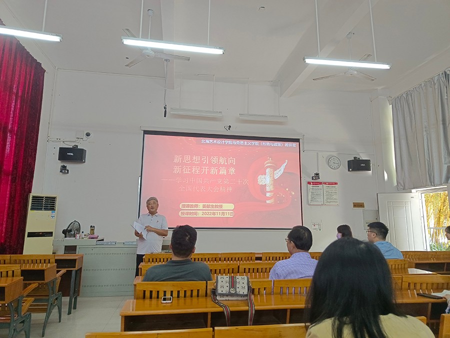 在专题学习活动上,马克思主义学院院长姜献生教授以新思想引领航向,新征程开辟新篇章为主题,从党的二十大的重要意义、重要内容等进行了专题学习。他指出,习近平总书记所作的二十大报告是马克思主义中国化时代化的最新成果,具有很强的思想性、理论性、战略性、指导性要求,大家要提高政治站位,深刻领会党的二十大精神的思想内涵和核心要义,要把学习贯彻党的二十大精神作为当前及今后一个时期的首要工作任务,做到学深学透、学思践悟,推动党的二十大精神融入课堂教学中,以教学促科研,以科研促教学,从而推动教育教学工作和科研水平不断提升。