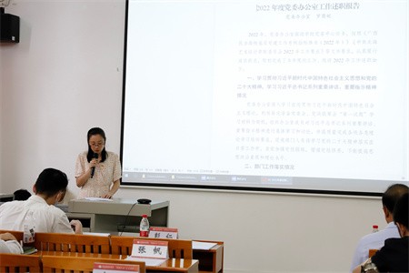 学校党委高度重视、认真部署此次述职评议考核工作。述职评议会上采取“一述一评”的方式进行汇报,各党总支(直属党支部)书记和党委部门负责人就落实各项基层党建工作开展情况,紧扣述职评议考核内容,讲清工作实招、突出亮点成绩,自检问题不足并分析主要原因,进行下一步工作思路和改进措施汇报。会前,各党总支书记和党委部门负责人按照要求认真撰写了述职报告。
