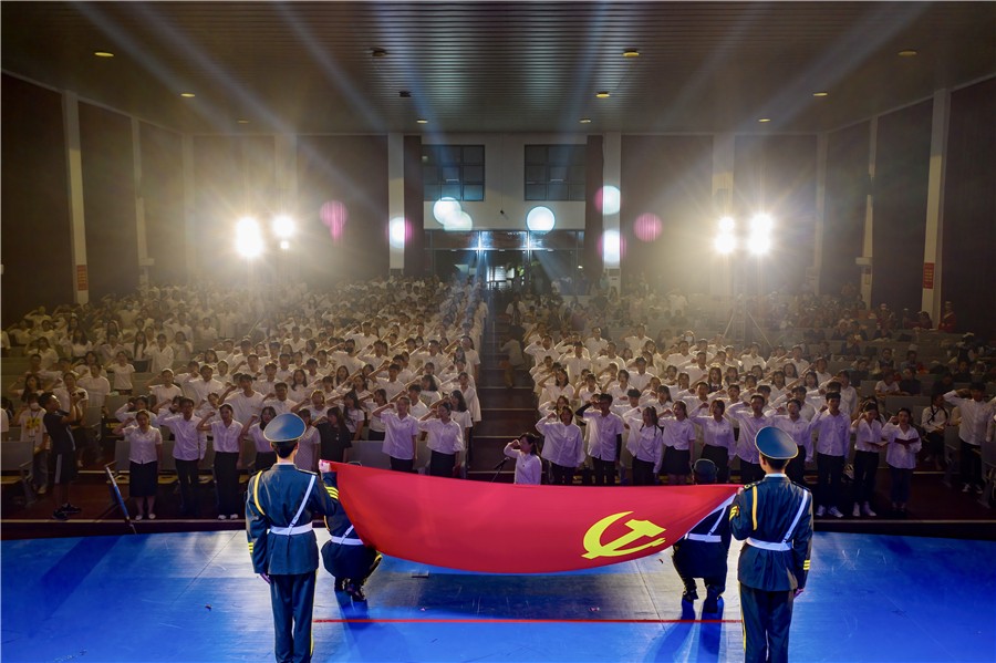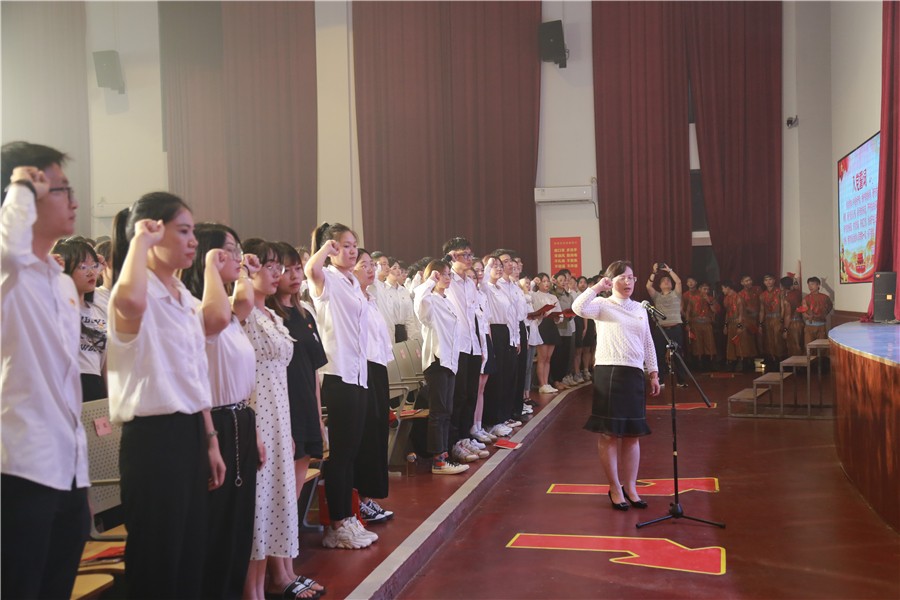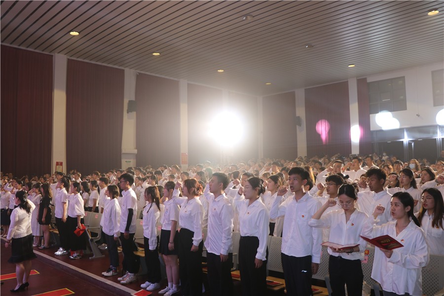 我校有一批先进的老师、学生积极向党组织靠拢,在建党100周年来临之际,他们光荣地加入了中国共产党。新党员宣誓老党员重温入党誓词仪式将本次晚会推向高潮,学校党委书记张阳带领全体党员宣誓,铿锵有力的誓言,表达了党员们不忘初心,牢记使命,对党的无限忠诚,对人民无比热爱。全体党员将积极投身中华民族伟大复兴的壮美事业中去,为党的教育事业奋斗终身。