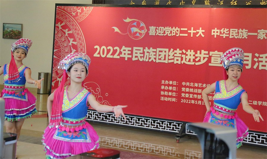 据悉,北海艺术设计学院开展以“喜迎党的二十大 中华民族一家亲”为主题的民族团结进步宣传教育活动,将通过“办游园、做展演、重体验、广宣讲、强主题、建基地、抓阵地、树典范”等10个主题22个活动,促进学校师生切实铸牢中华民族共同体意识,不断提升学校民族团结进步创建成果,推进民族团结进步工作不断开拓新局面。学校于2021年荣获了“北海市民族团结进步教育基地”“北海市民族团结进步示范学校”荣誉称号。