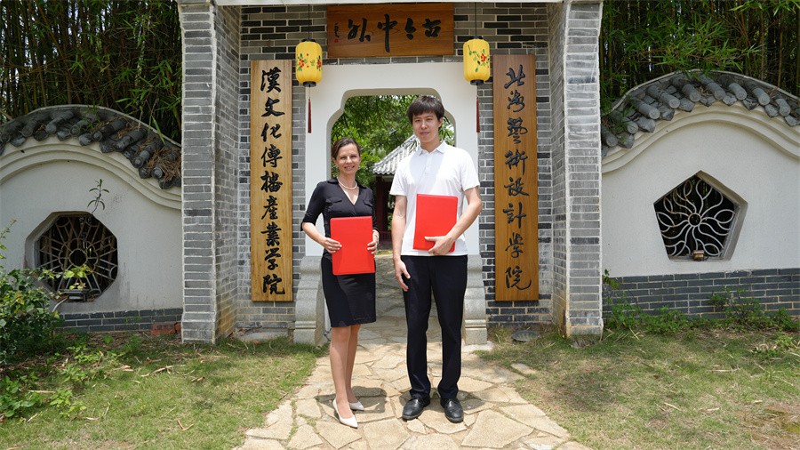 签约活动中,汉文化传播产业学院院长陈婷婷与身着经典汉服的外宾,游览中式园林,观赏古典舞蹈,品尝千年茶艺,源远流长、博大精深的汉文化令国际友人连连赞叹、喜爱不已。传播汉文化,始于点滴,北海是古代海上丝绸之路的重要始发点之一,北海艺术设计学院将以此为基,将优秀的中国传统文化向一带一路国家广泛传播,让世界各国共赏中华文化之美。
