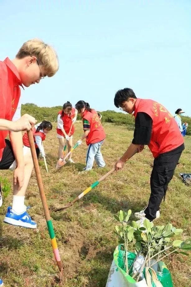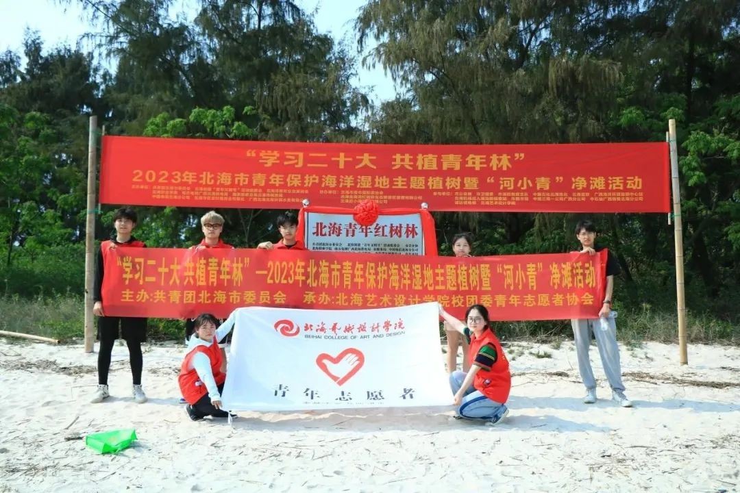 在第45个植树节到来之际,我校青年志愿者协会来到红树林参加了由共青团北海市委员会主办的“学习二十大,共植青年林”2023年北海市青年保护海洋湿地主题植树暨“河小青”净滩活动。