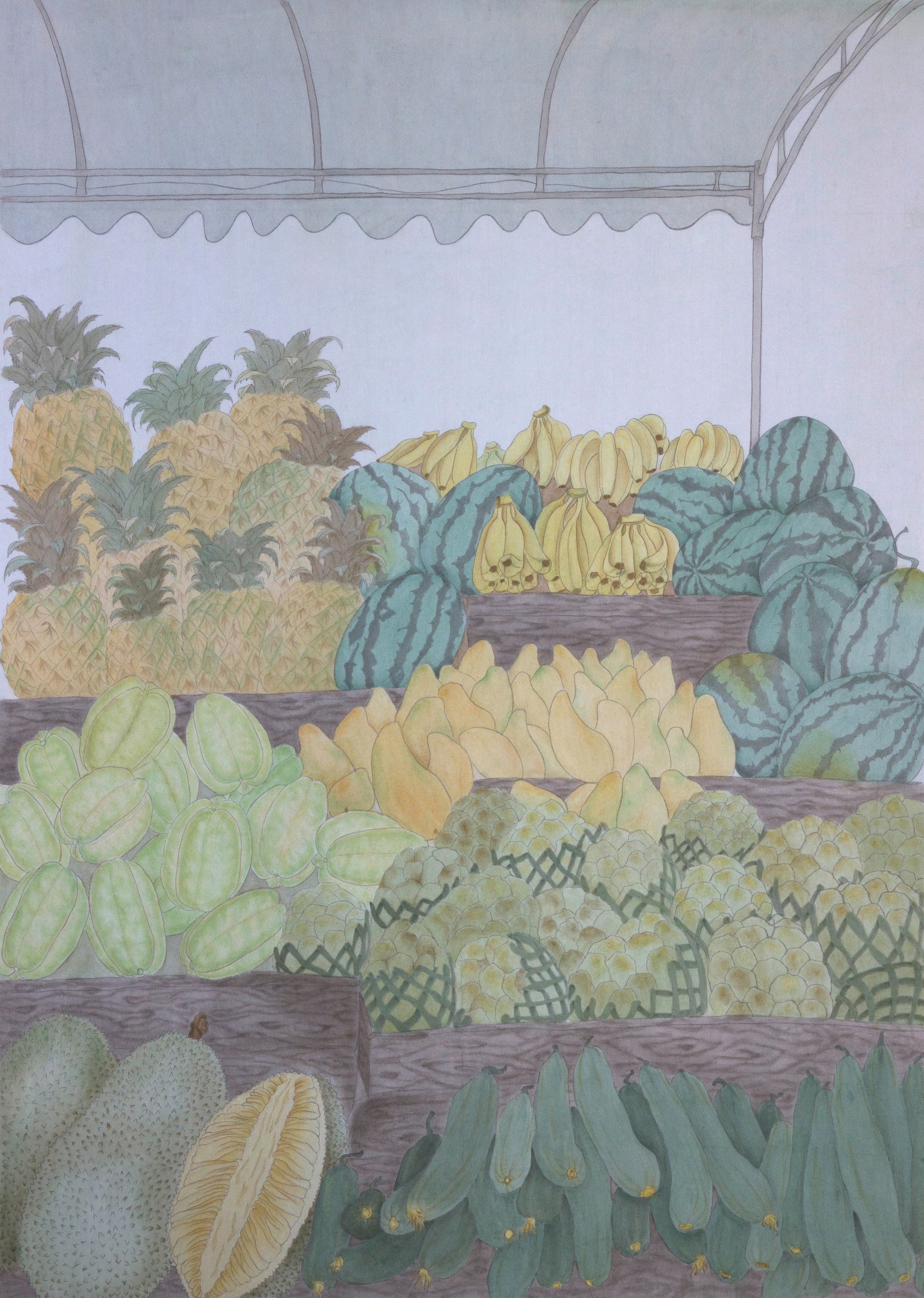 张馨萍《青果市集》115×160cm 2023年 纸本