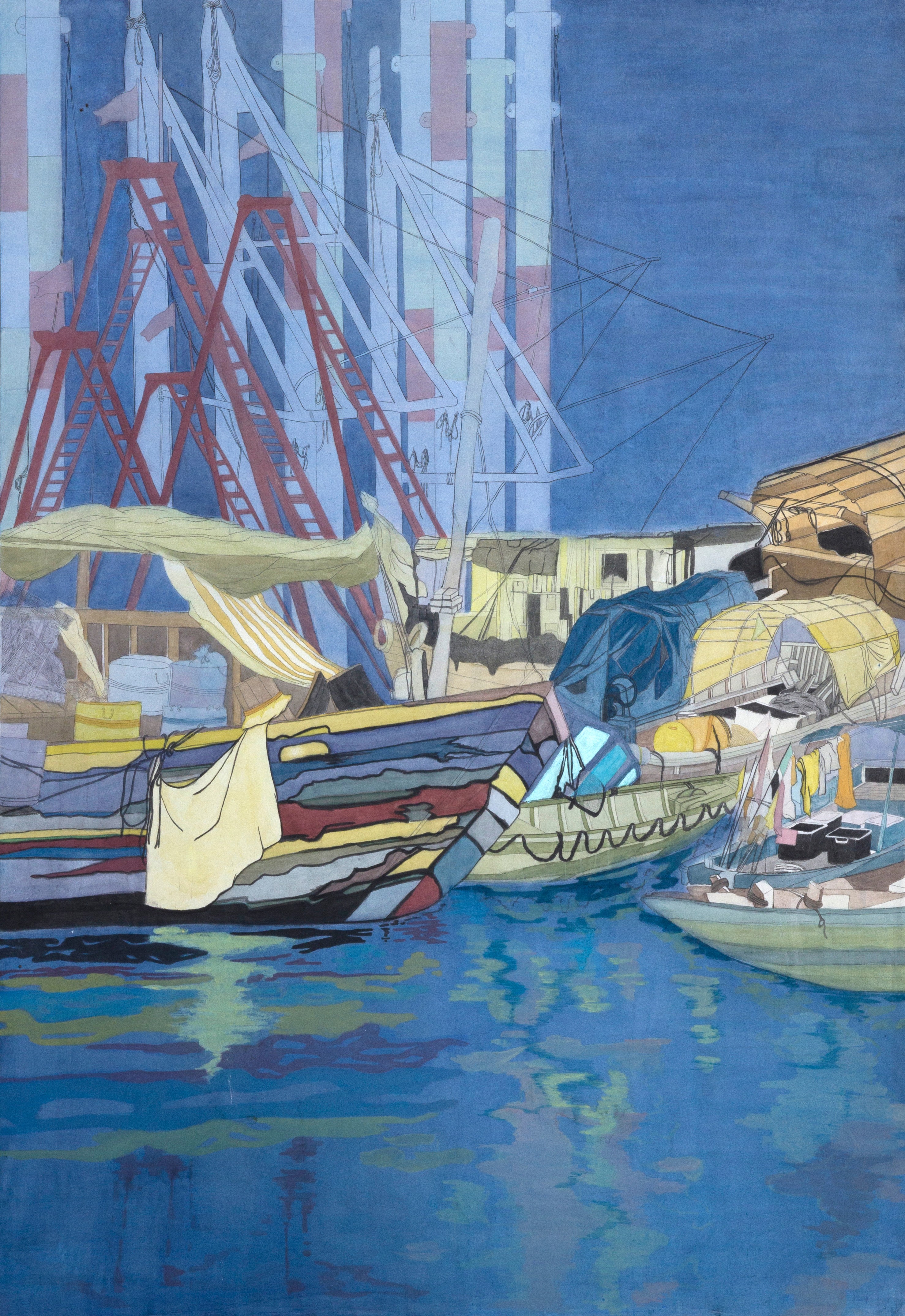 梁晓明《休渔时节》 50cm×55 cm 2023年 纸本水彩