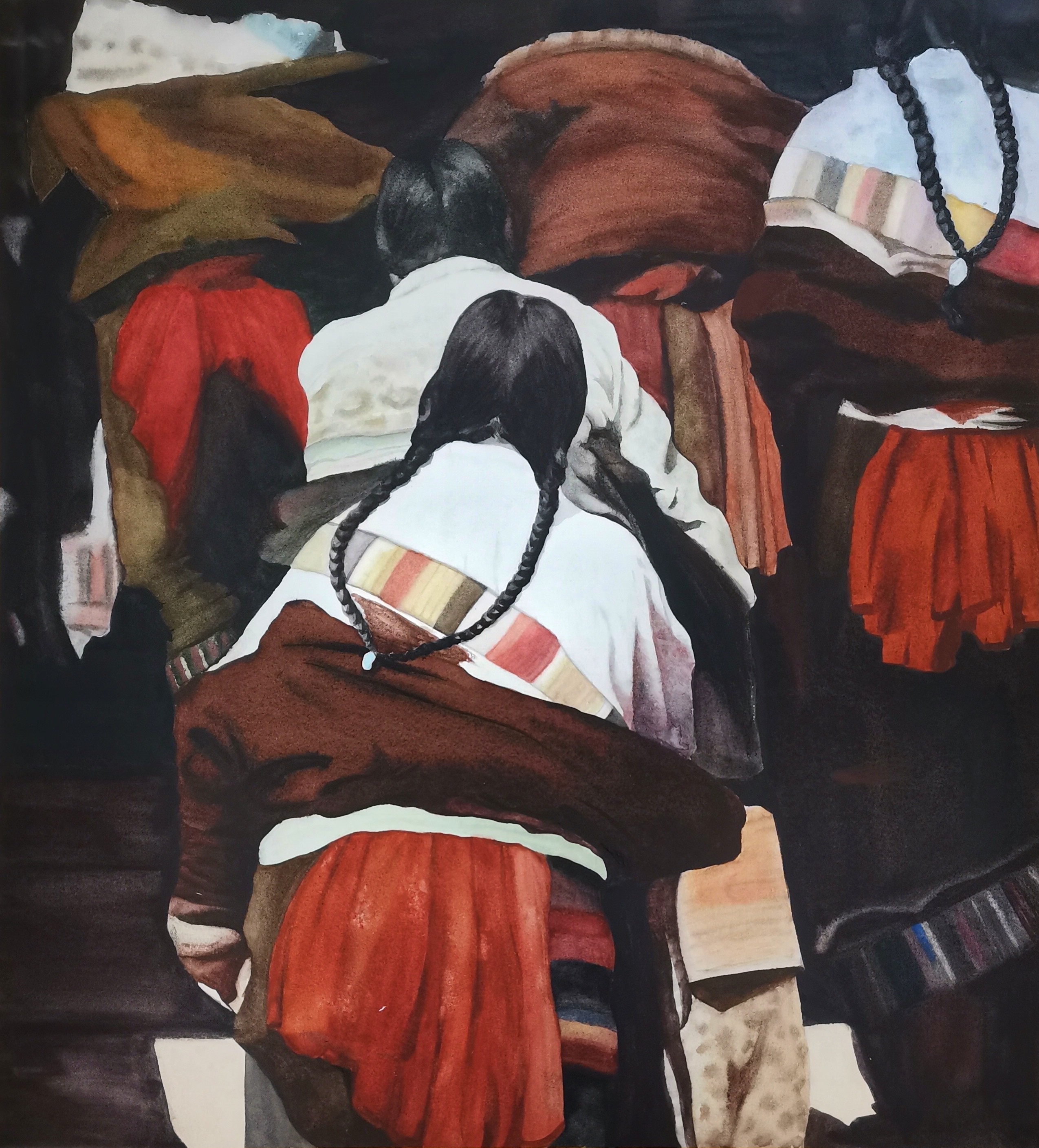 郭梦园 《朝圣的人群》 50cmx50cm 2023年 纸本水彩
