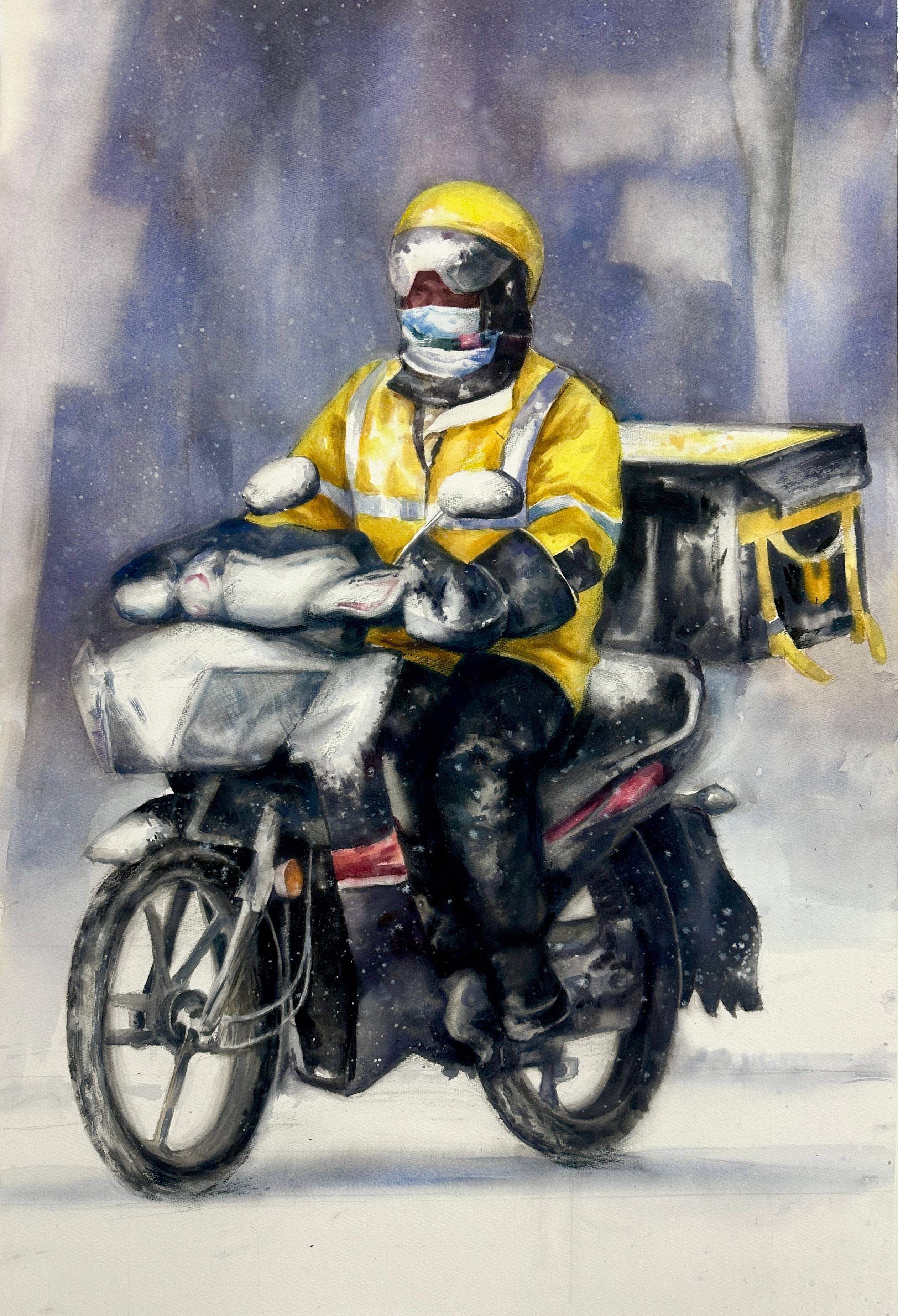 陈贾菲 《外卖小哥》 78×78cm 指导教师:刘广滨、陈亚宗