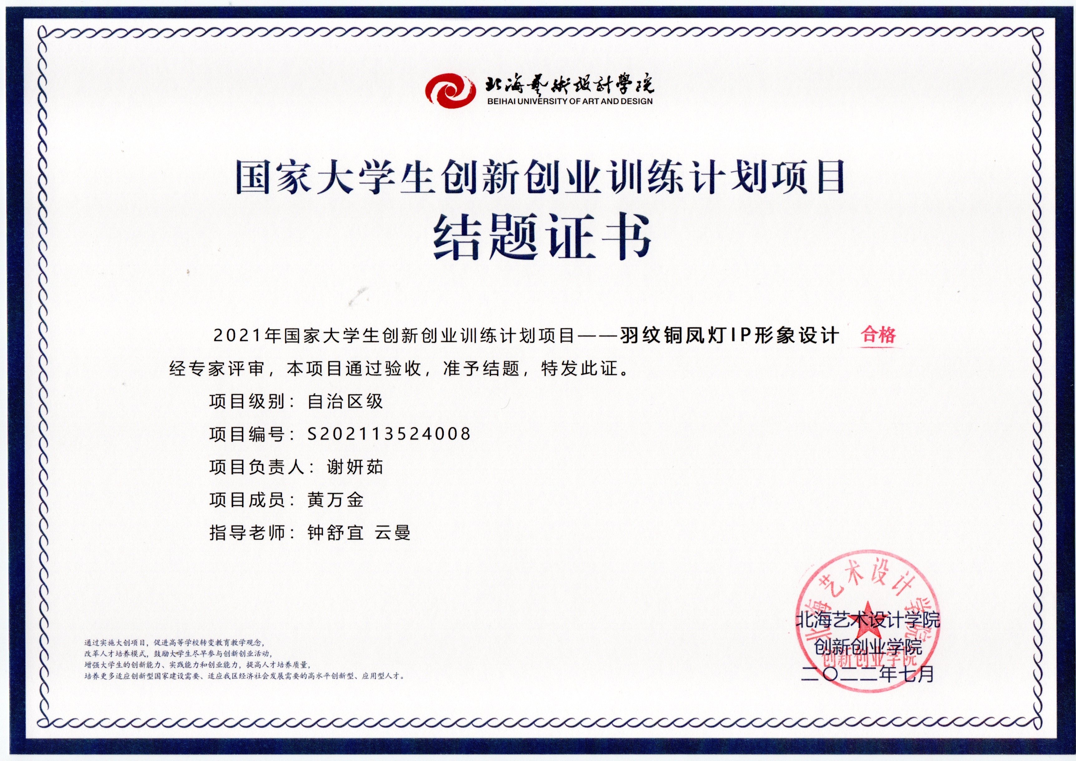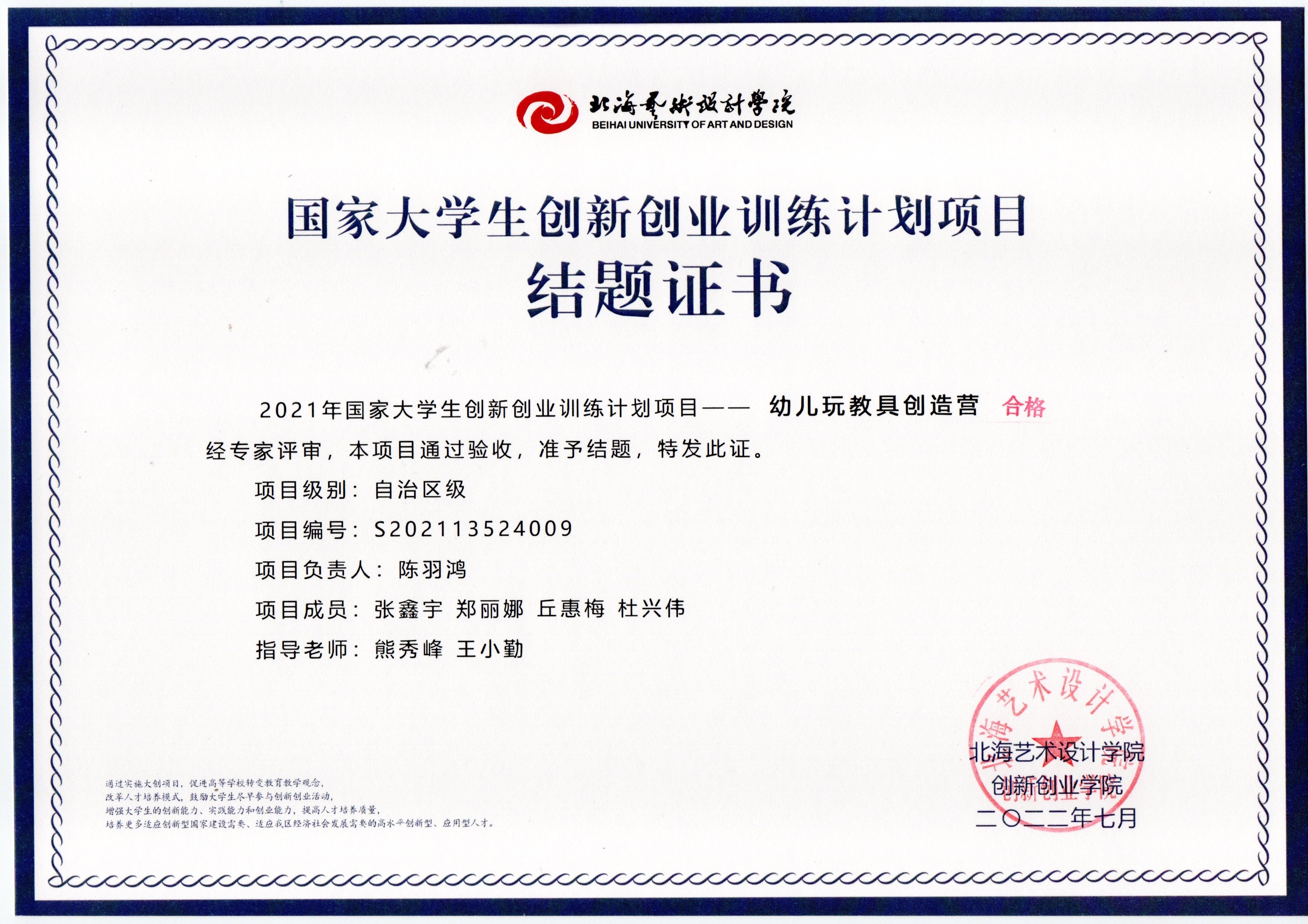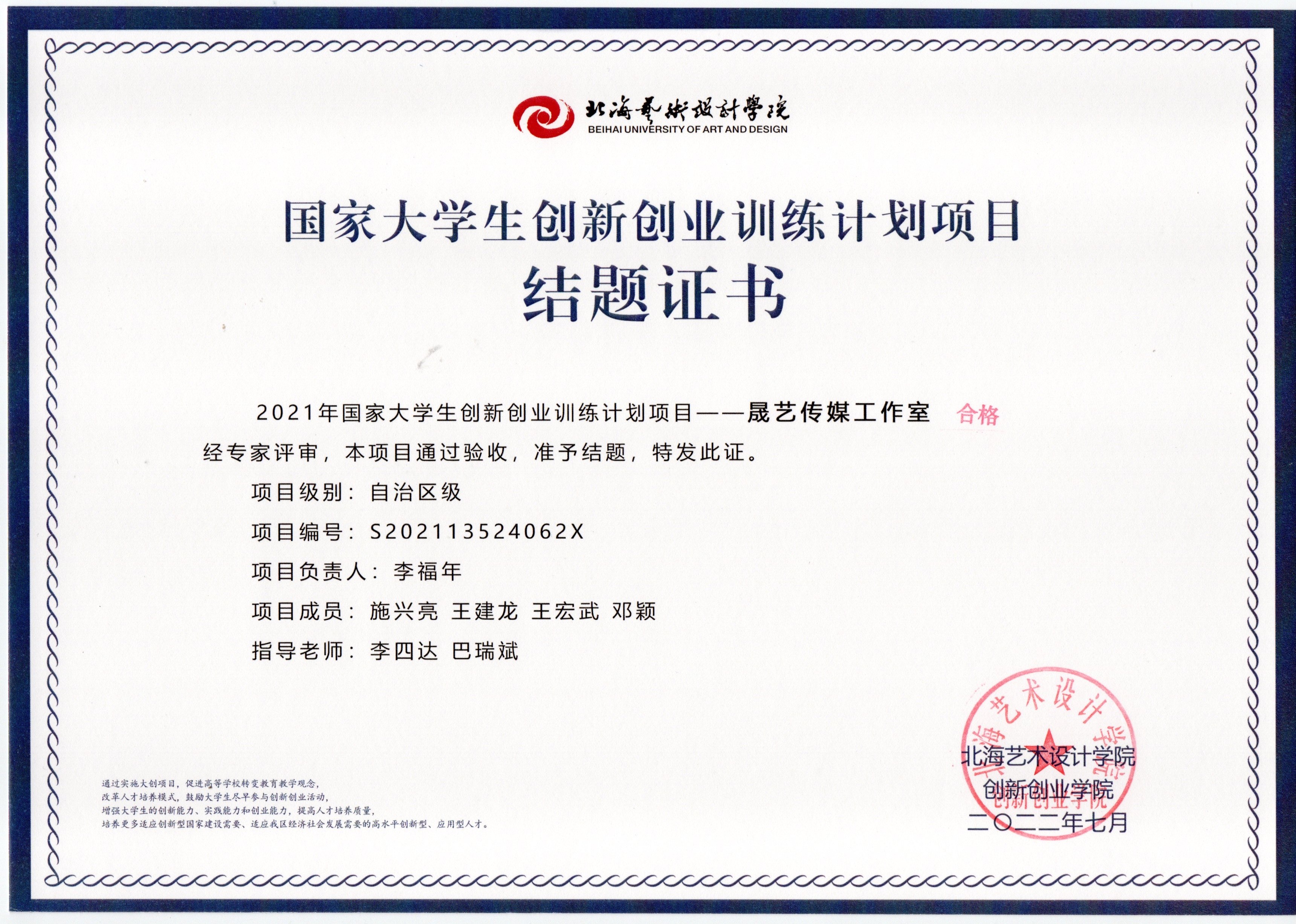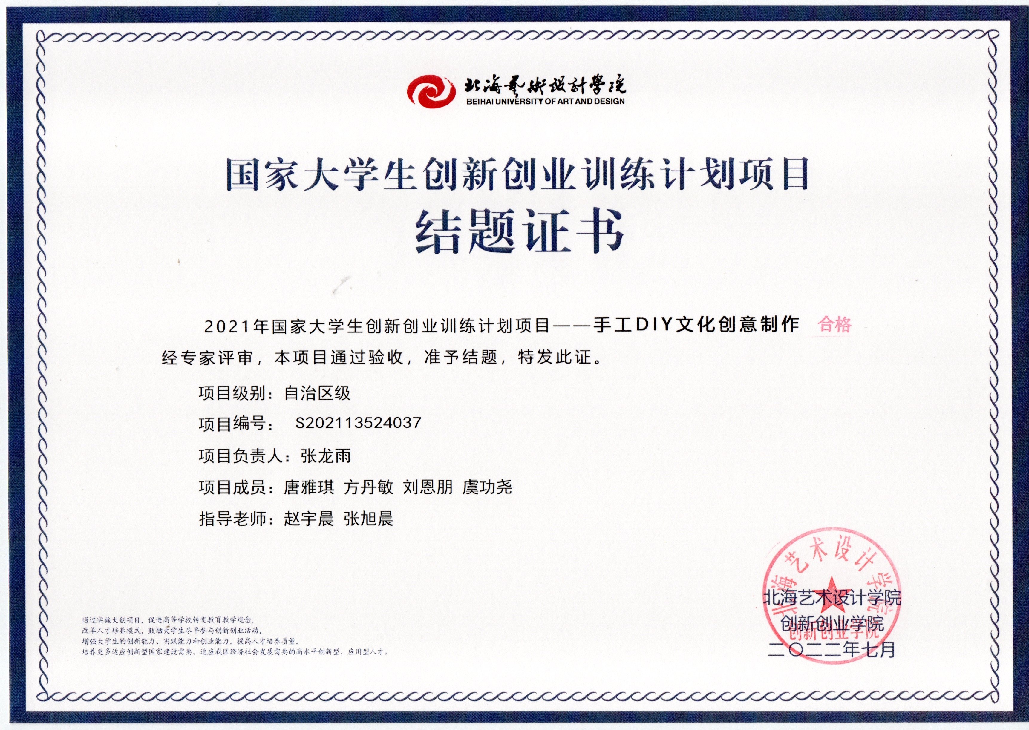 2021立项(结题证书)
