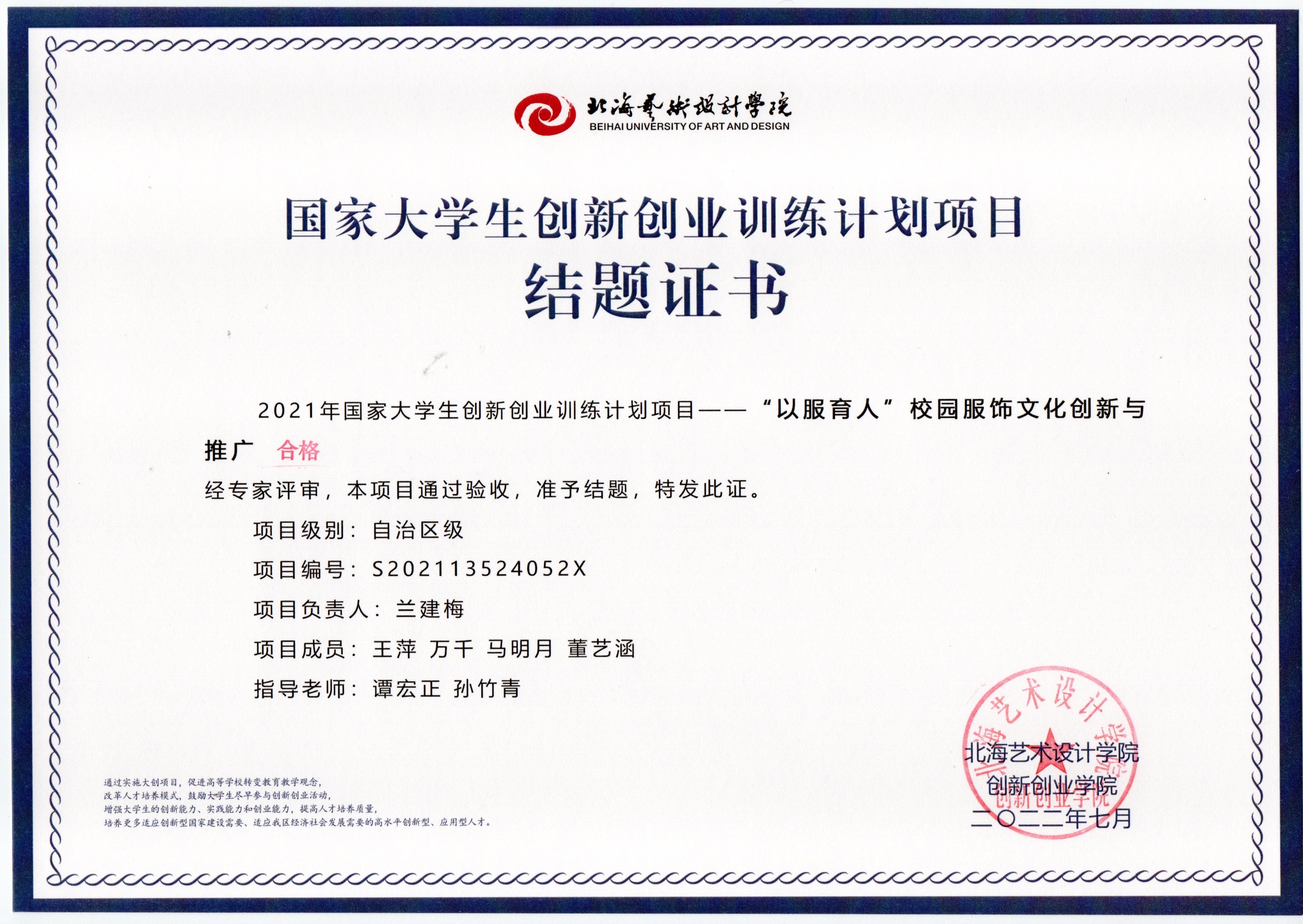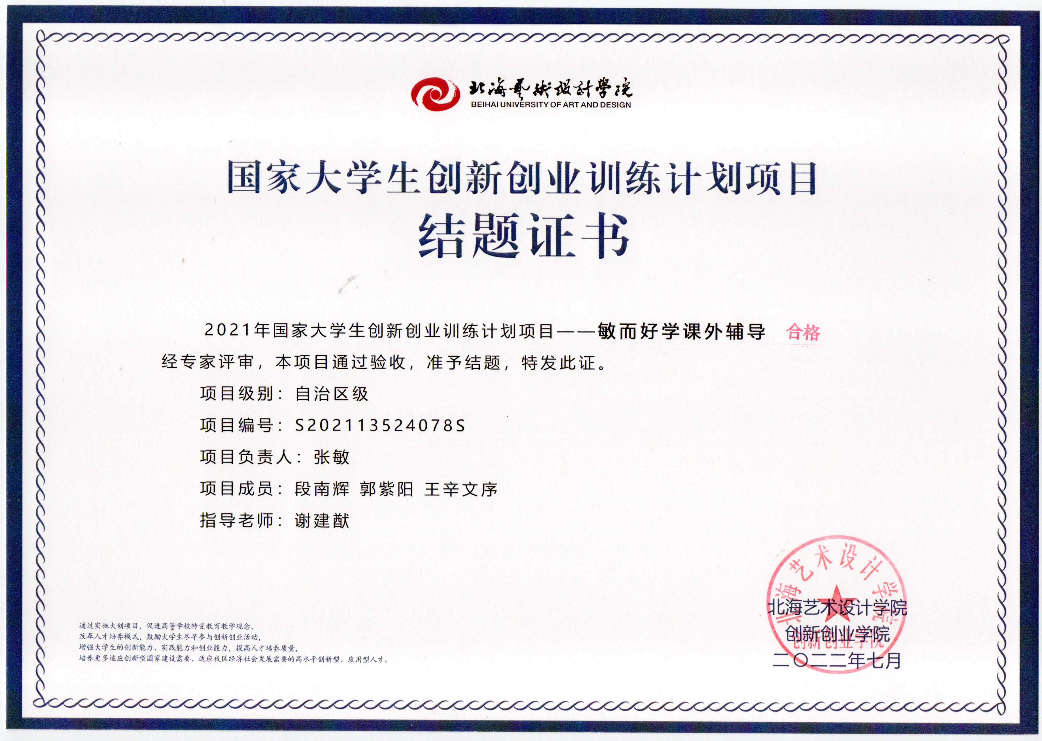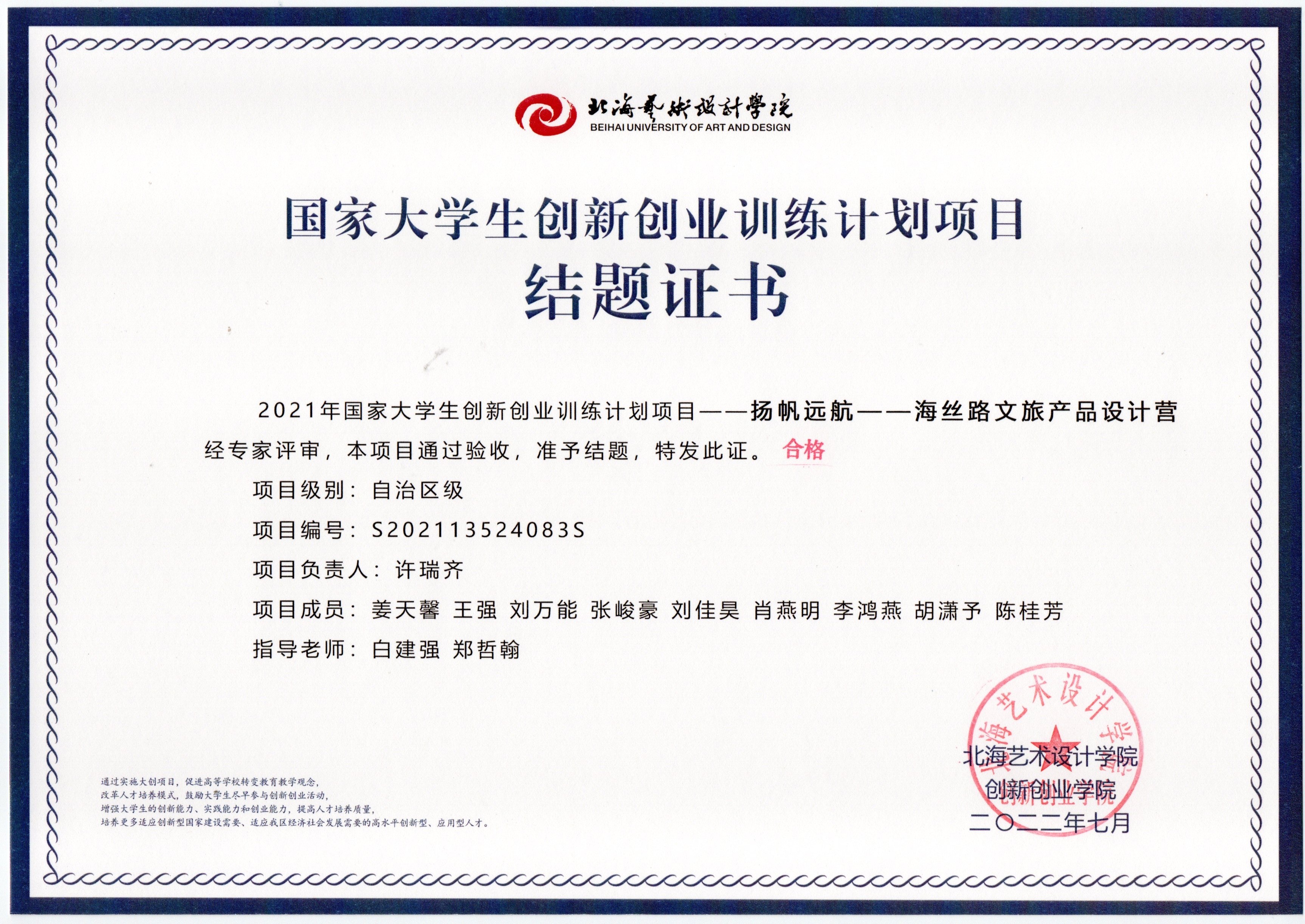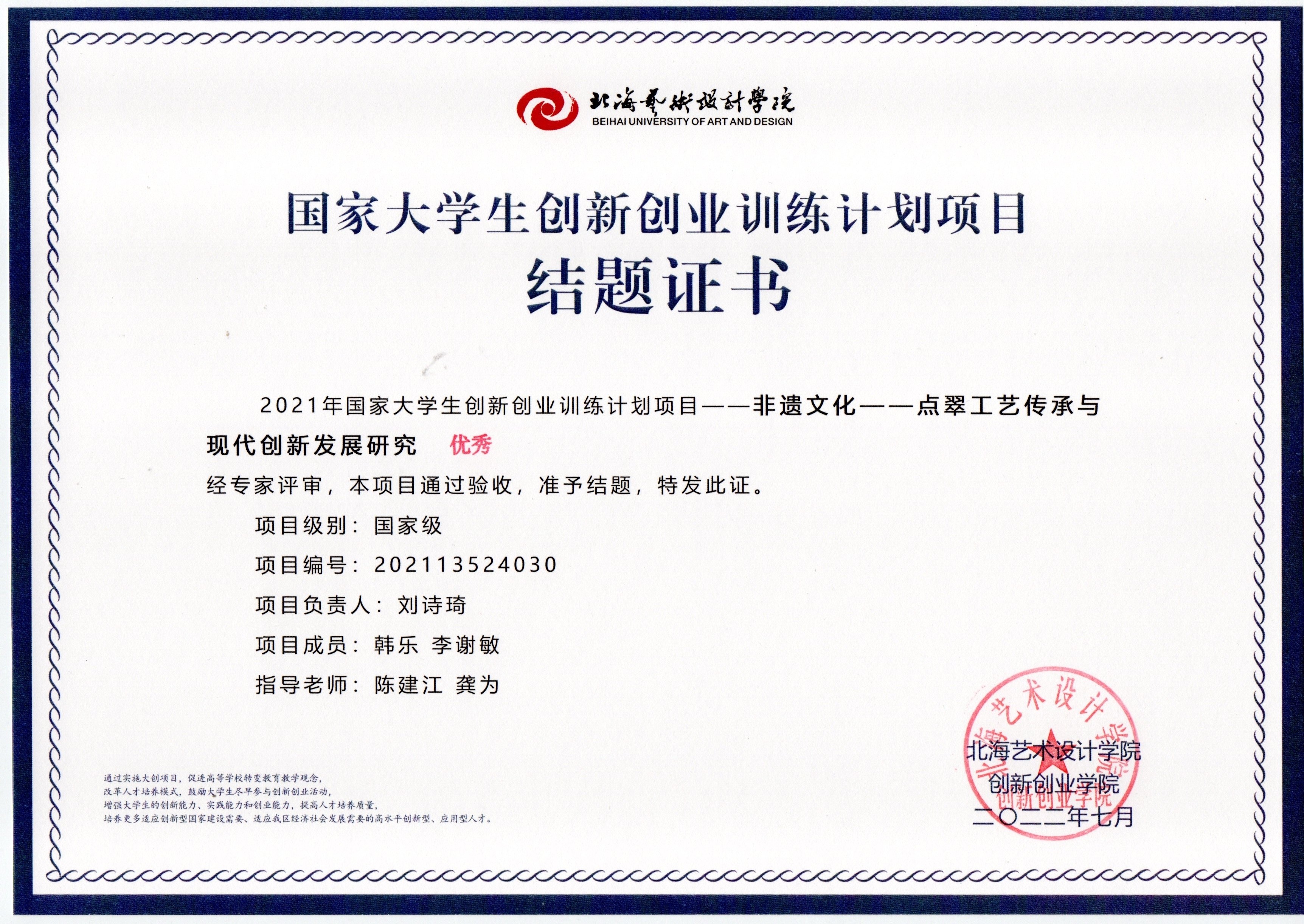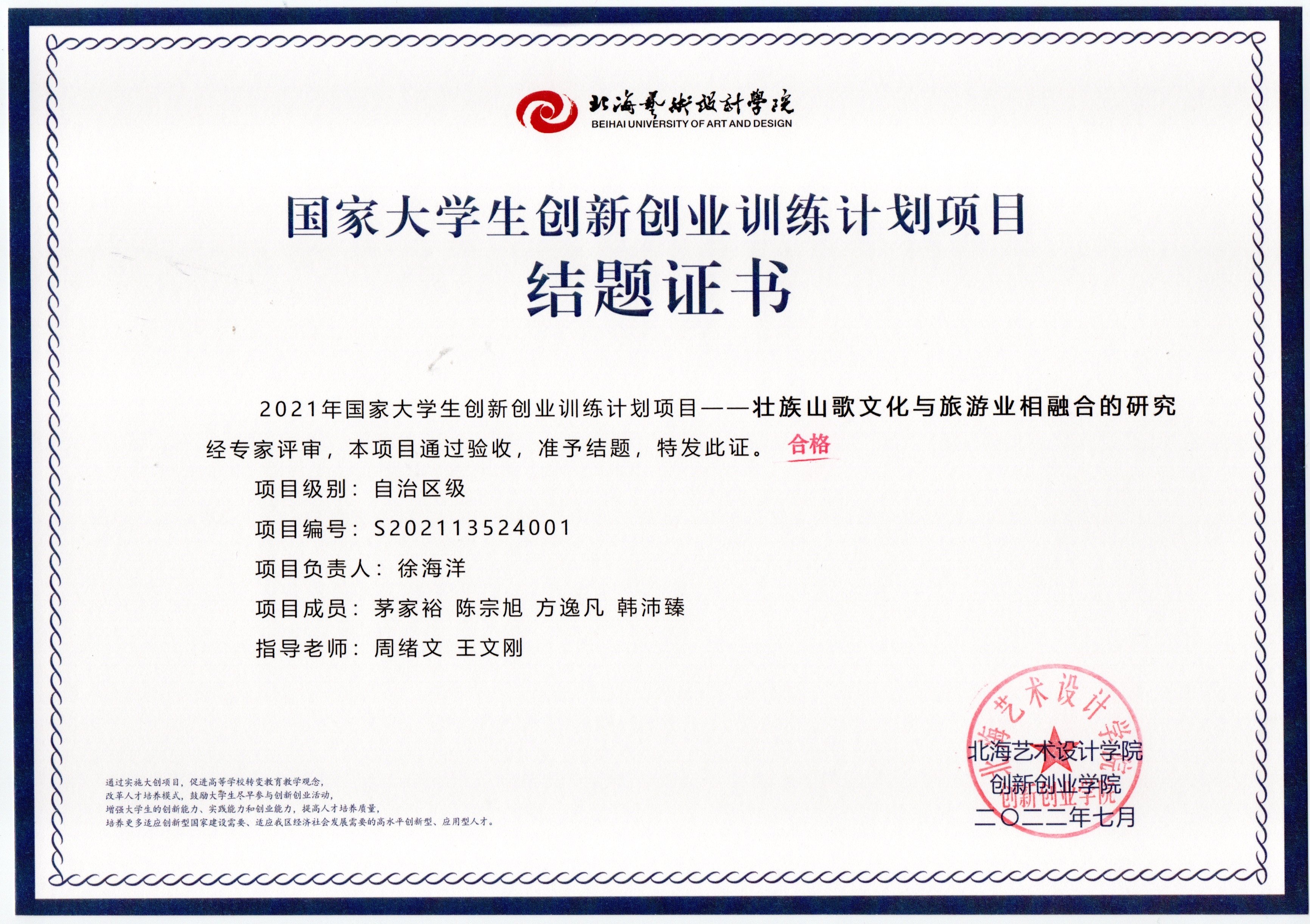2021立项(结题证书)