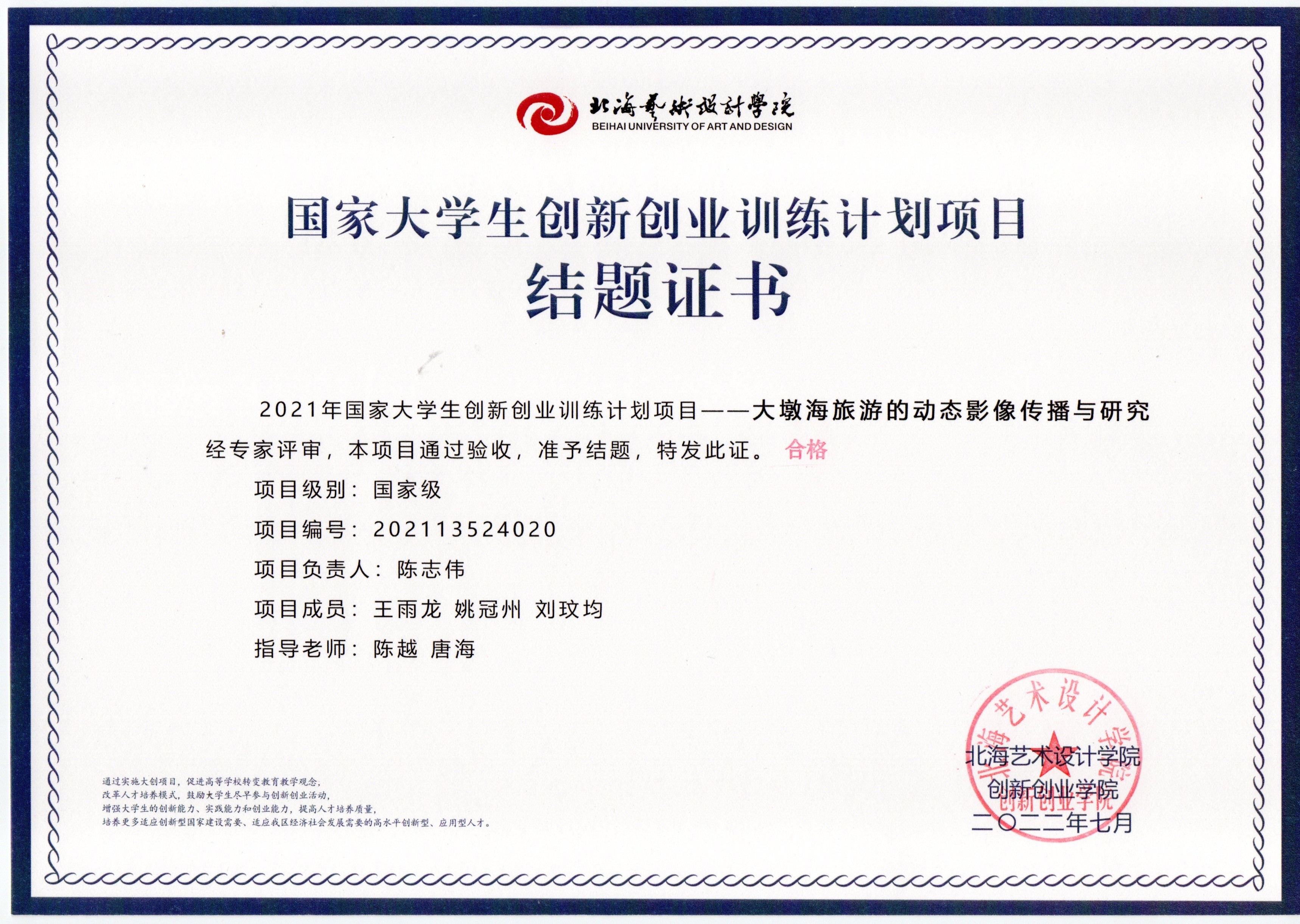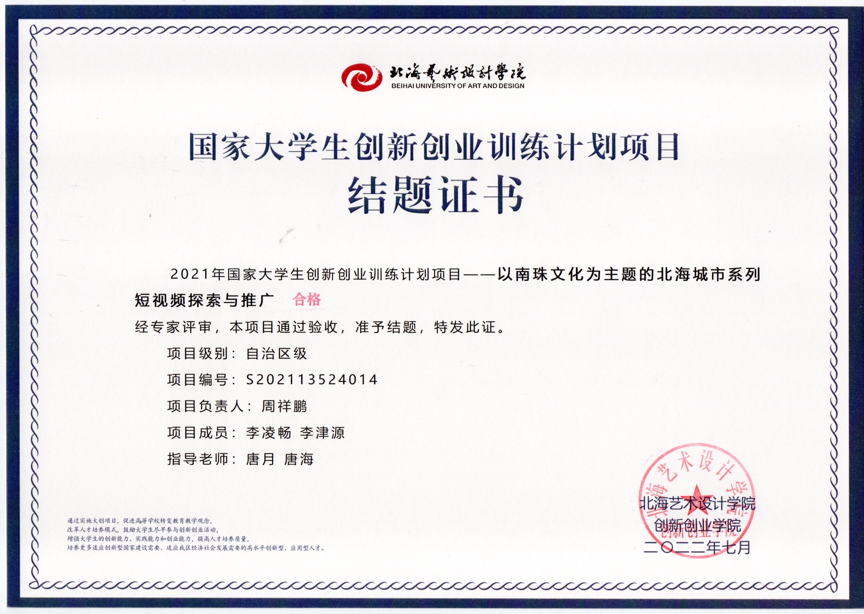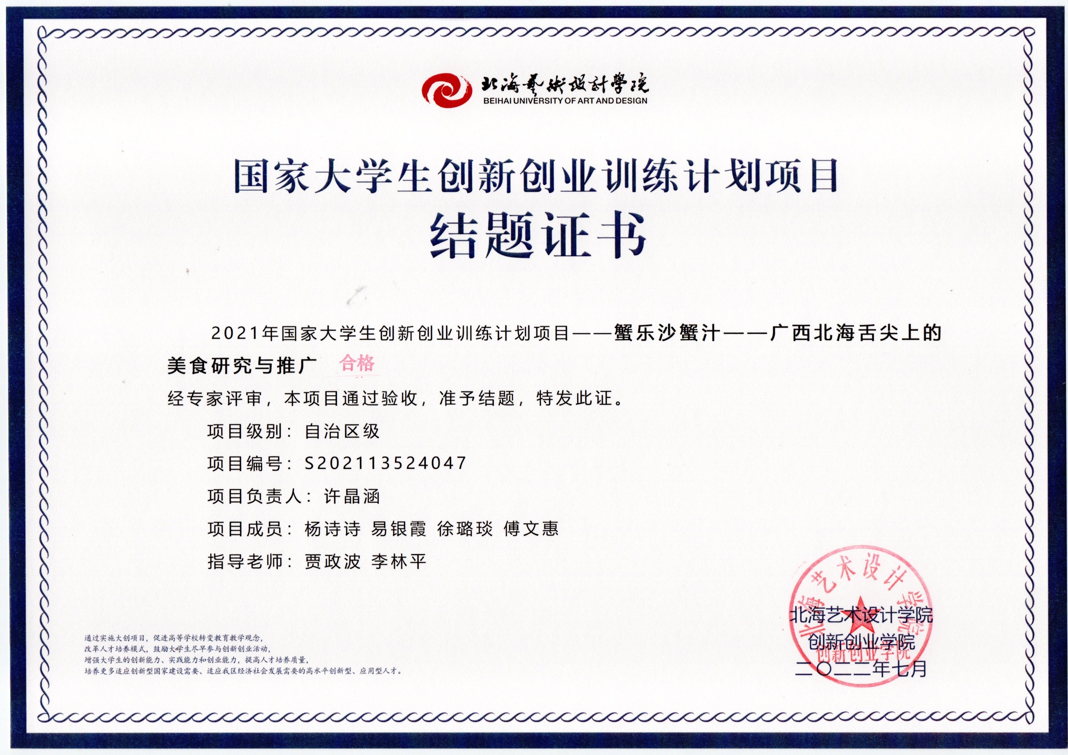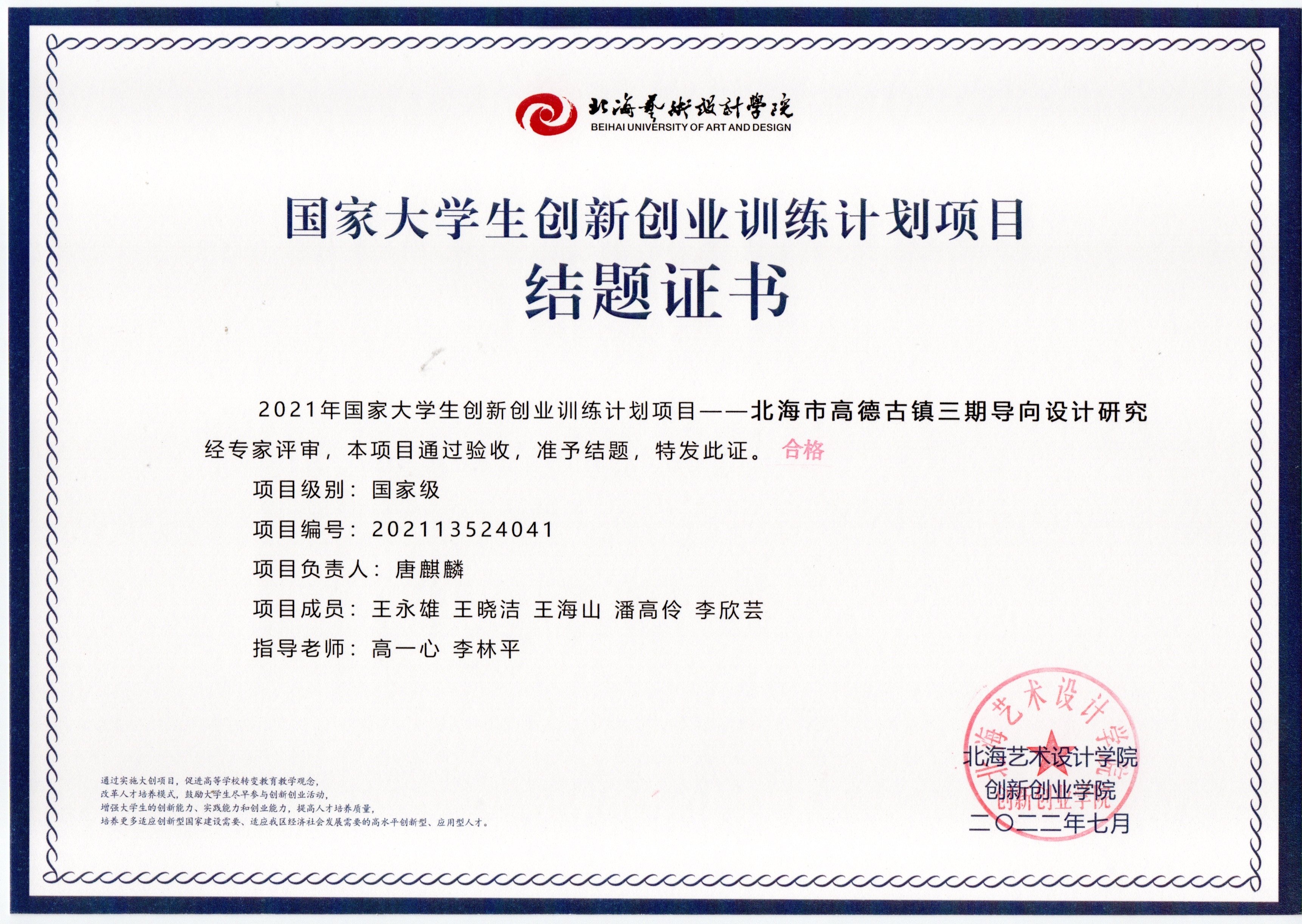 2021立项(结题证书)