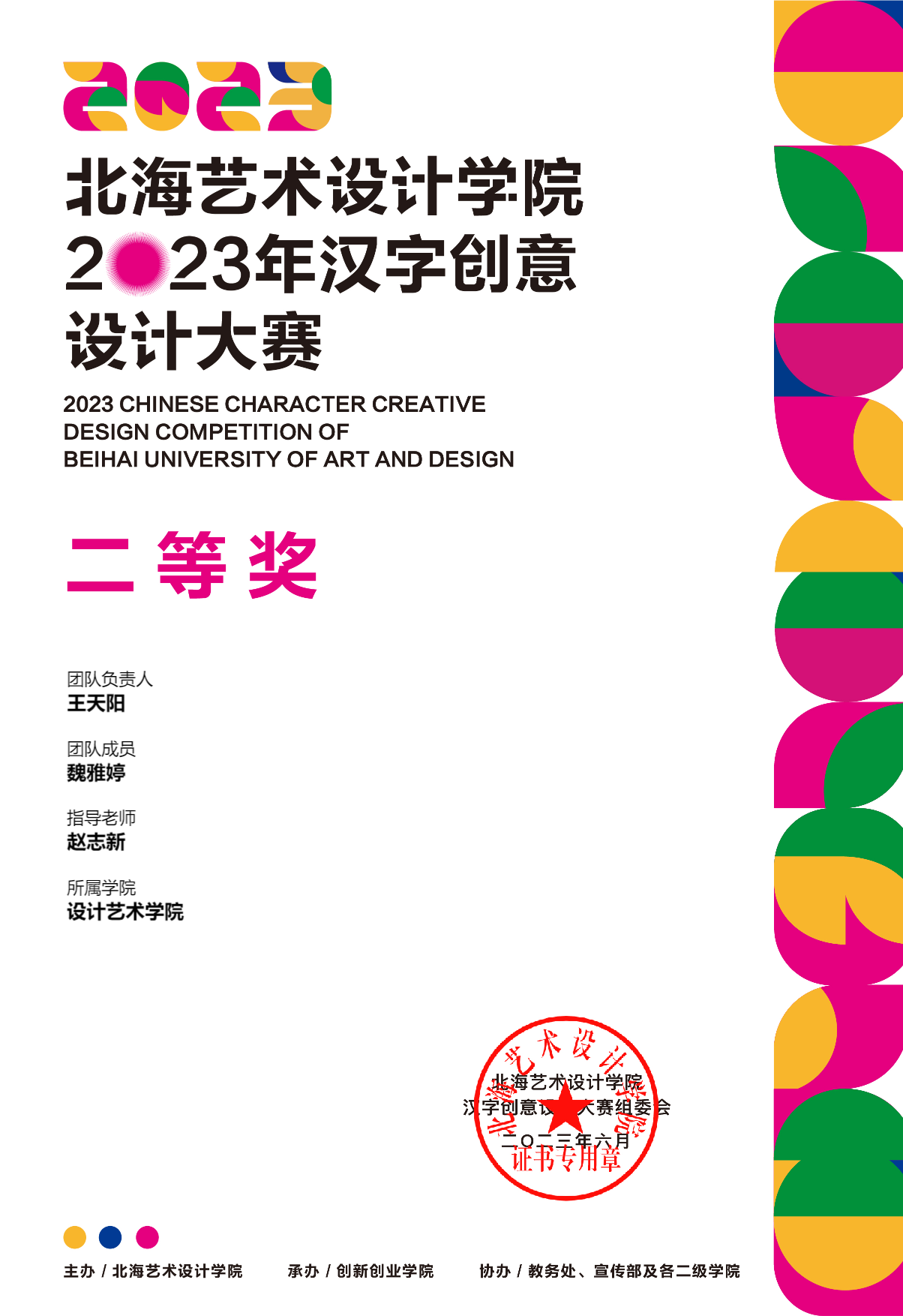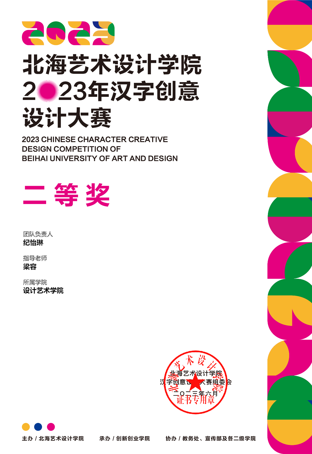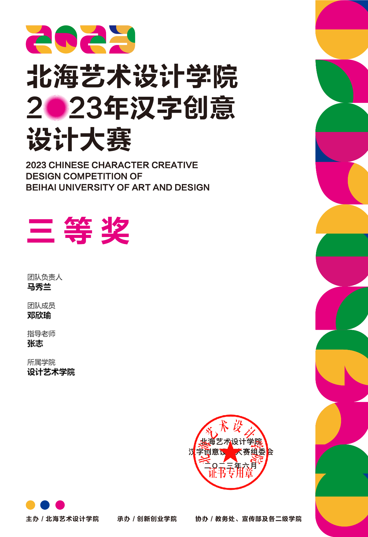 2023年汉字创意设计大赛等级奖证书