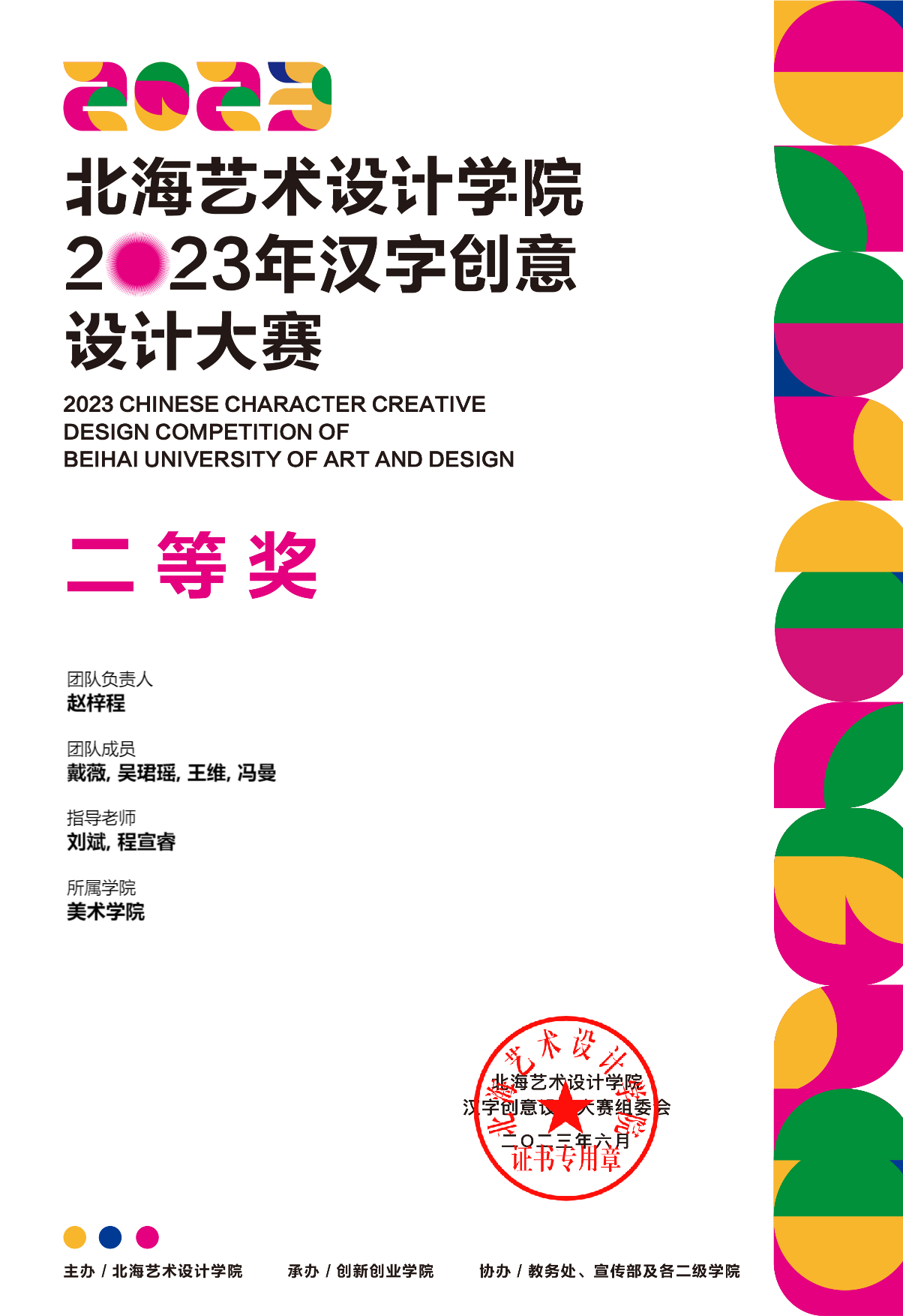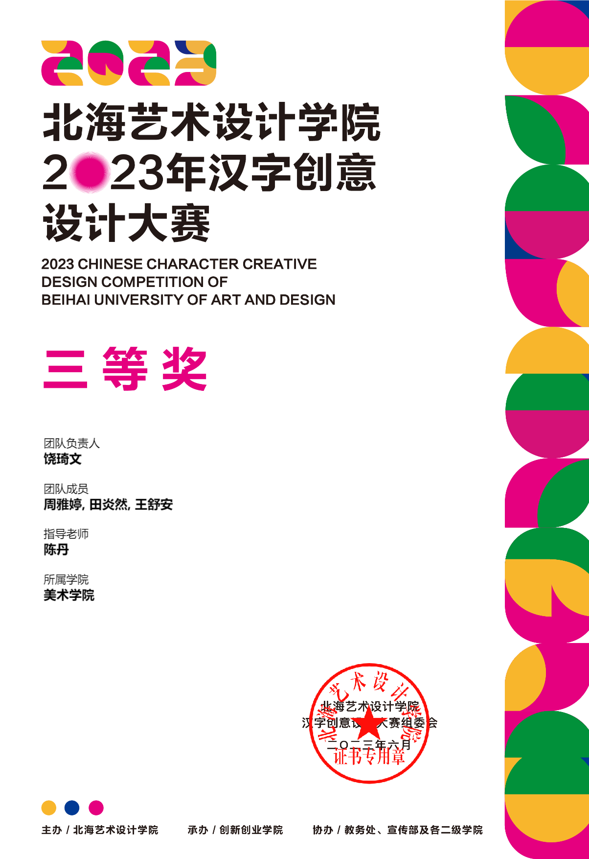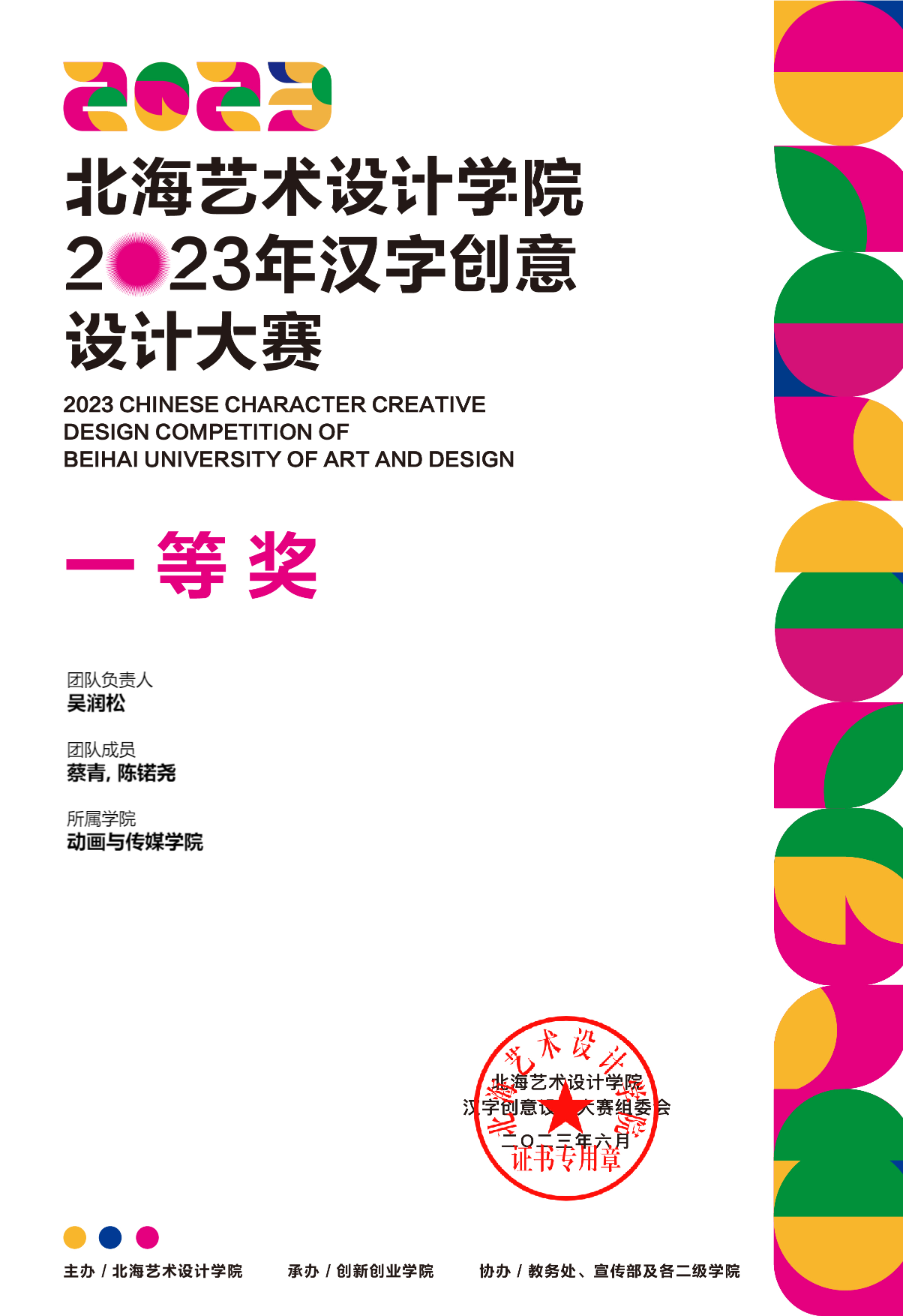 2023年汉字创意设计大赛等级奖证书