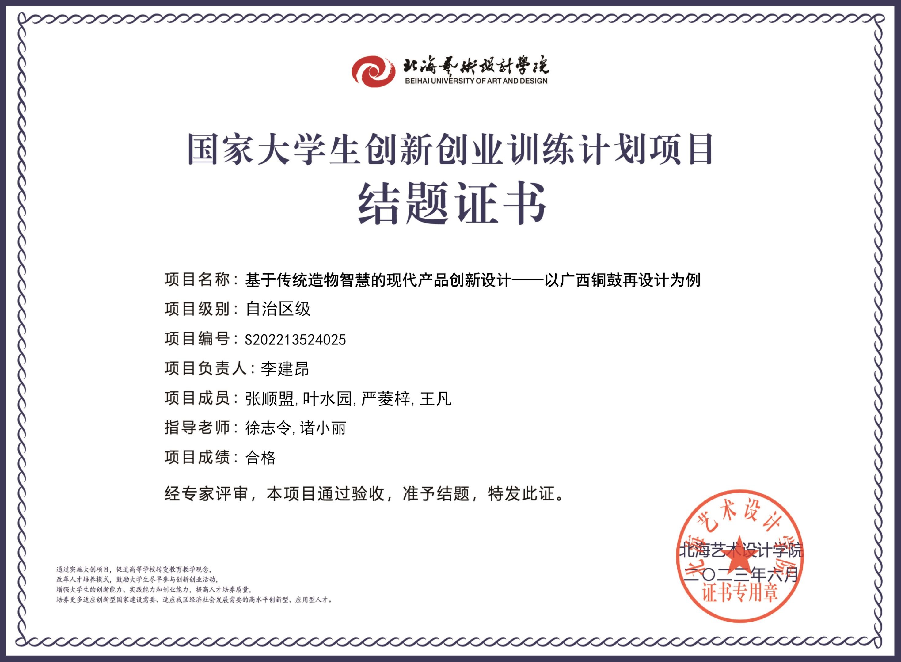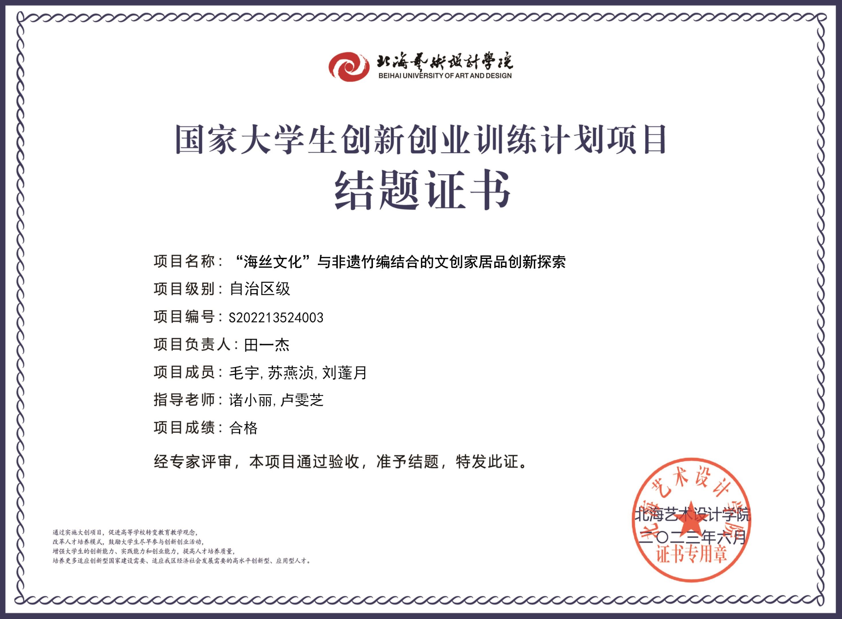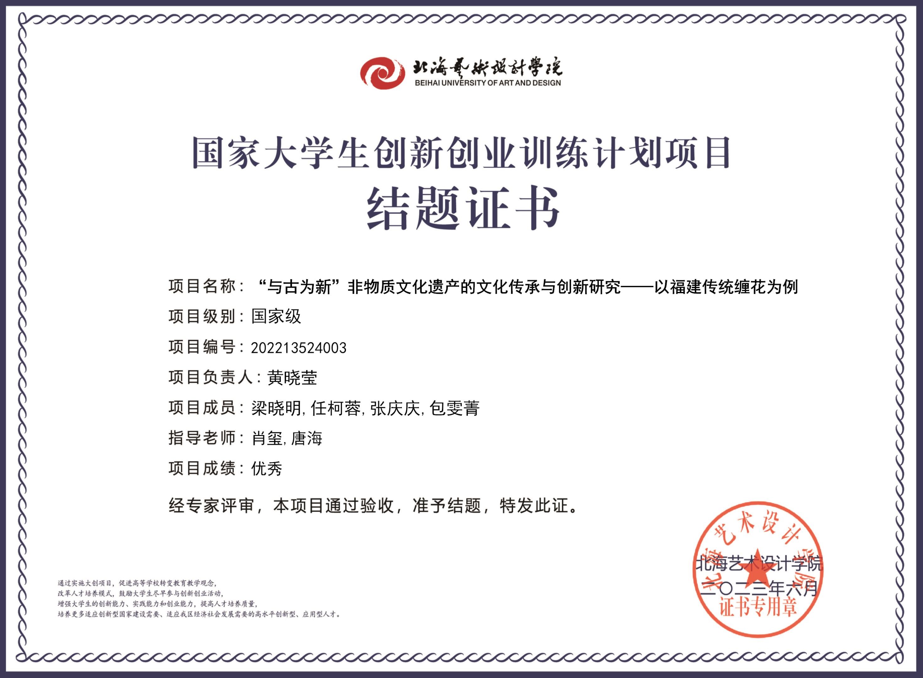 2023年大创项目结题证书(2022立项)
