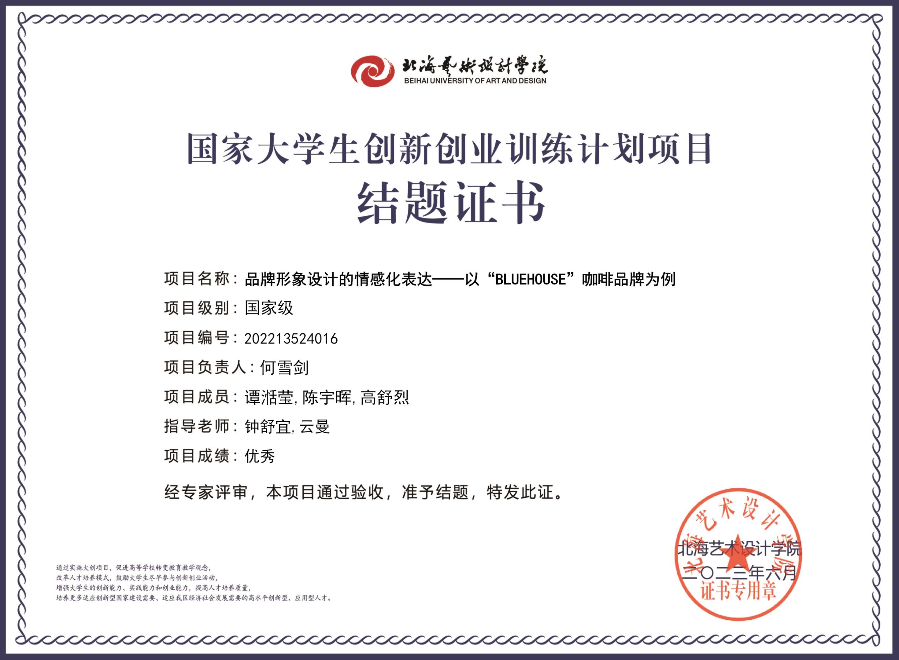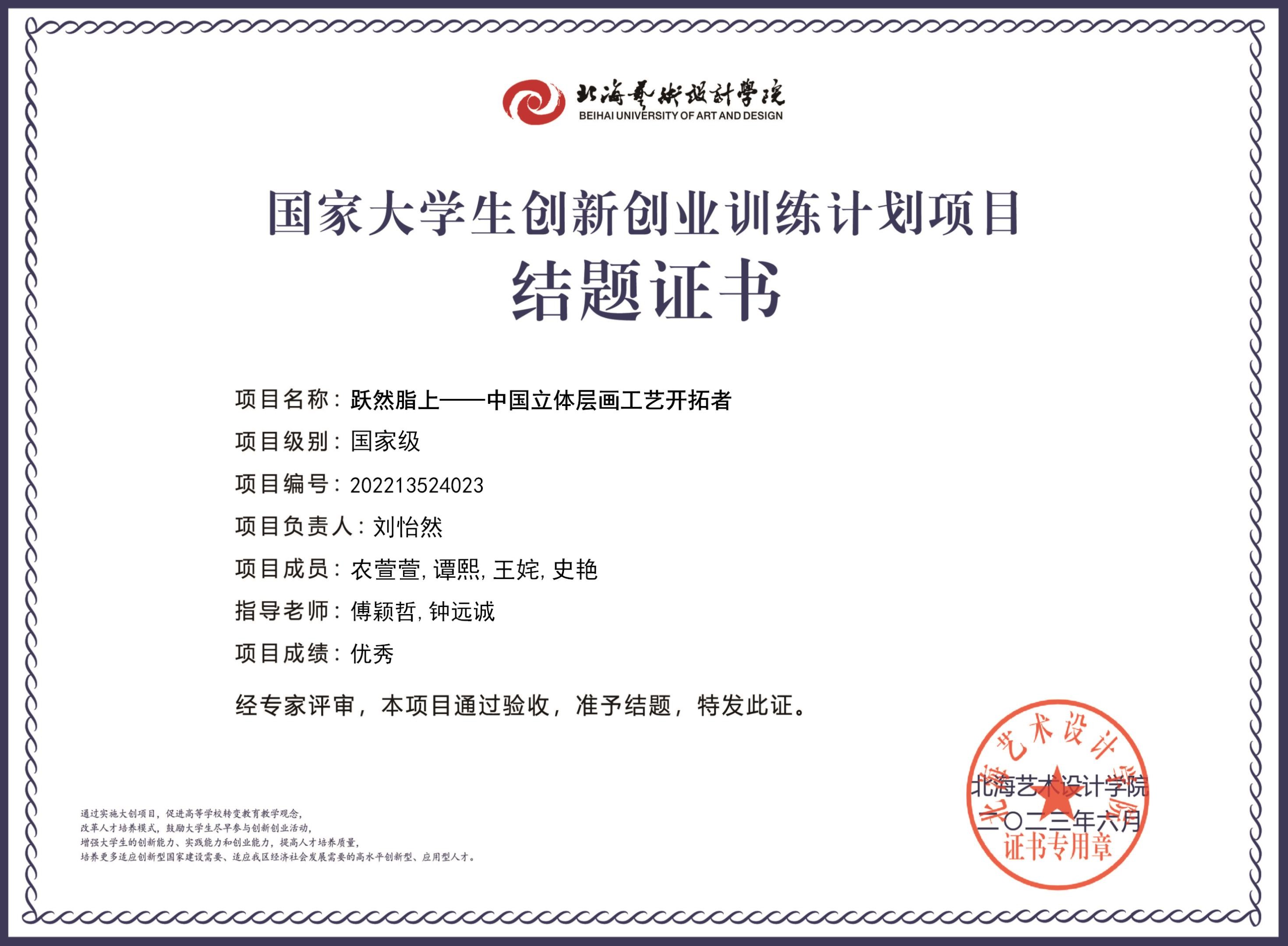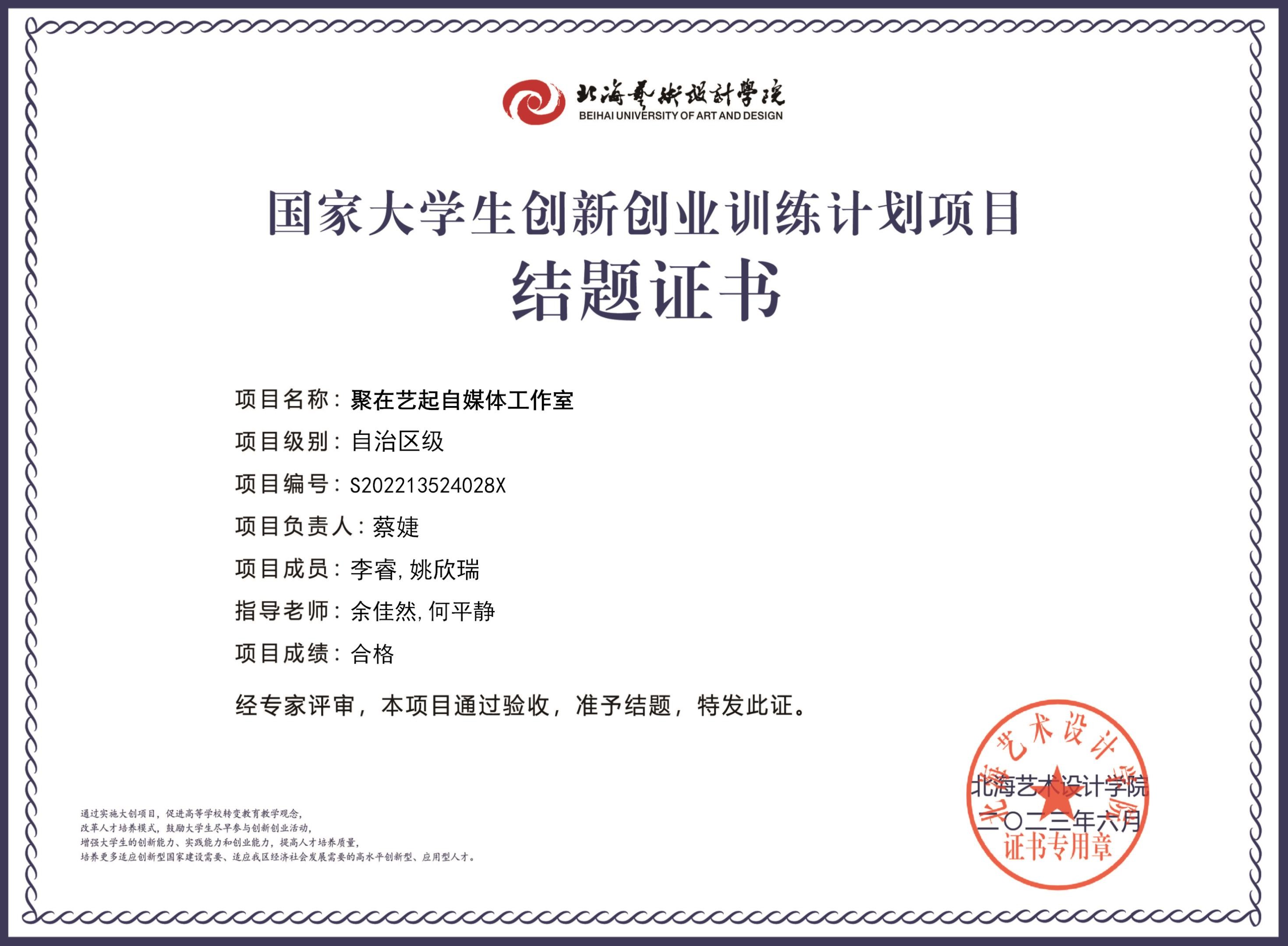 2023年大创项目结题证书(2022立项)