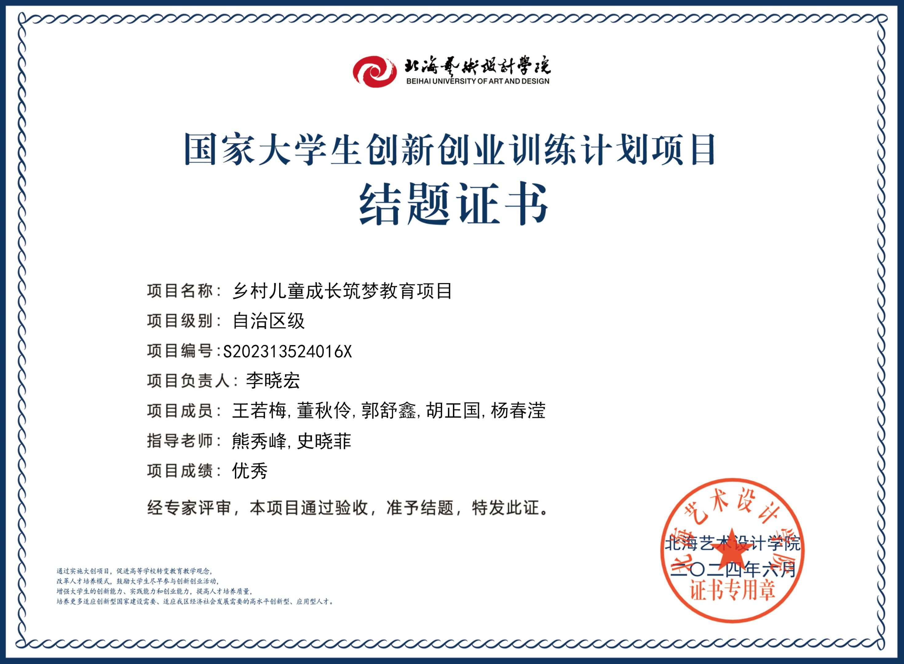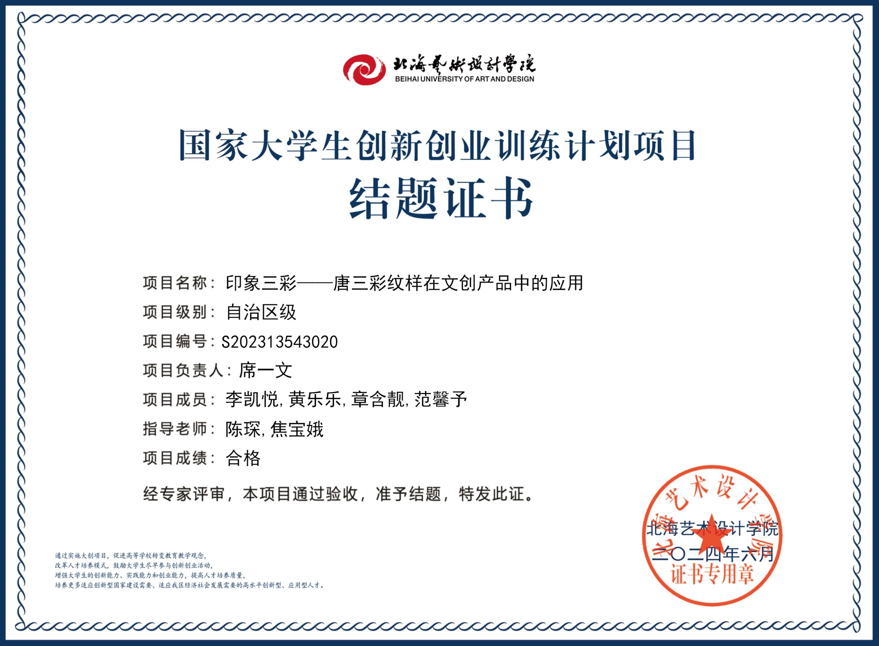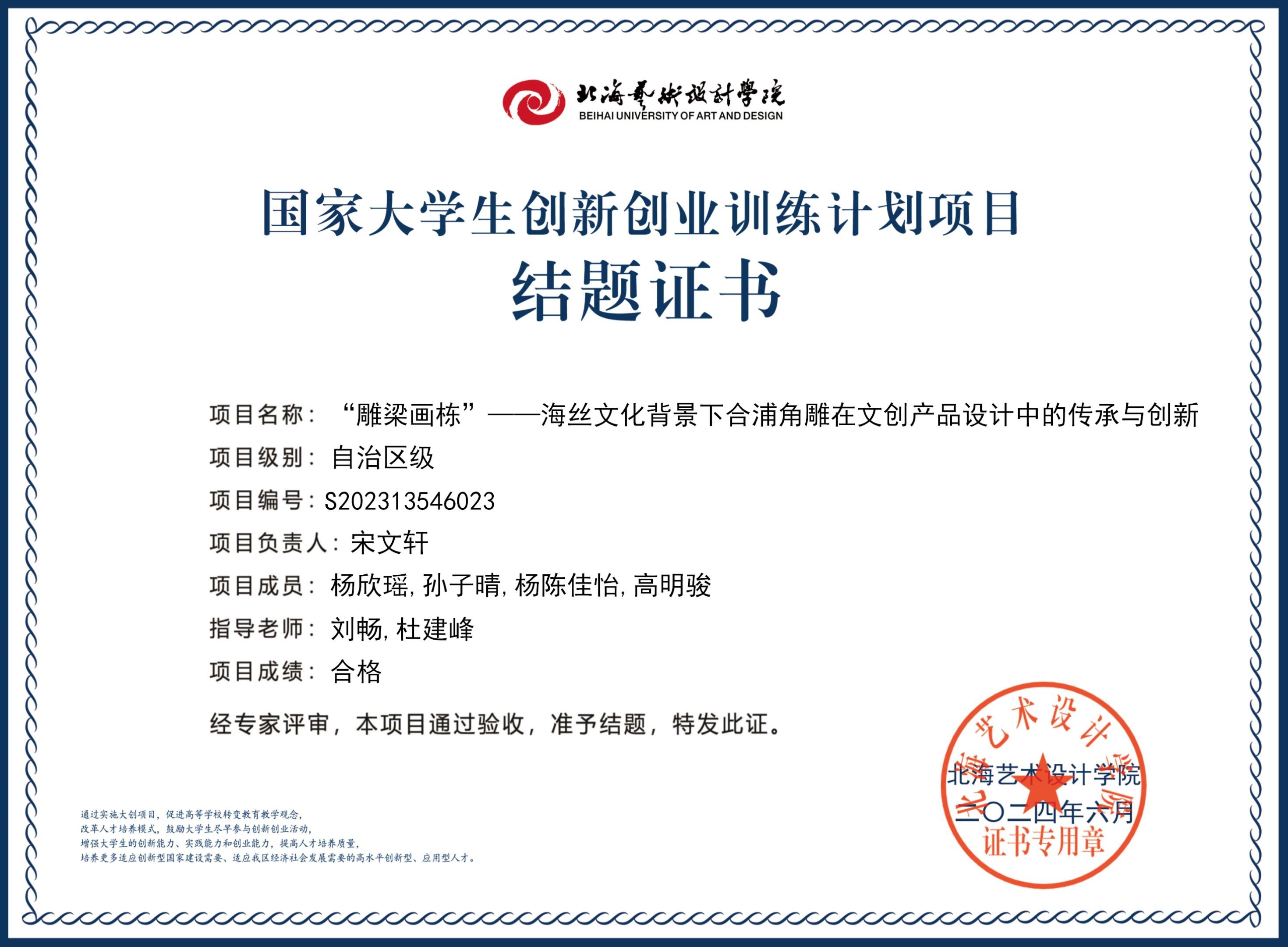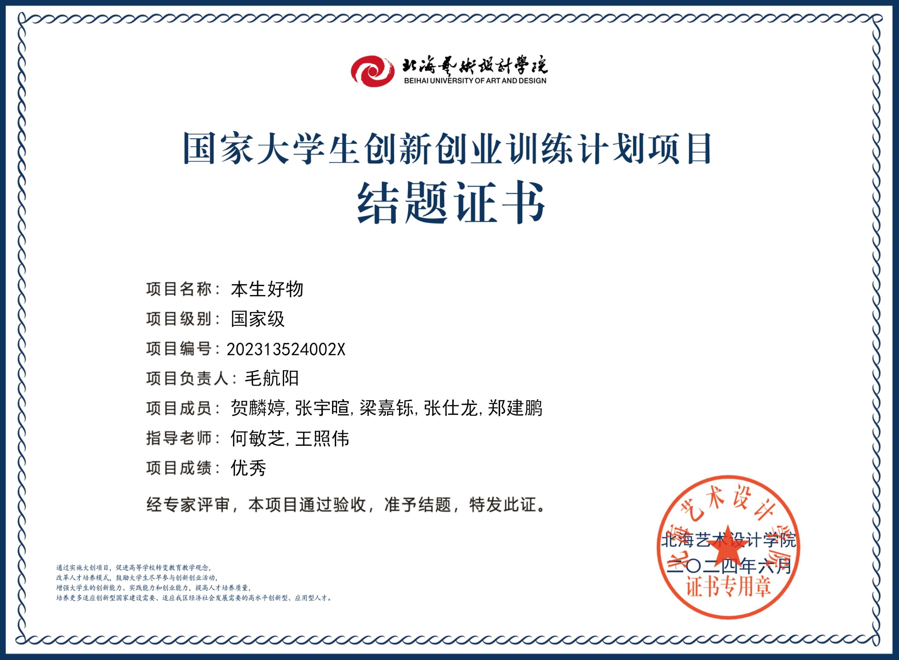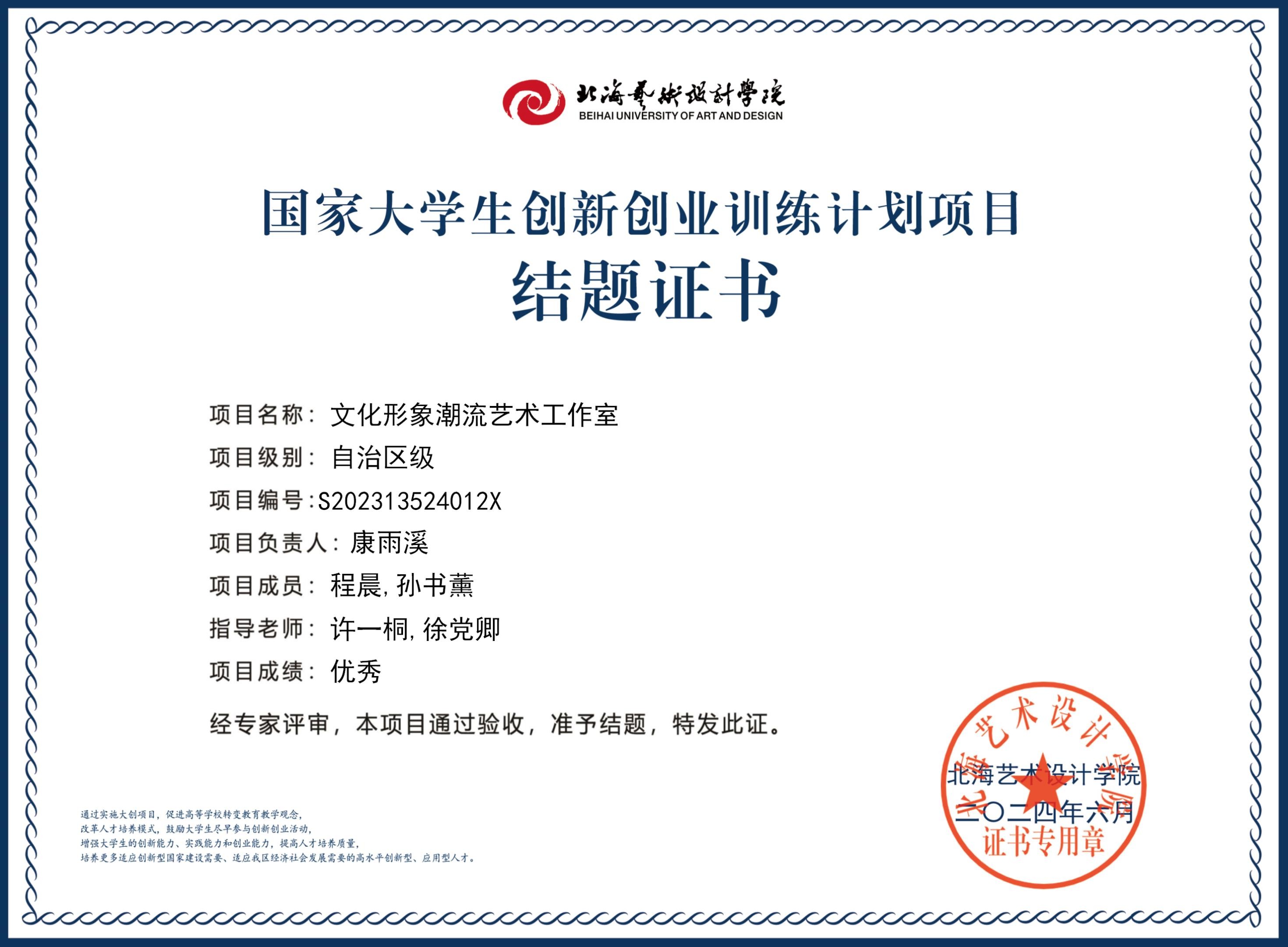 2023年大创项目结题证书(2023立项)