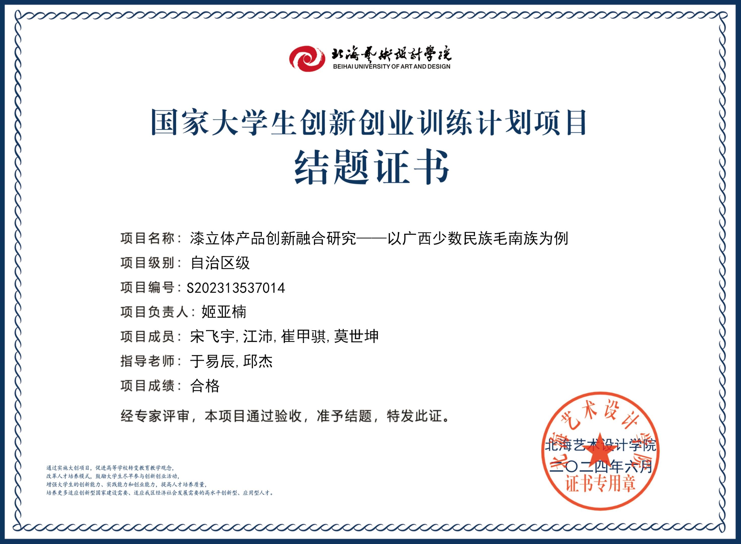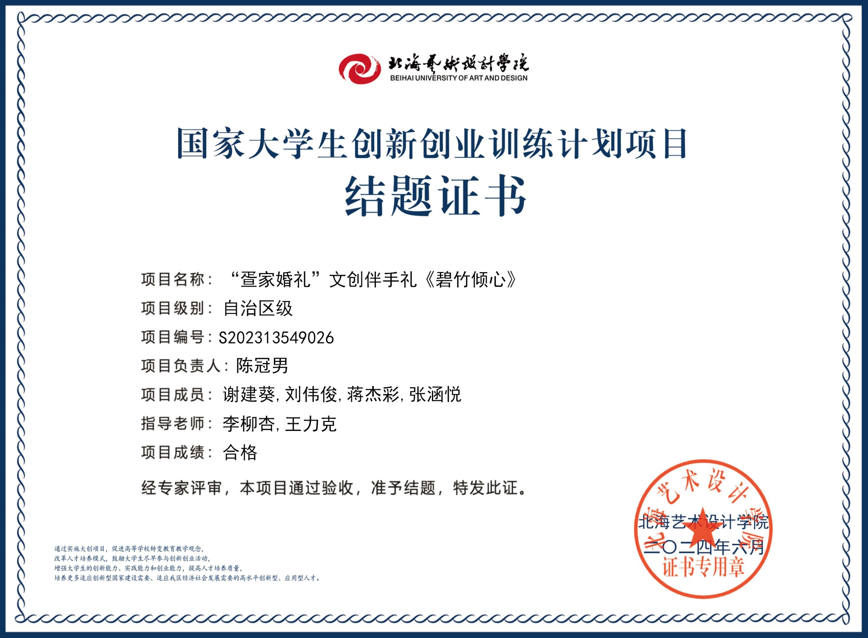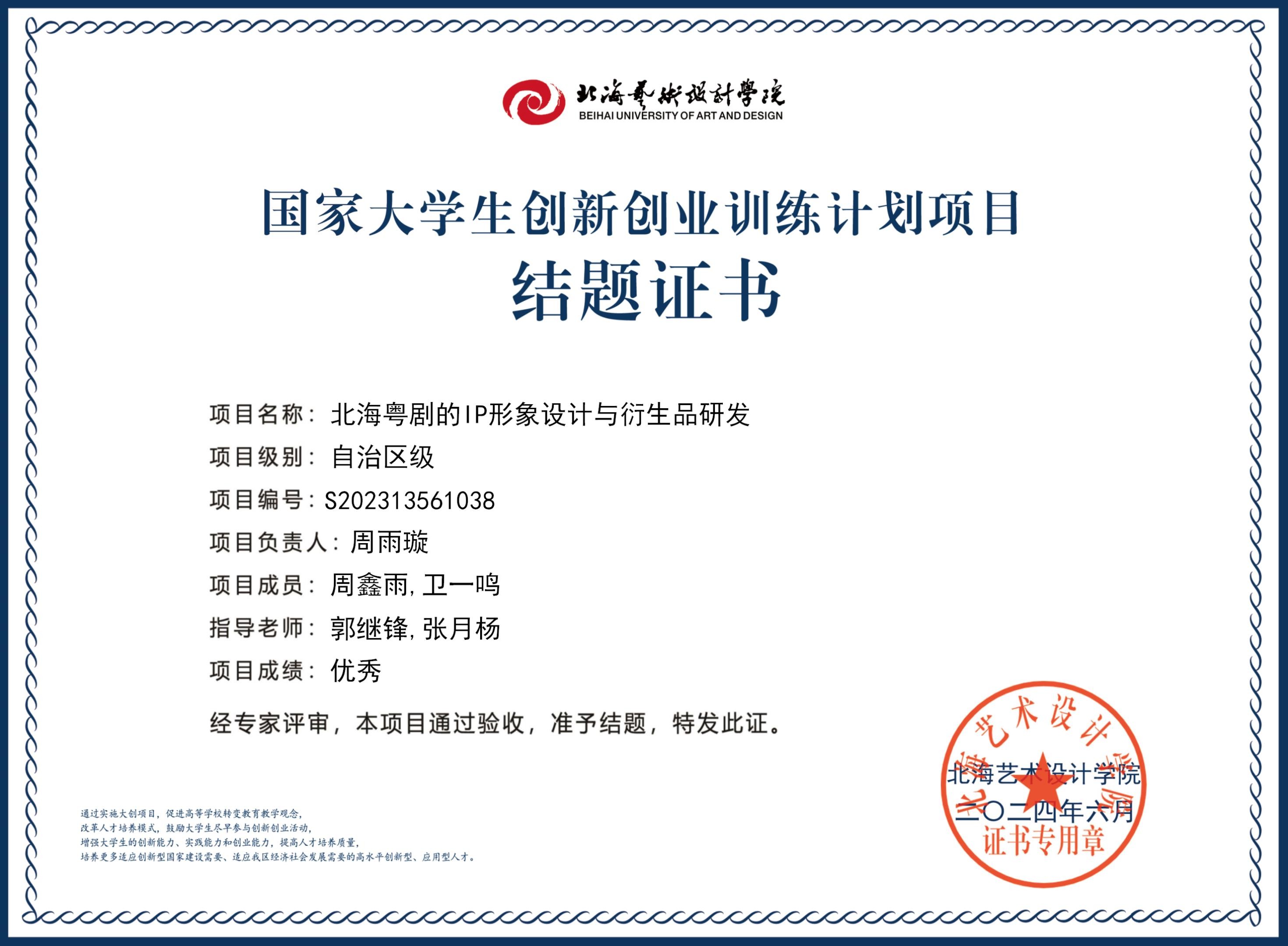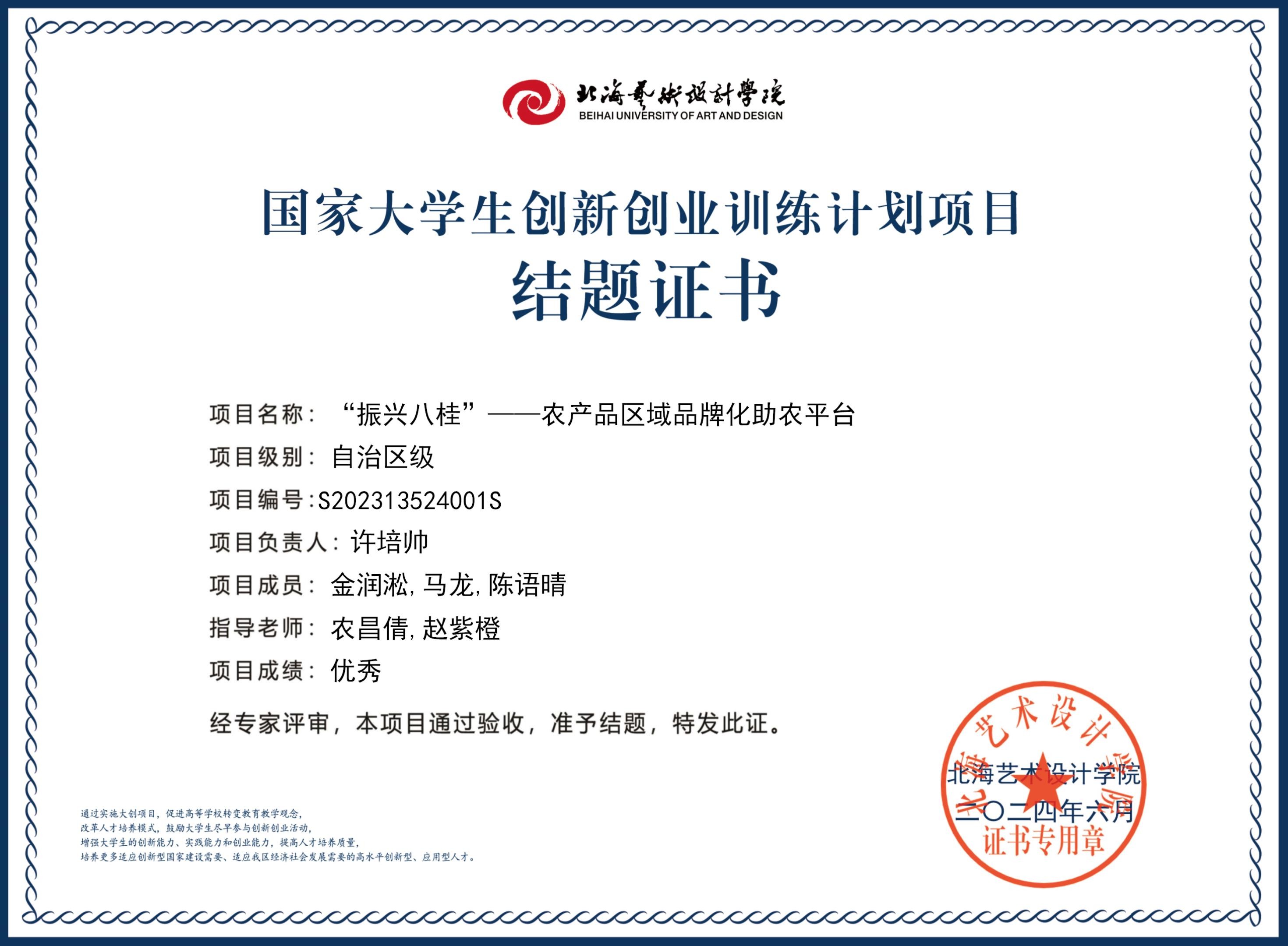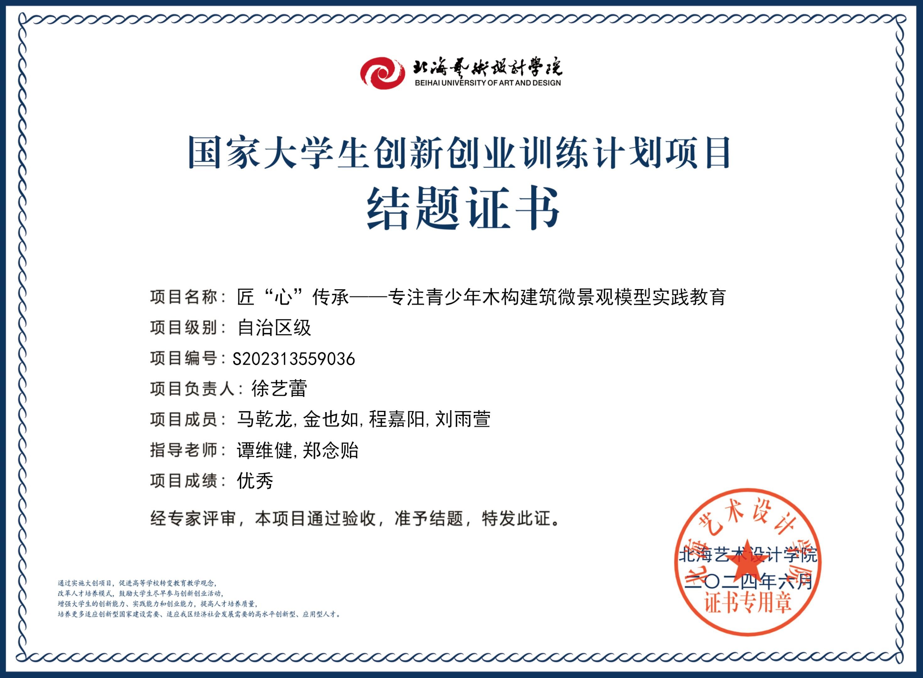 2023年大创项目结题证书(2023立项)