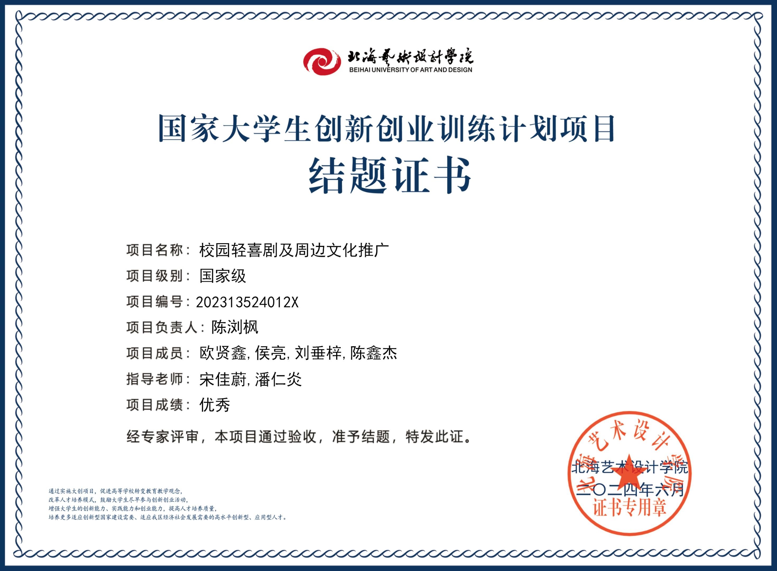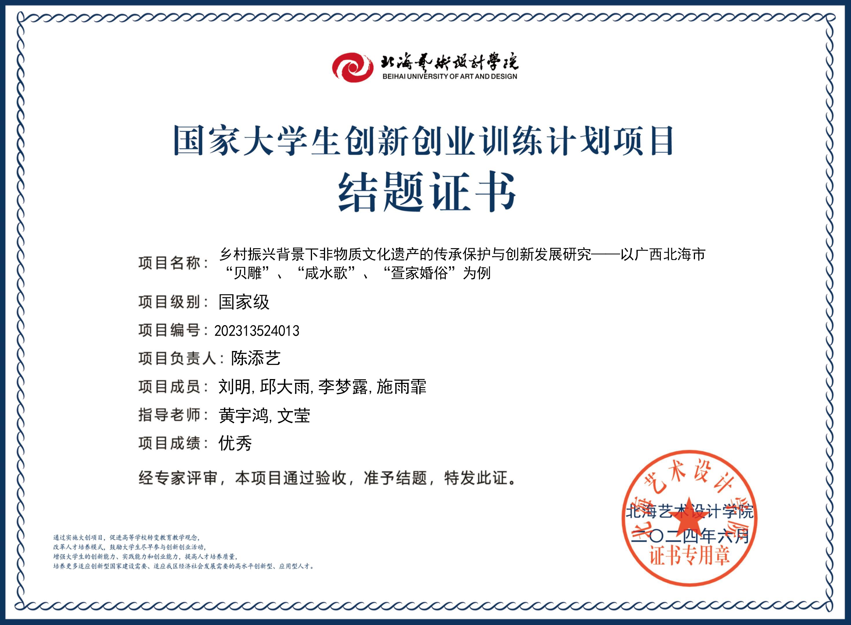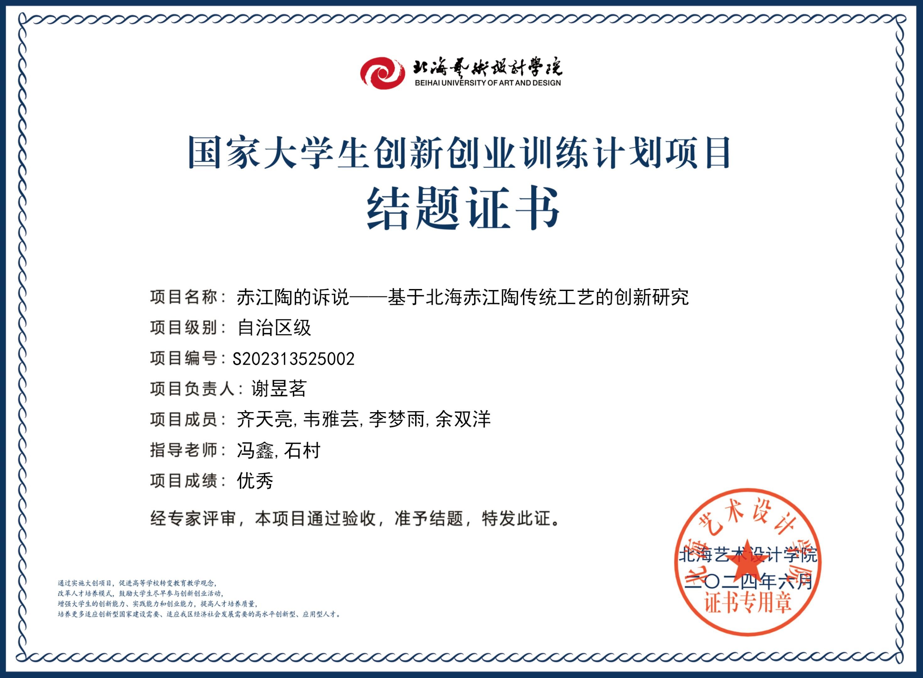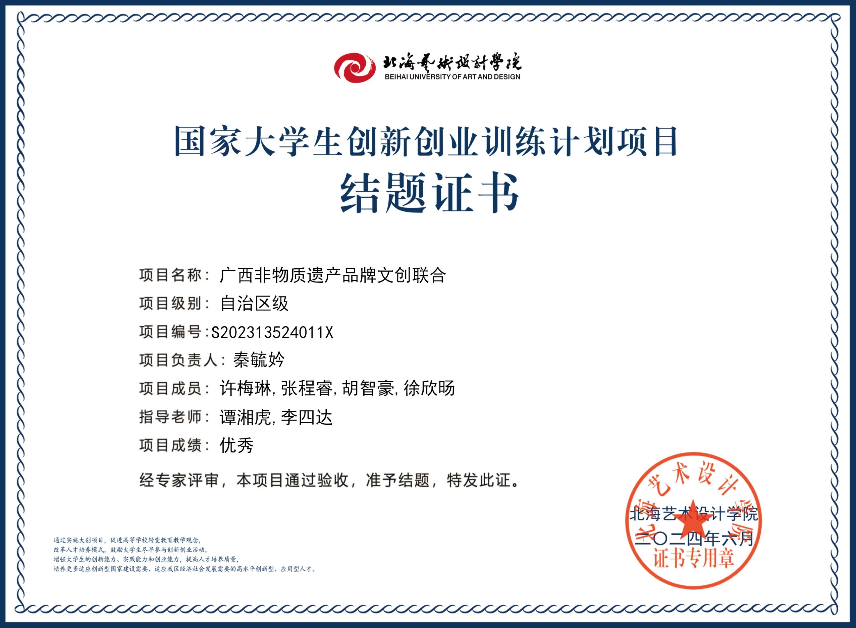 2023年大创项目结题证书(2023立项)