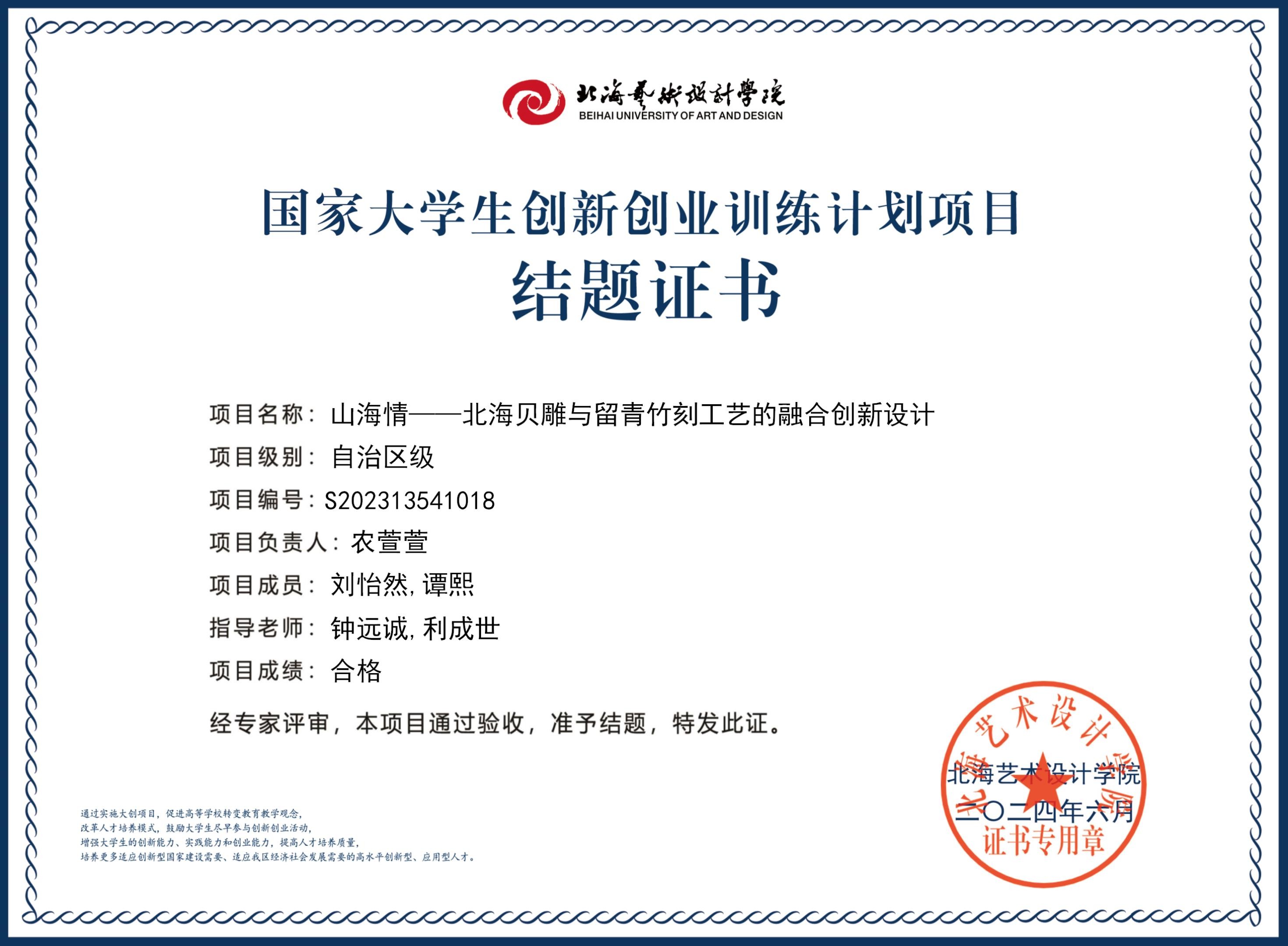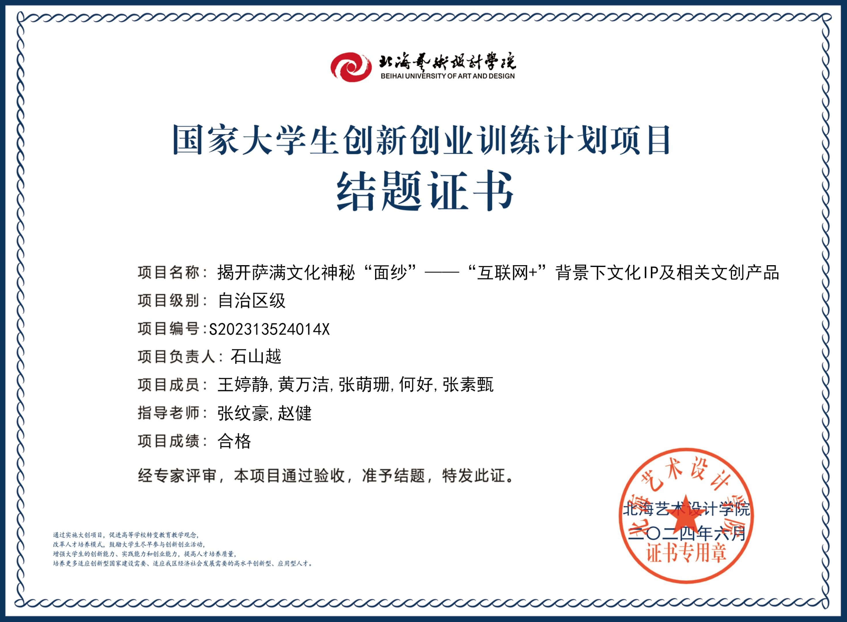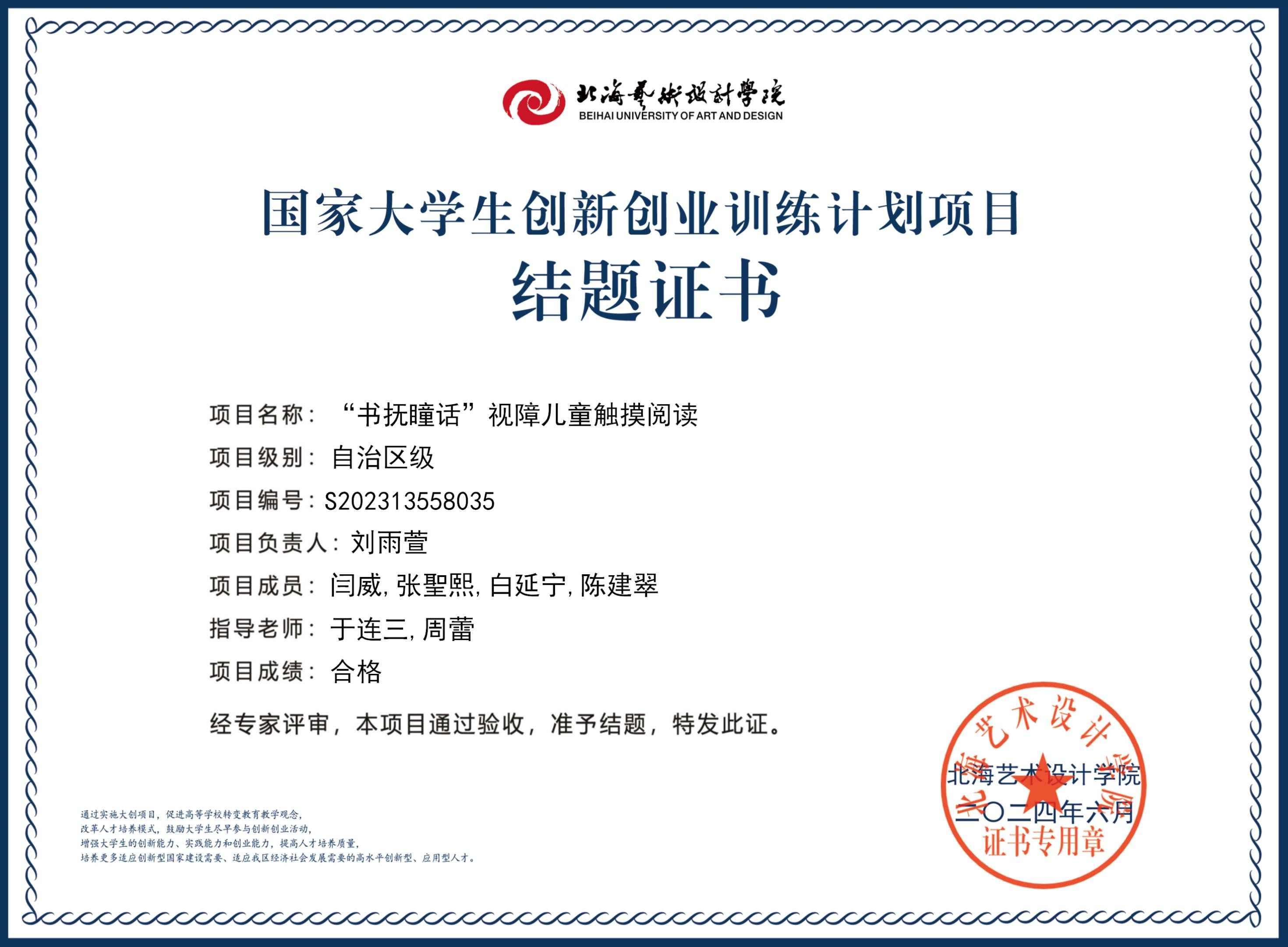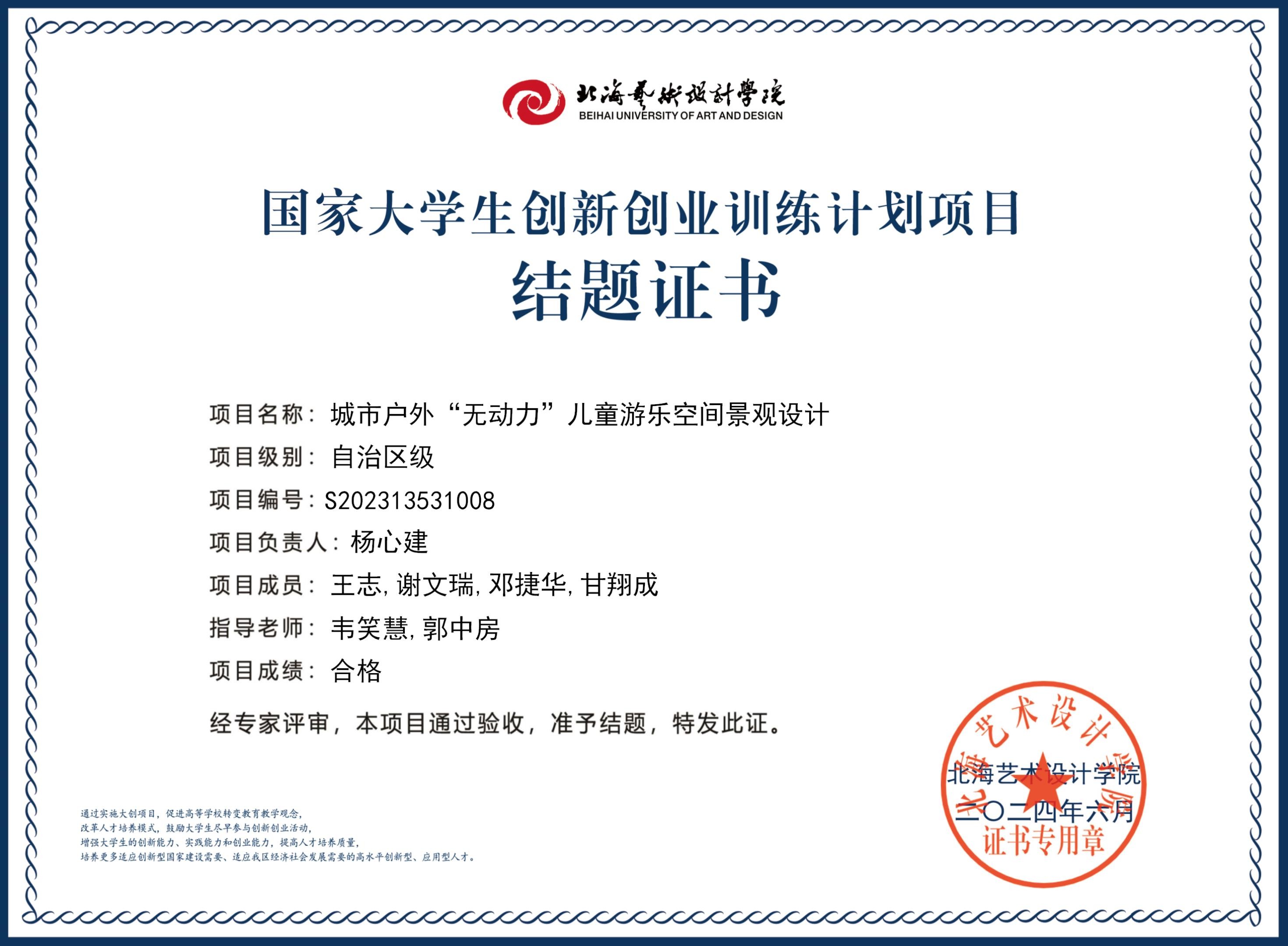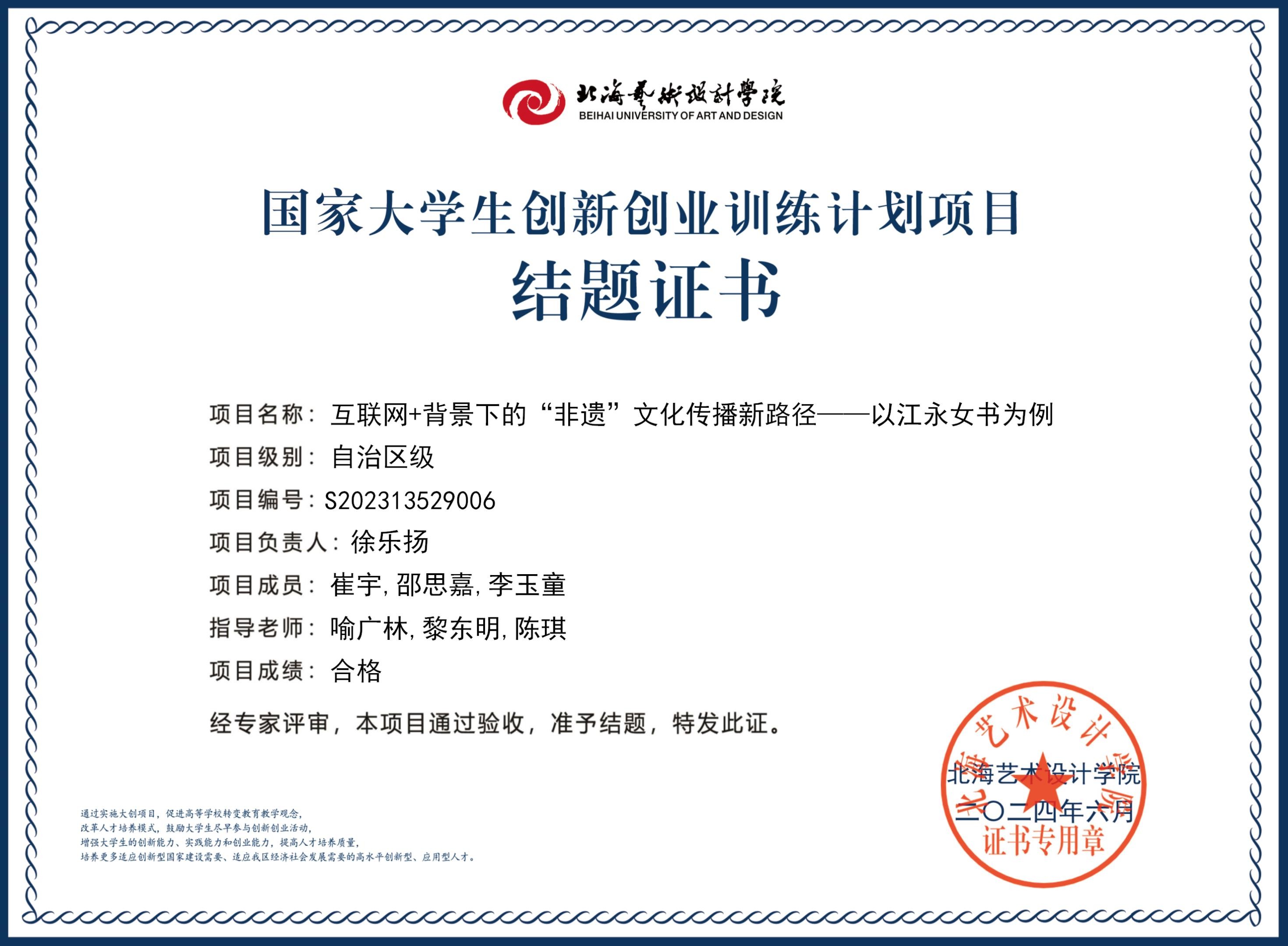 2023年大创项目结题证书(2023立项)