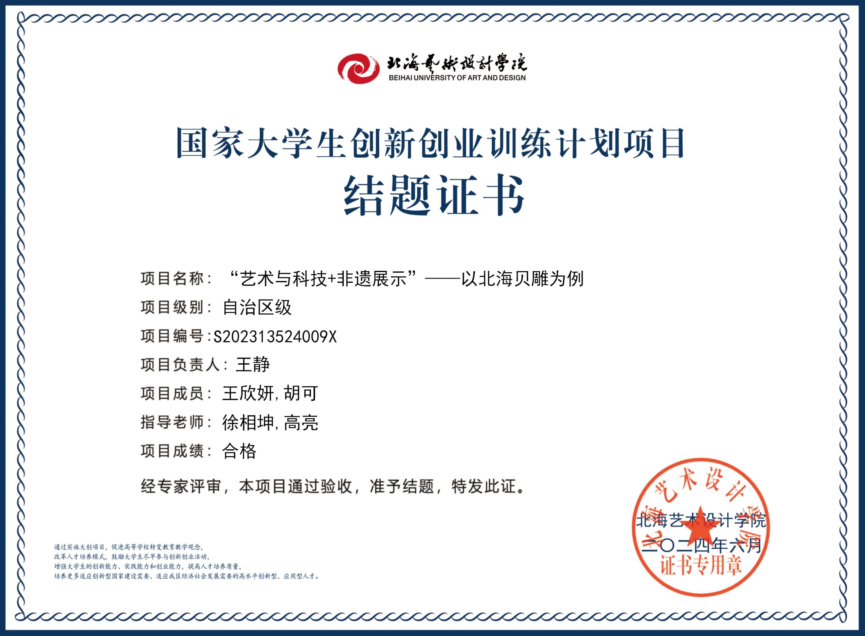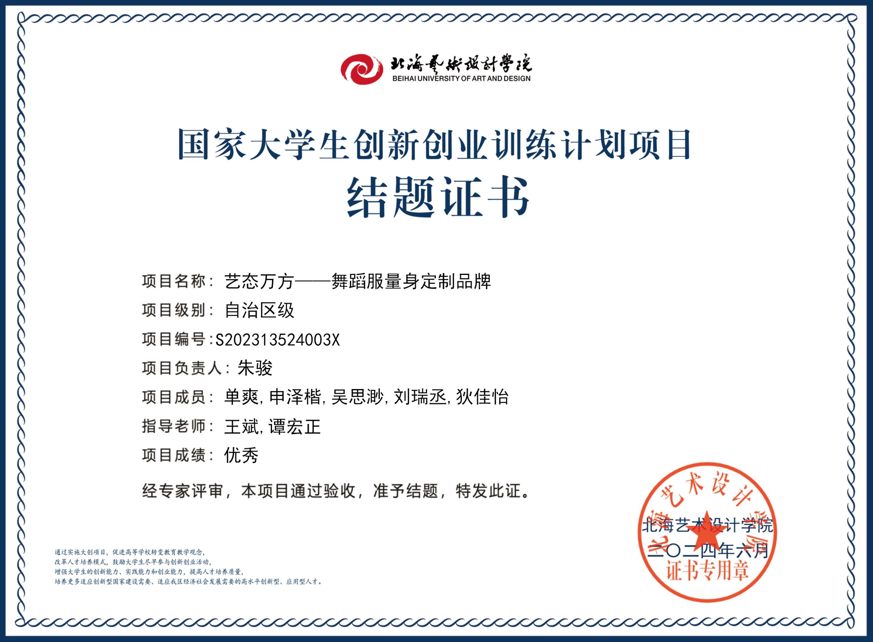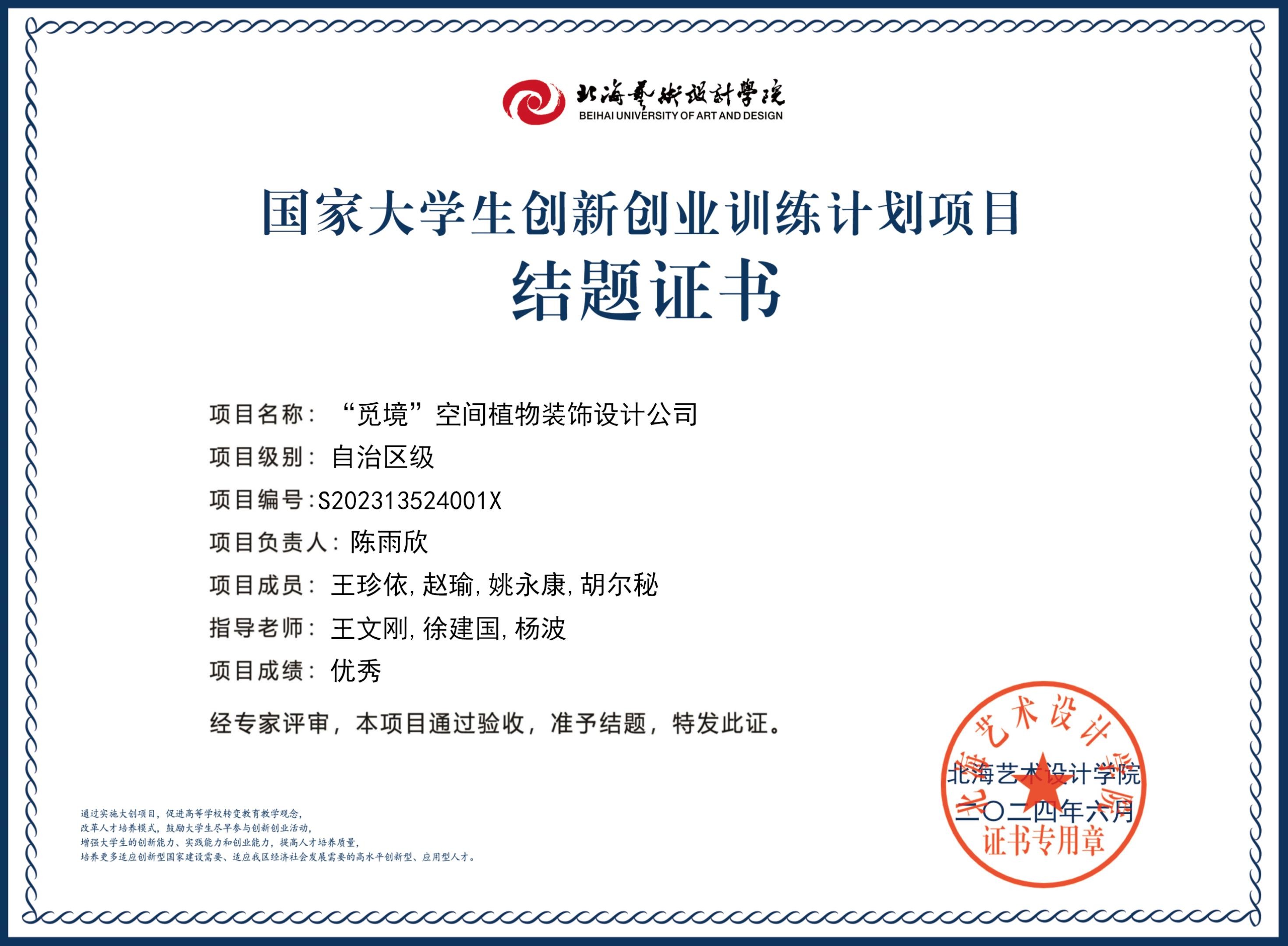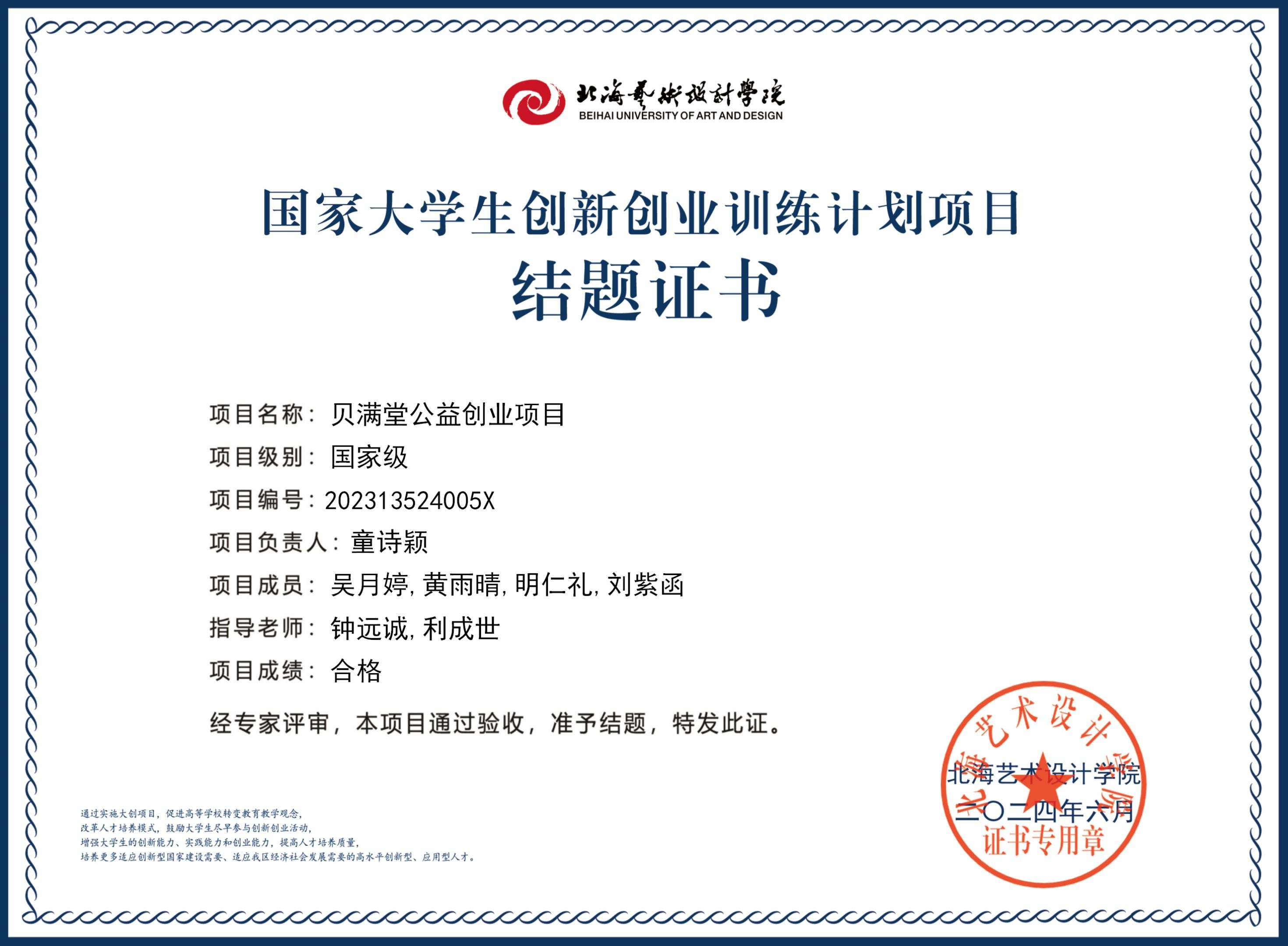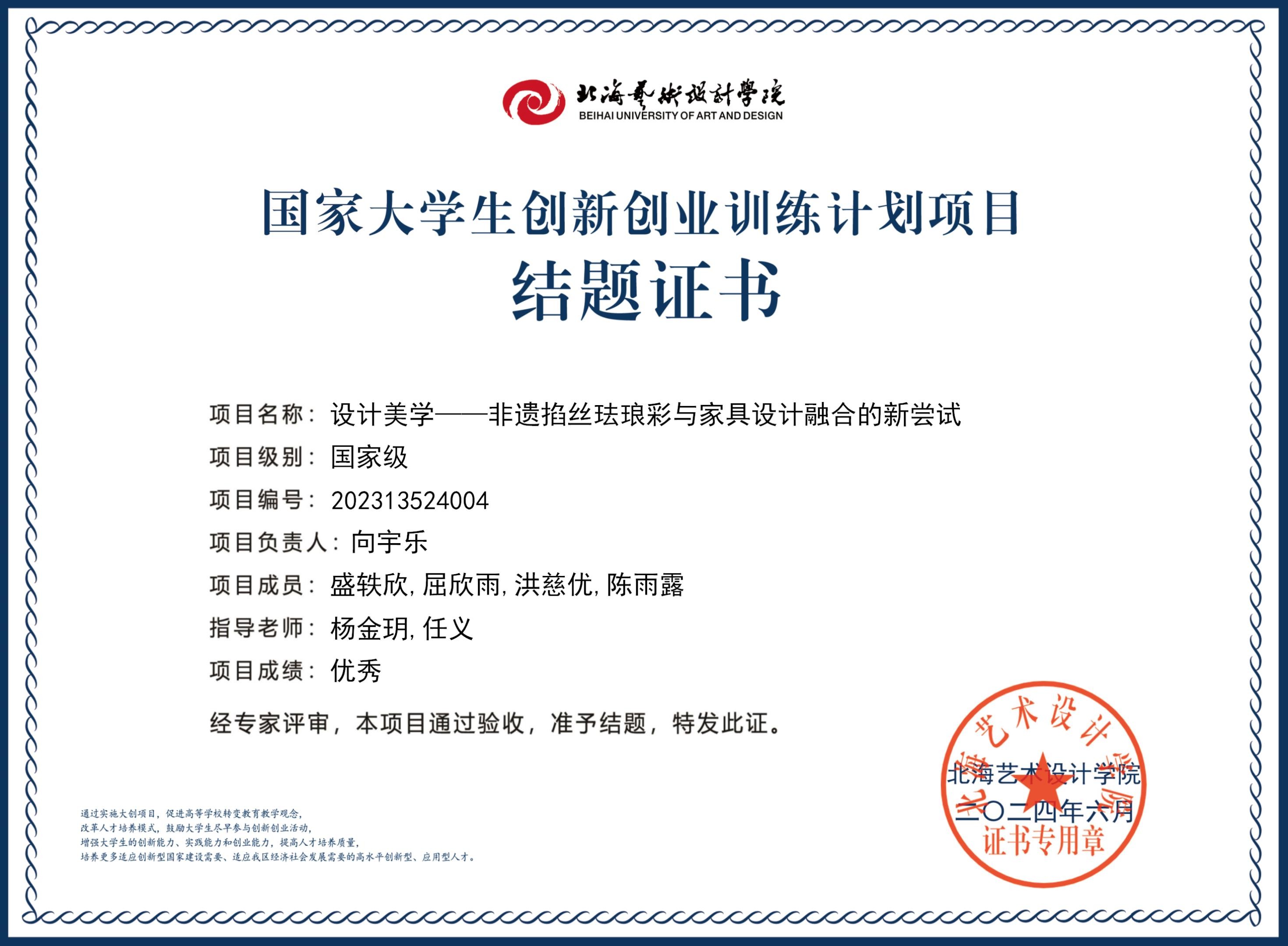 2023年大创项目结题证书(2023立项)