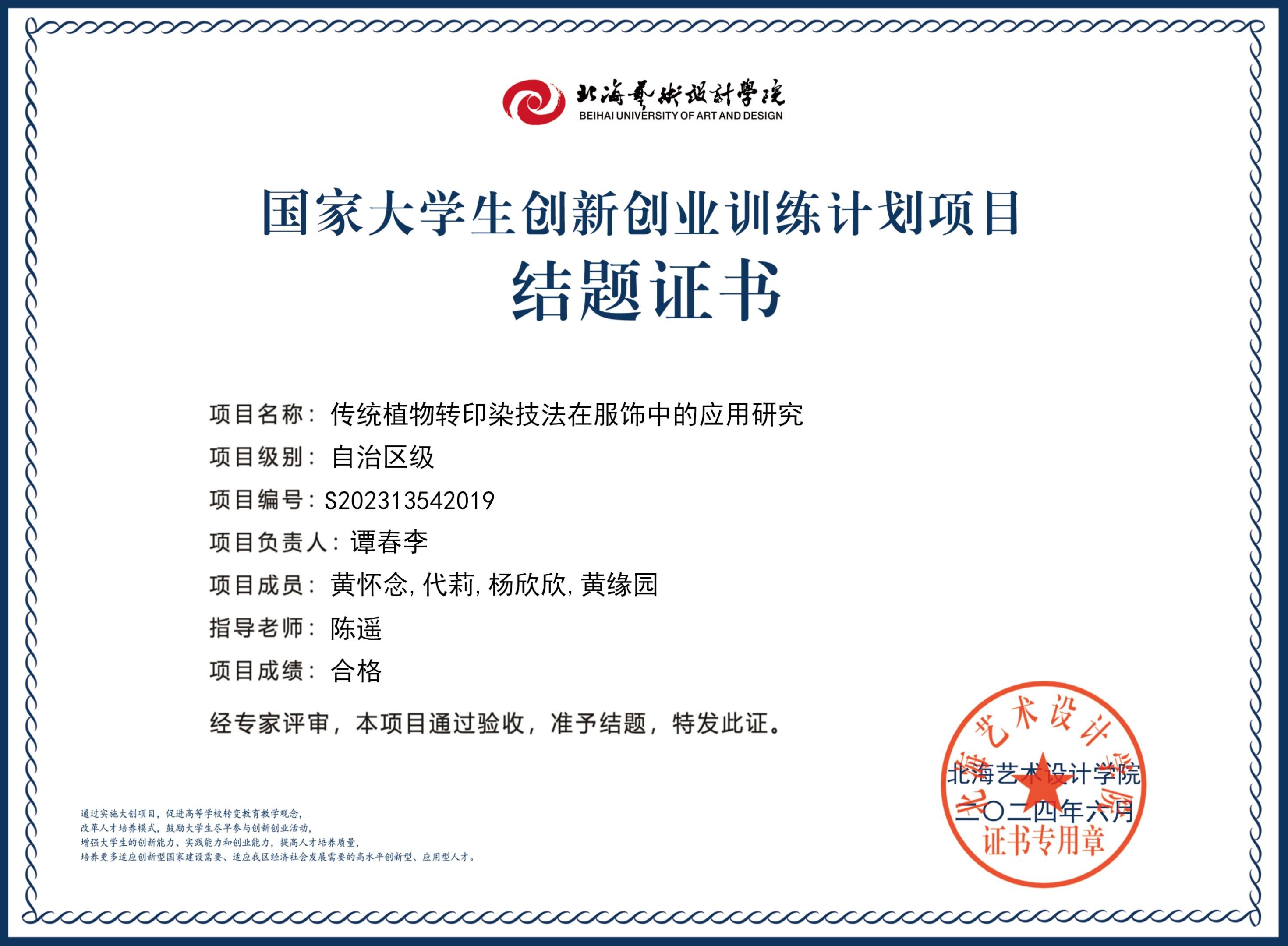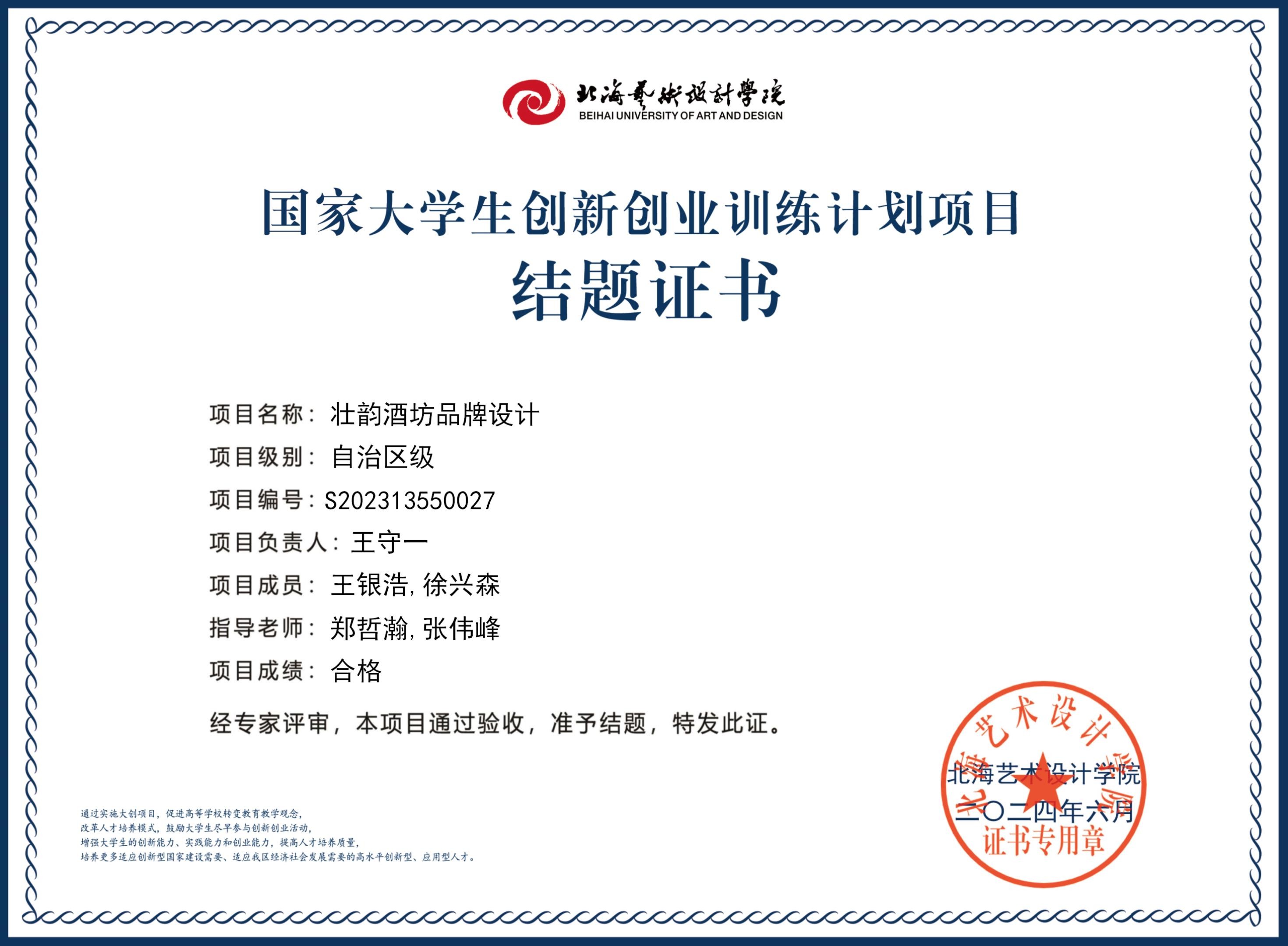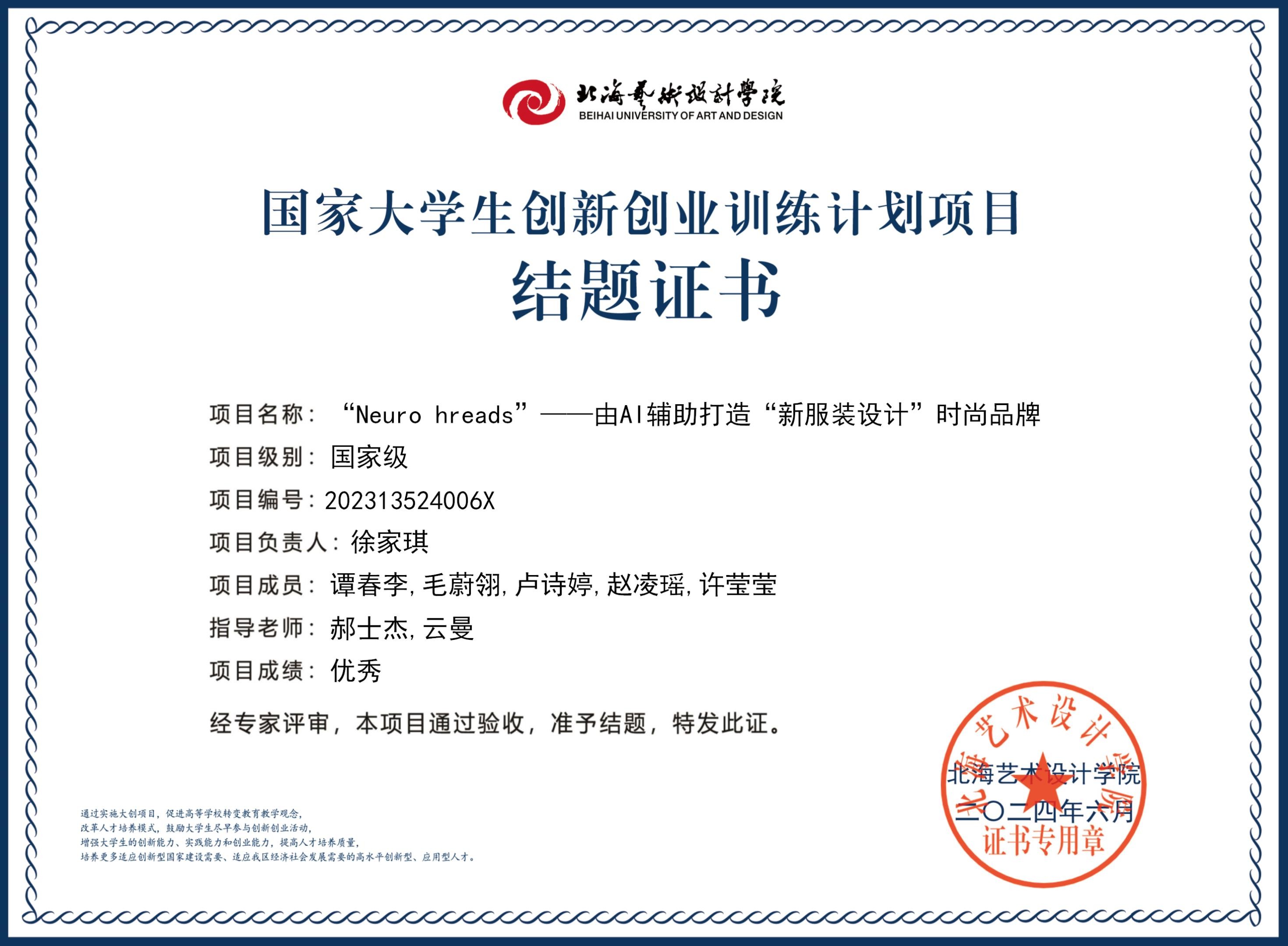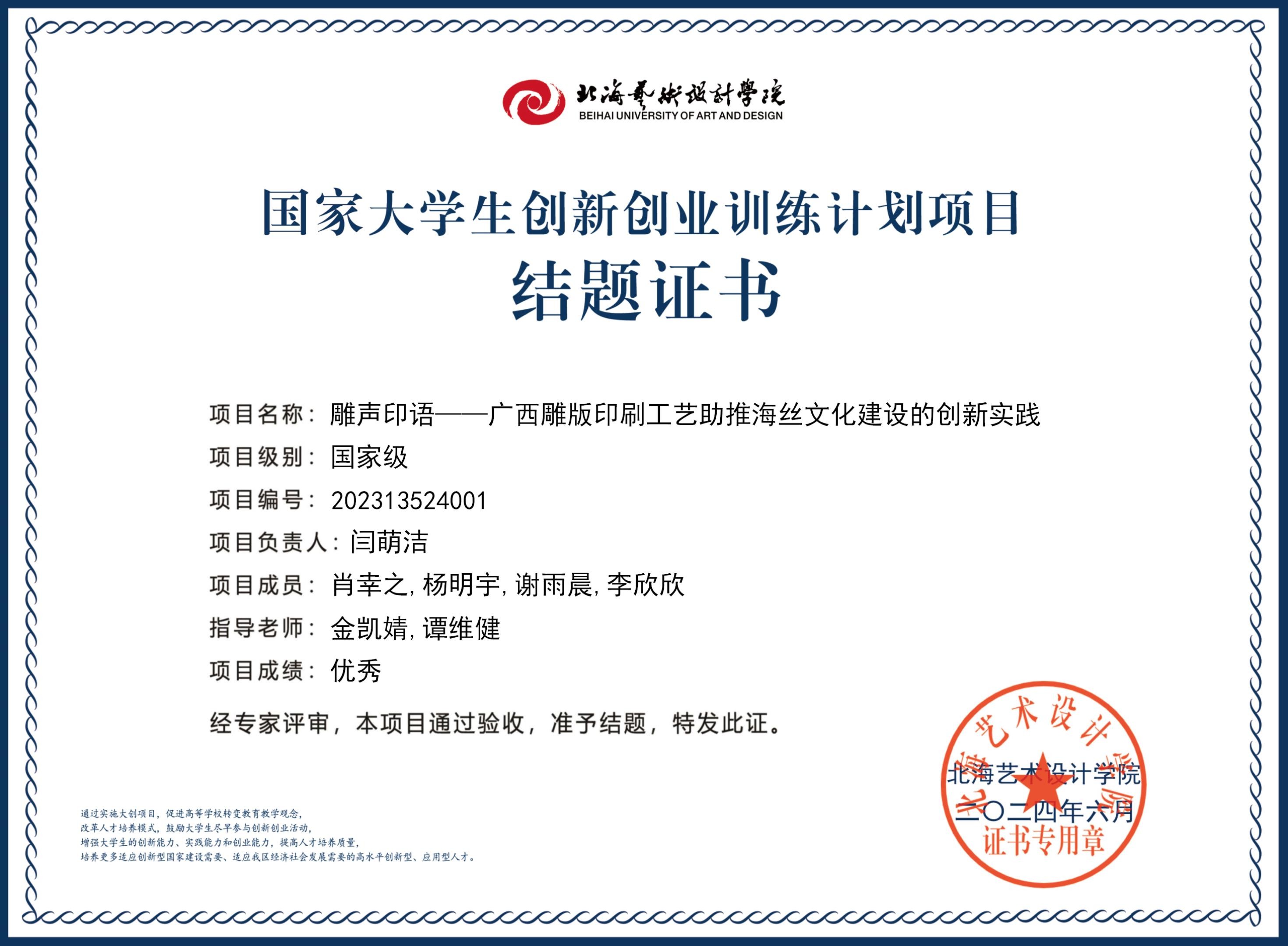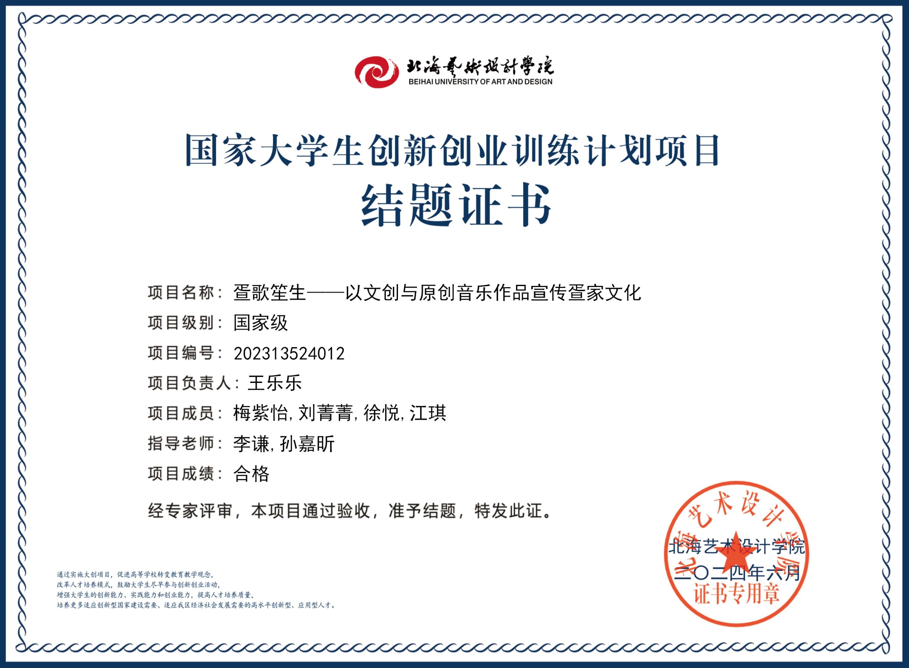 2023年大创项目结题证书(2023立项)
