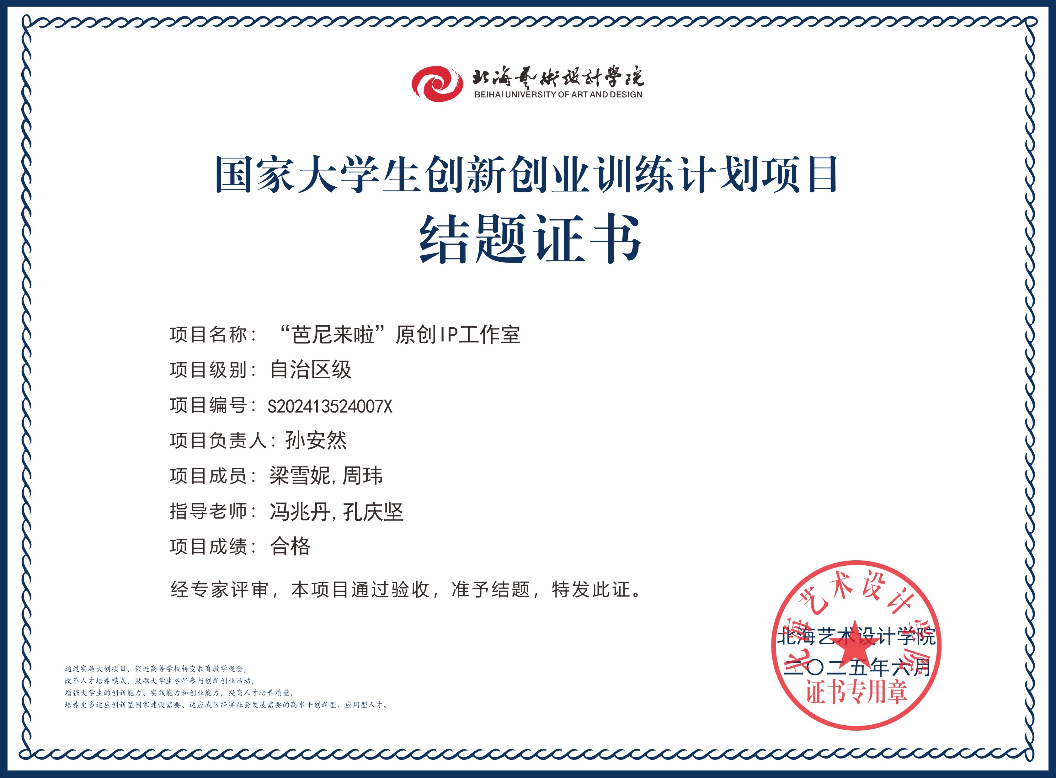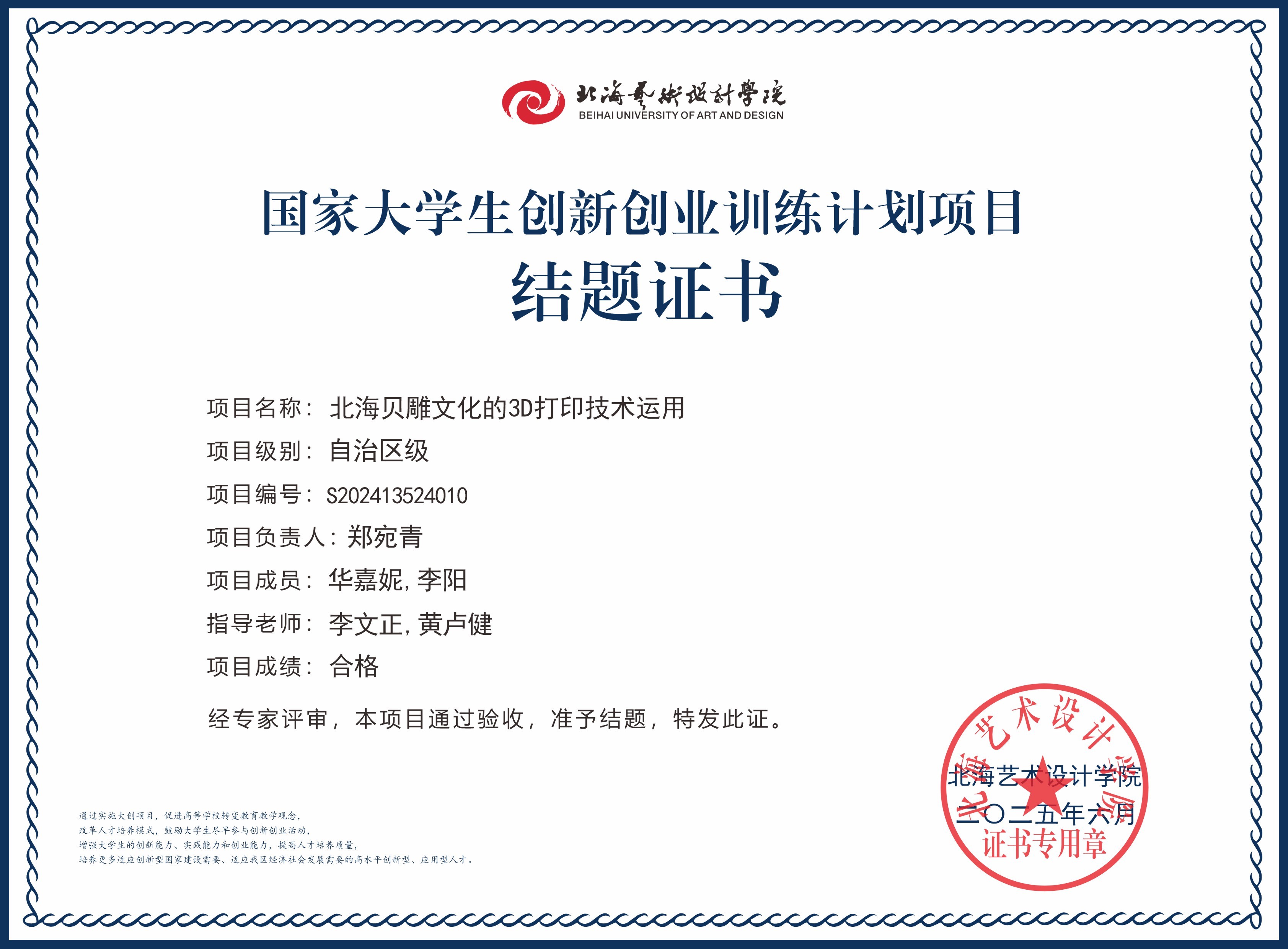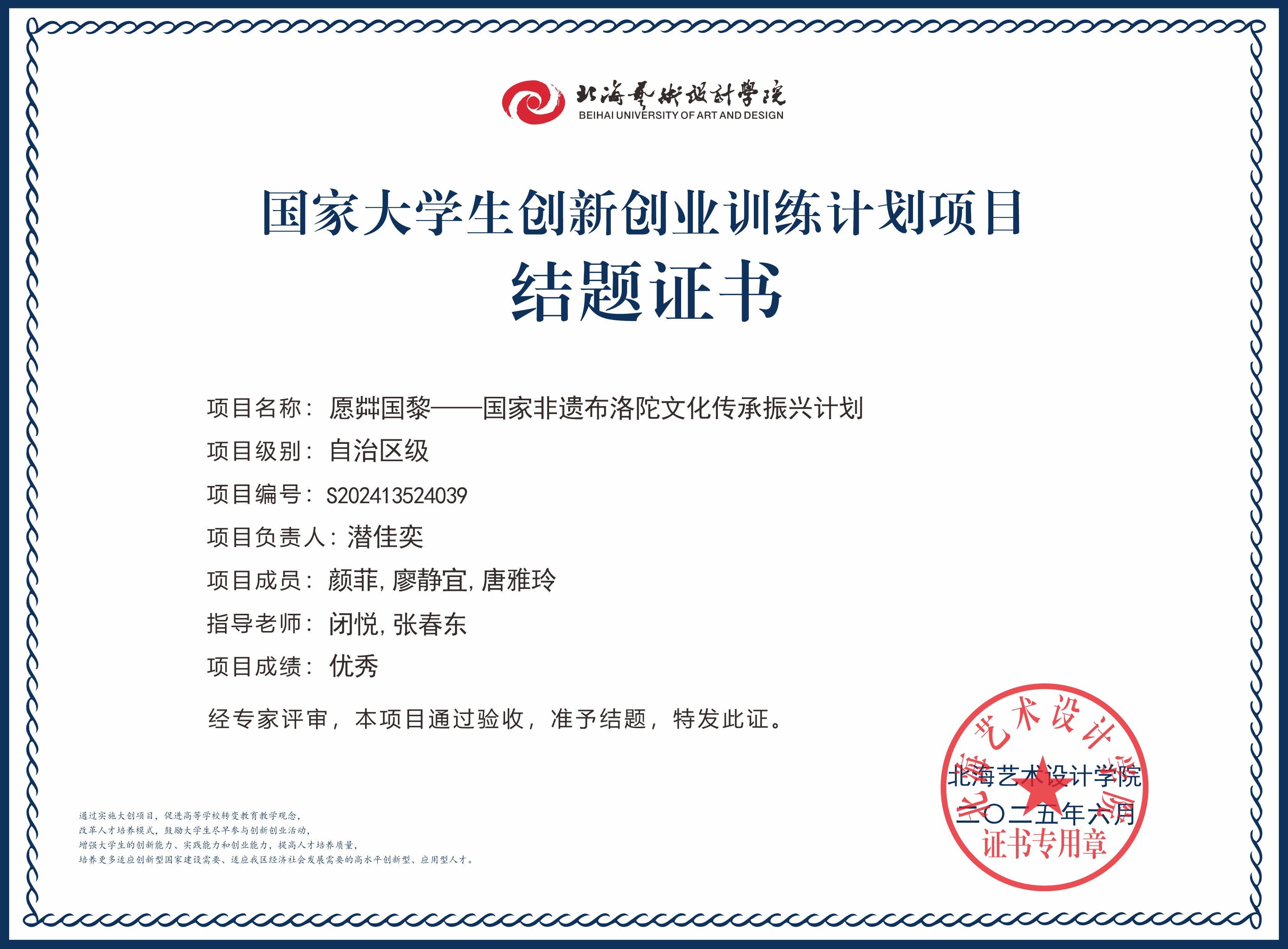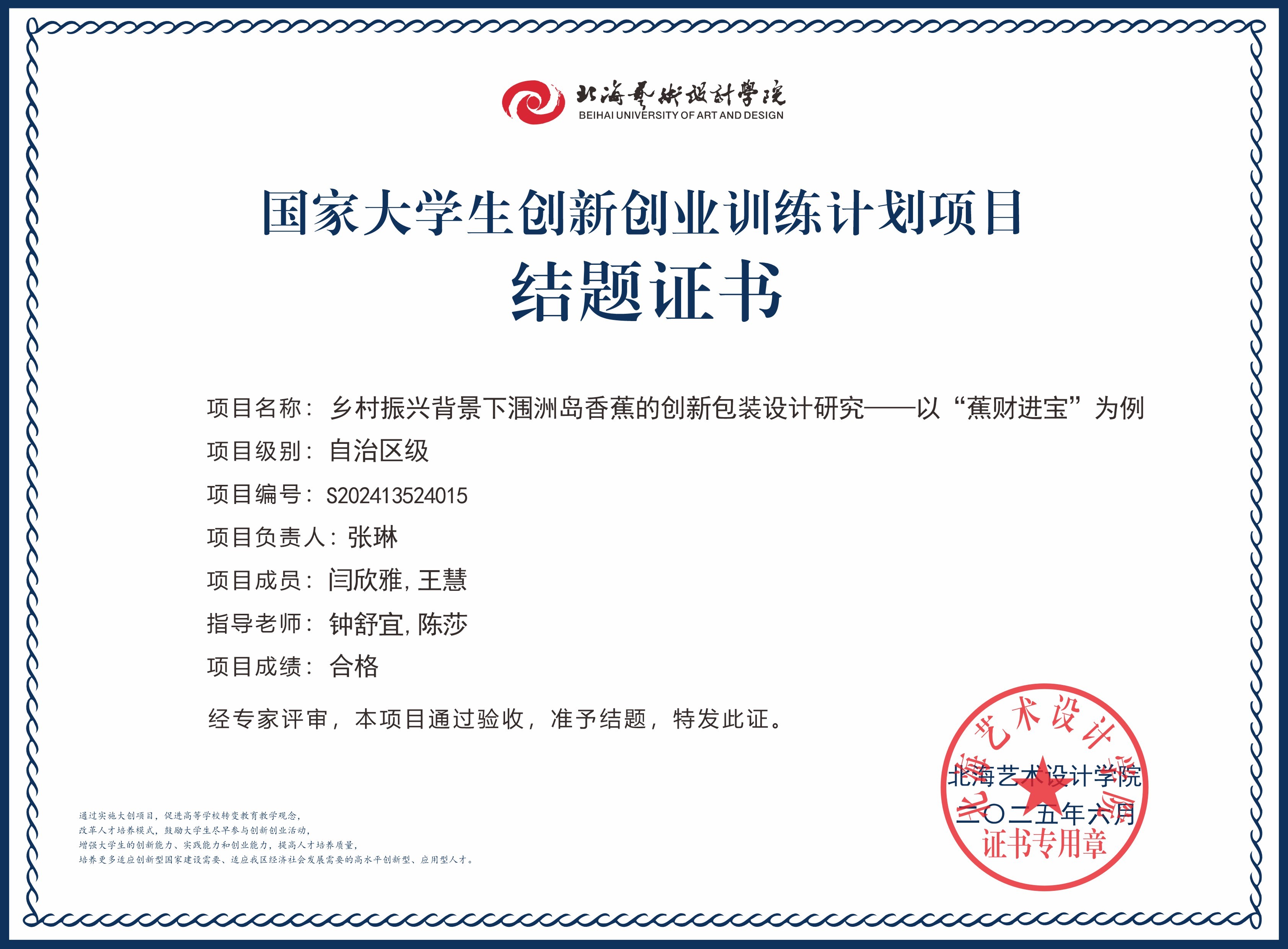 2025年大创项目结题证书(国家级区级)
