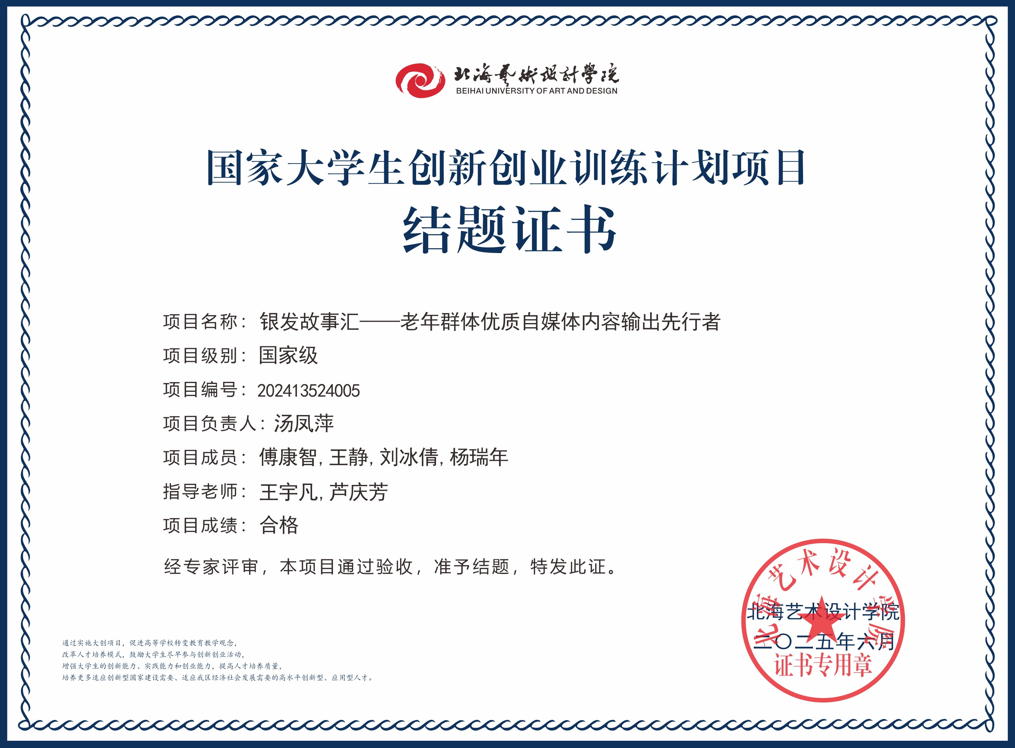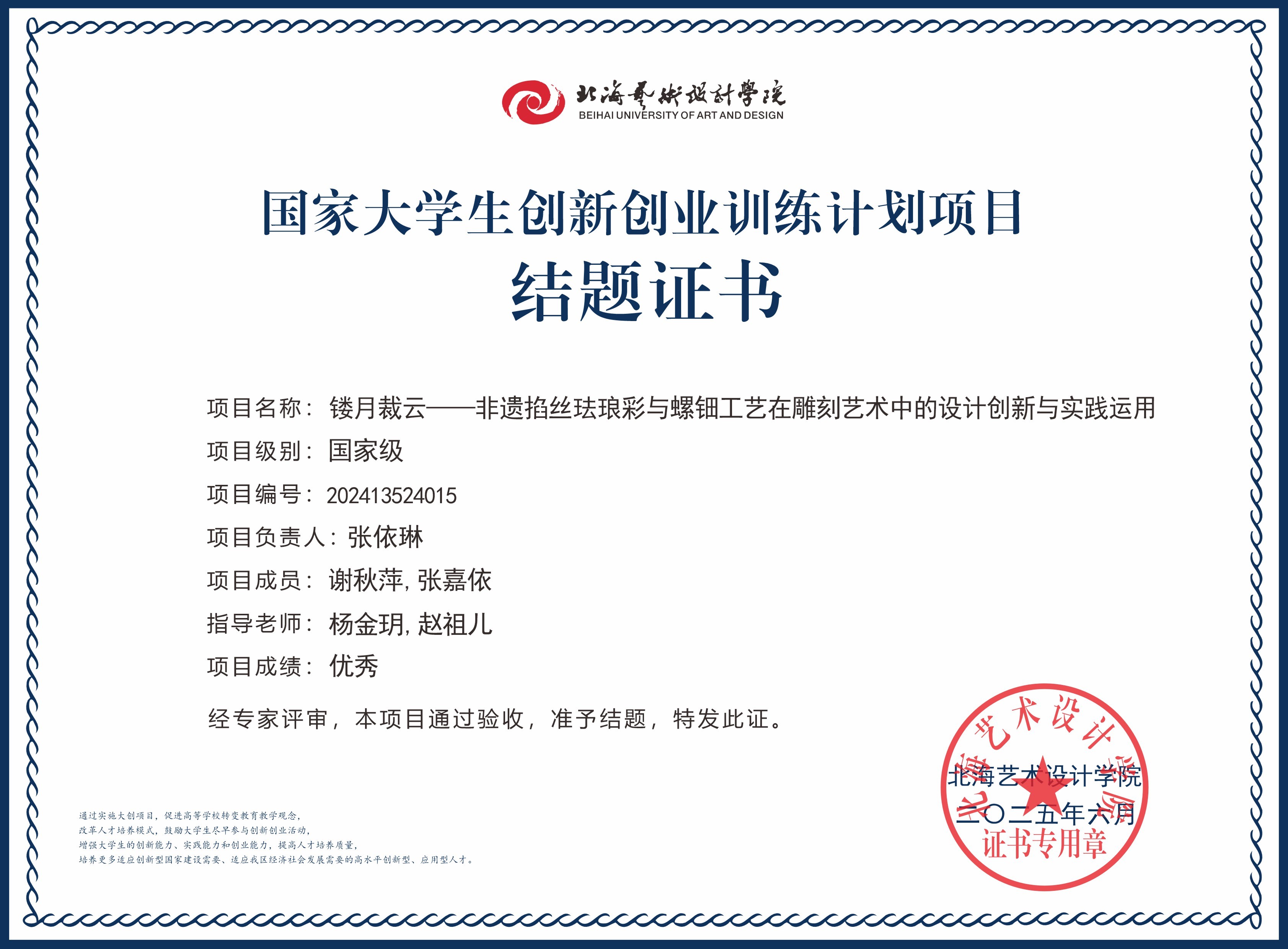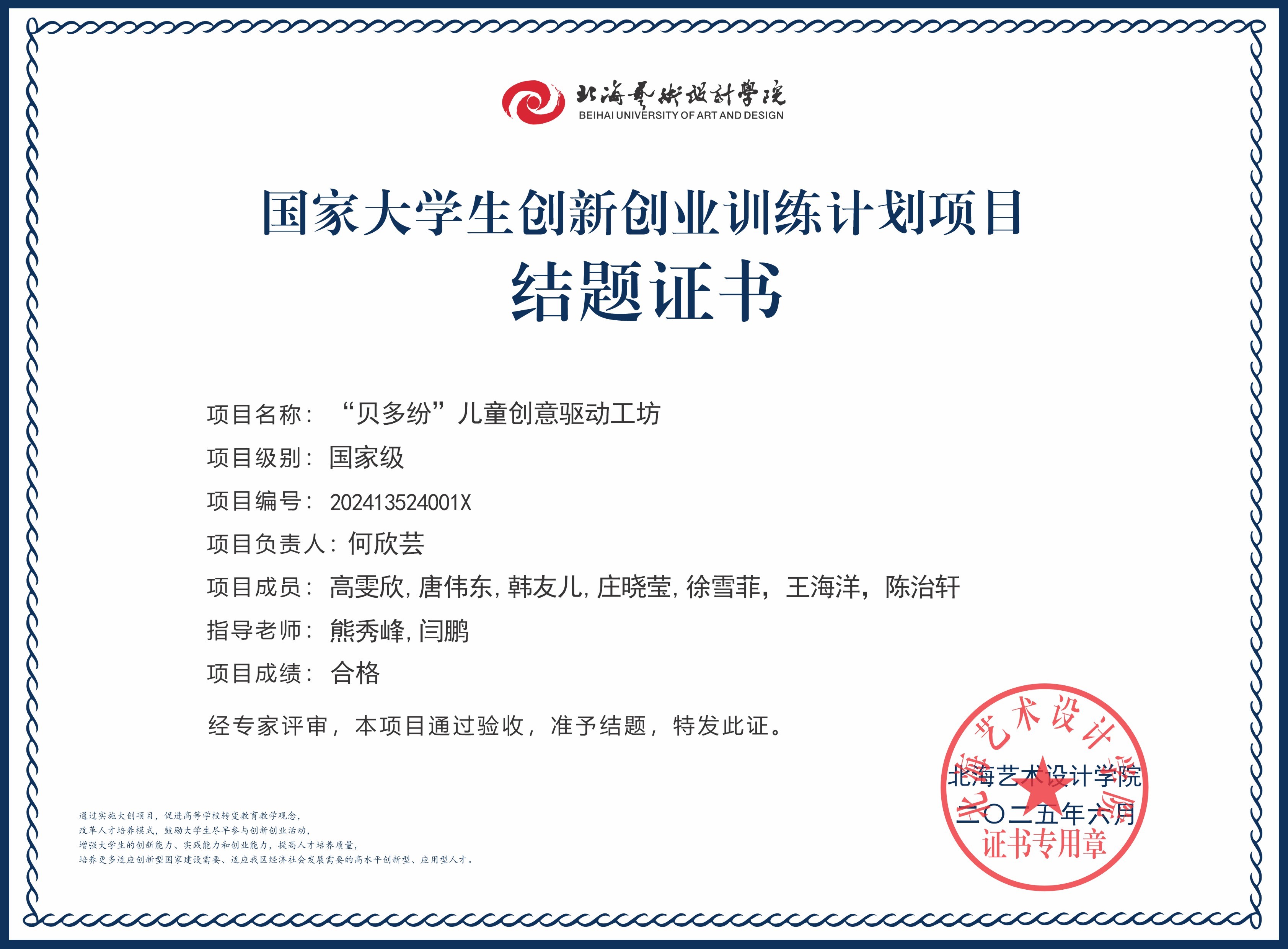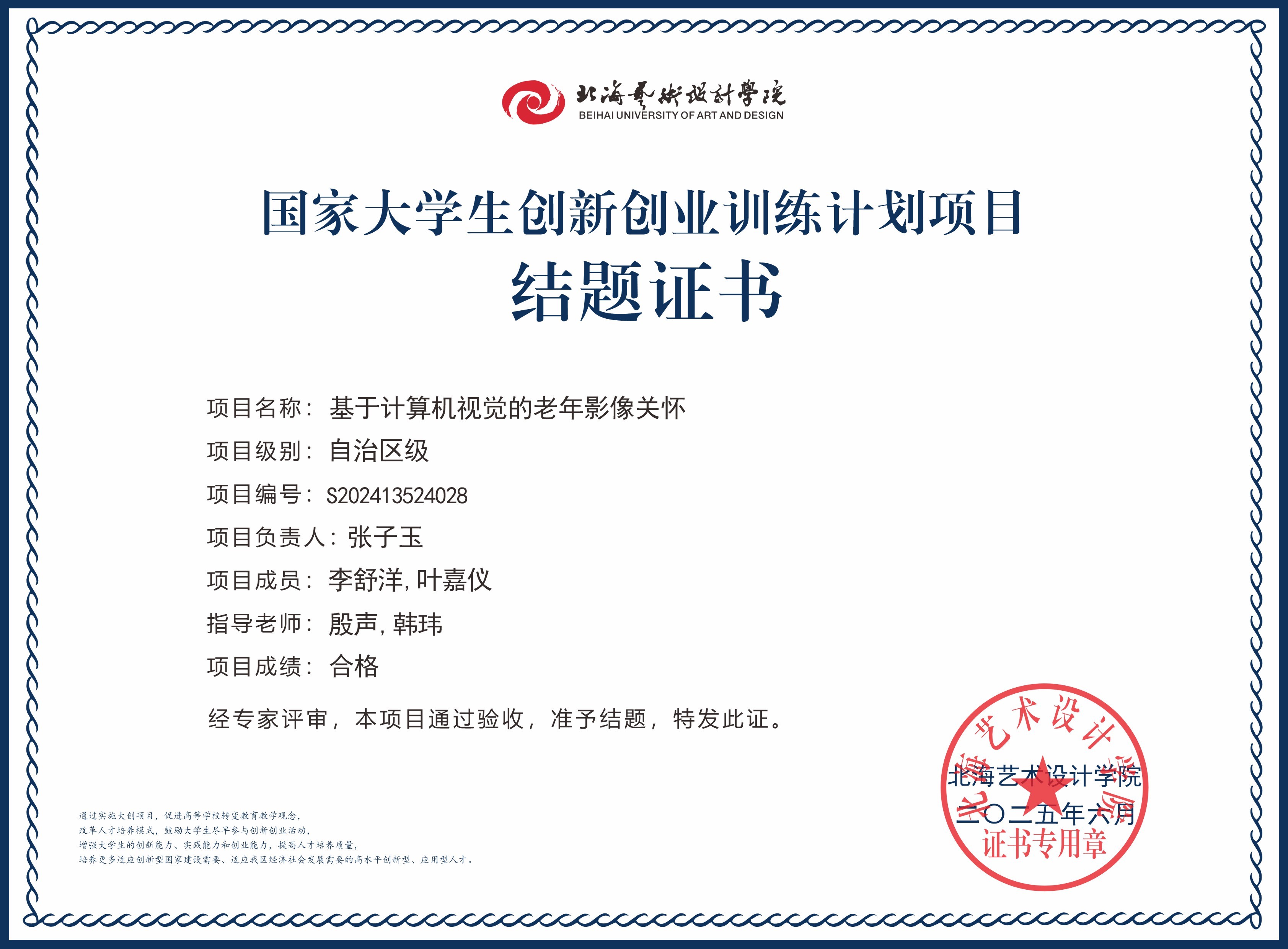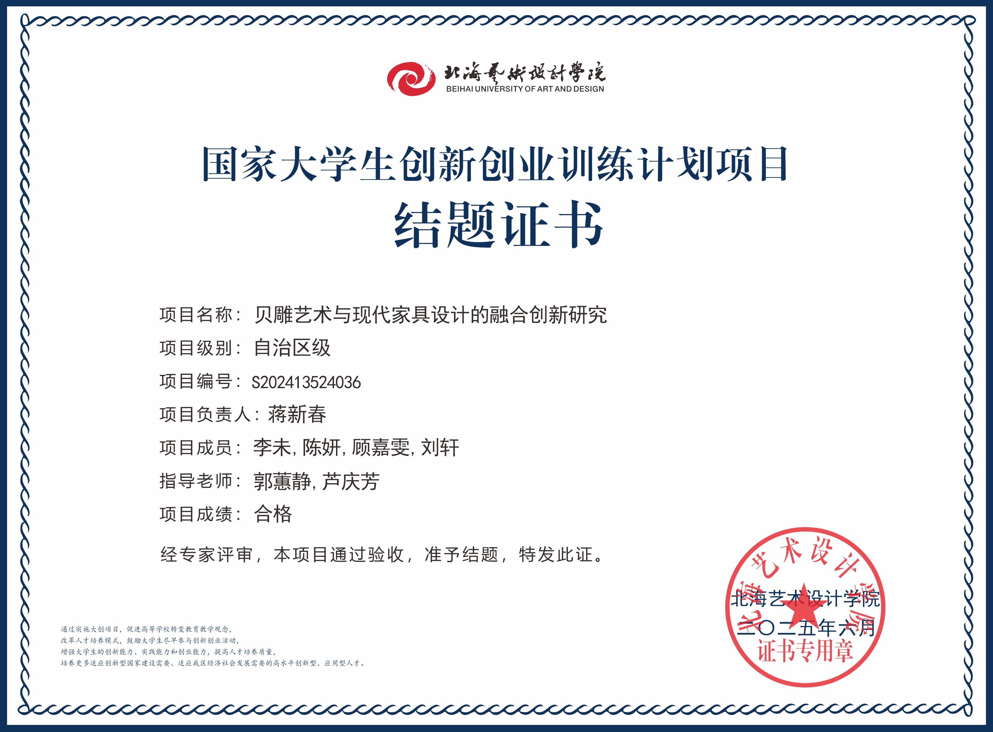 2025年大创项目结题证书(国家级区级)