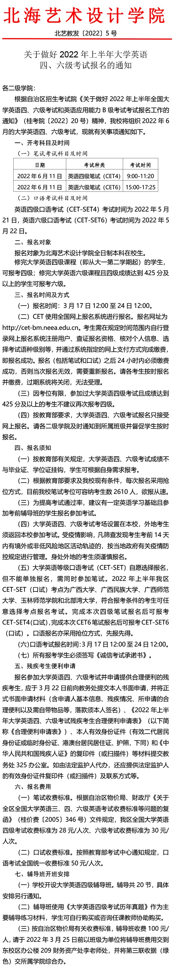 关于做好2022年上半年大学英语四、六级考试报名的通知