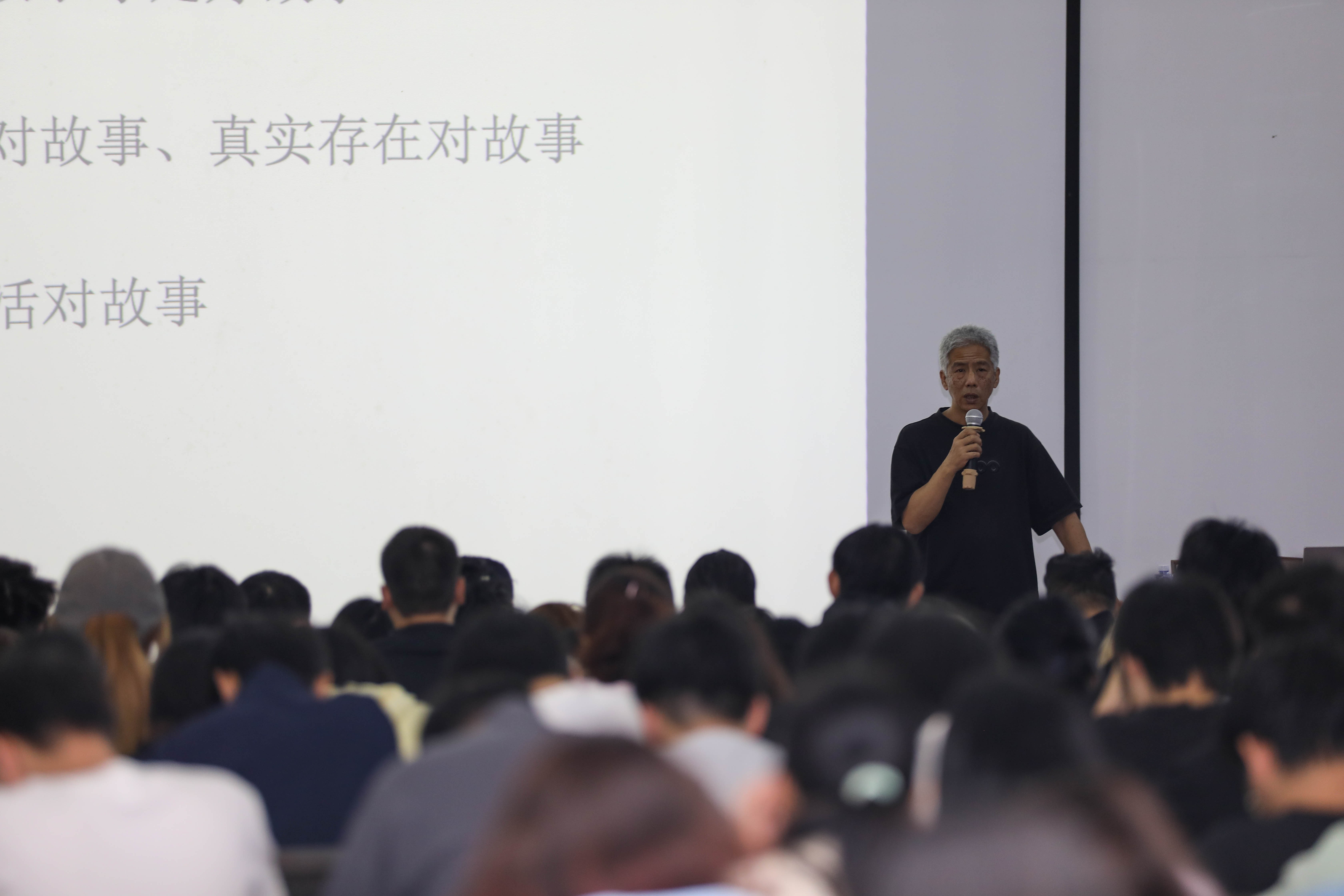 在此次讲座中,黄惠忠教授结合自身丰富的经验围绕创意构思、风格定位两个方面展开授课。黄惠忠教授先以创意为切入点,详细说明了文化积累、技术实践、开拓性思维三个方面是决定创作的重要因素,并强调了运用适合题材的风格进行创作的重要性。他指出,个人基础、技术实践及手绘能力在短片制作过程中尤为重要。并通过“故事的选择与创作”“怎么讲故事”“现实题材的选择”“传统及科幻等题材”“打动人心的故事——真实存在”五个方面详细展开讲解,说明了制作动画短片前期需要做的准备工作与注意事项。黄惠忠教授还结合自己学生创作的短片《低头人生》,着重点明了来自于生活且能够与人产生共鸣的题材是成就好的故事的关键。