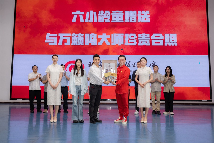 仪式上,六小龄童向学校赠送了一幅珍贵的历史照片——他与动画大师、《大闹天宫》创作者万籁鸣的合影,勉励师生们弘扬中华传统艺术,共同传承两位大师的艺术精髓。六小龄童还为我校颁发了“美猴王书屋”共建证书,以表彰学校对该文化公益项目的支持。“美猴王书屋”是由六小龄童发起,旨在推广经典阅读与传统文化的重要项目,目前第19家美猴王书屋已正式落地北海市图书馆。