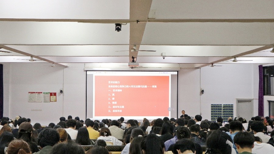 讲座尾声,张树新教授对艺术精神的本质进行总结并与师生进行亲切互动。他指出,优秀艺术家应具备真挚的品格、善良的底色与深厚的情怀,而艺术创作的根基,正是建立在“真”的表达、“善”的追求与“情感”的传递之上,这三者共同构成了艺术的精神本质。他呼吁学生在今后的创作实践中,始终思考如何精准表达人性情感、深刻触动他人灵魂,以更高的艺术追求创作出兼具思想性与感染力的作品。