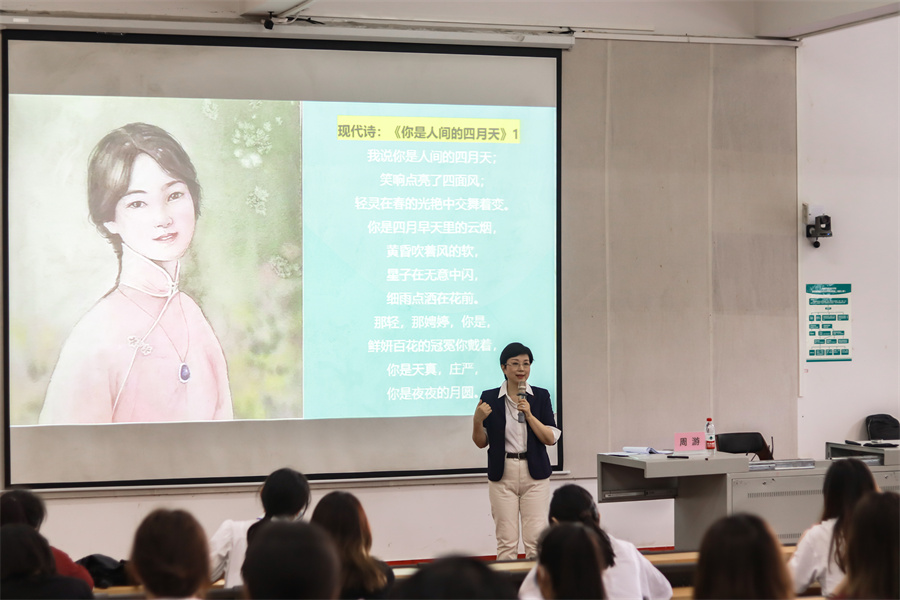 随后,周游教授以自己的朗诵作品《你是人间四月天》为例,她强调,由于年龄段的不同,大家所感受到的各种情感也尽不相同,但是朗诵作品所蕴藏的情却会印在每个人的心中。