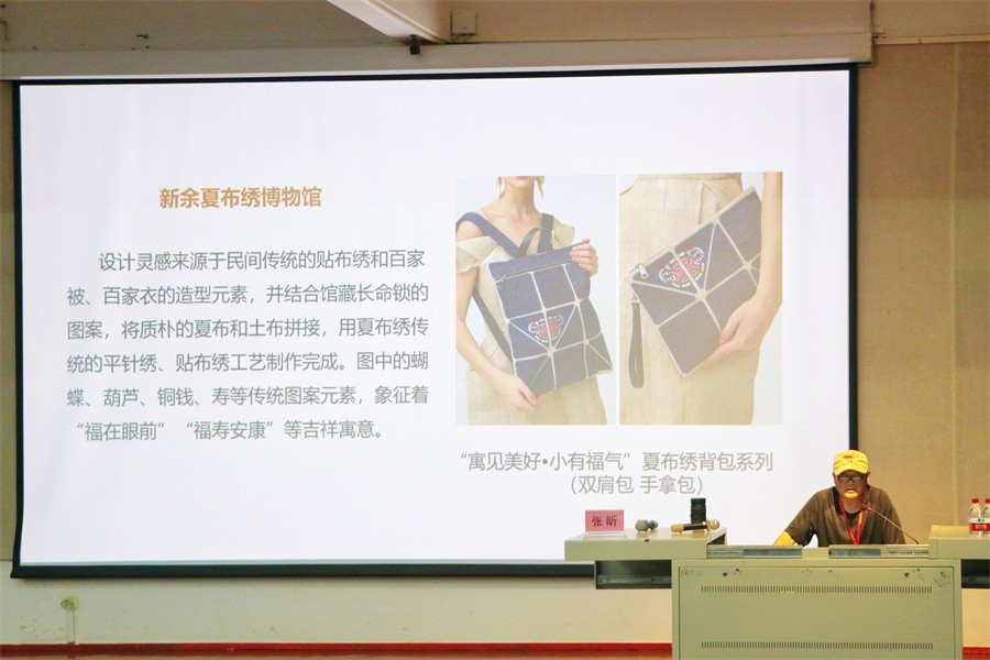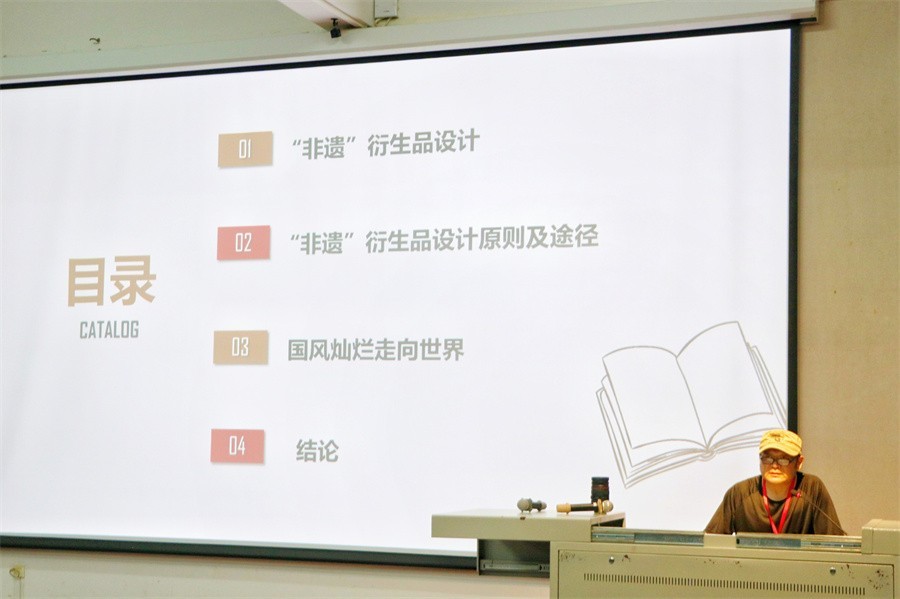 此次讲座中,张昕教授以非遗衍生品设计、非遗衍生品设计原理以及途径、国风灿烂走向世界三个版块向在场师生进行具体讲授。