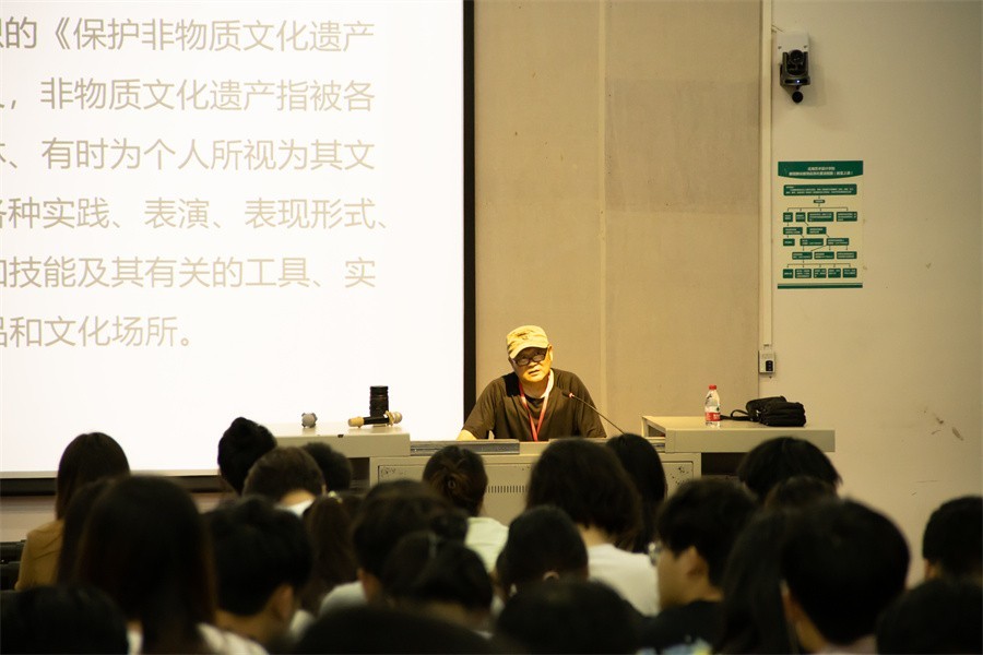 张昕教授通过展示中国区域历史文化分布图,以及中国非物质文化遗产的十大类别,说明中国是世界文化遗产最丰富的国家,这些丰富的传统文化资源,为现代设计提供了取之不尽用之不竭的设计资源。他还展现了广西的传统美术和传统技艺“非遗”名录,让广大师生进一步了解并学习各地富有特色的民族服饰文化,感受传统非遗文化深深地印上了民族的烙印。